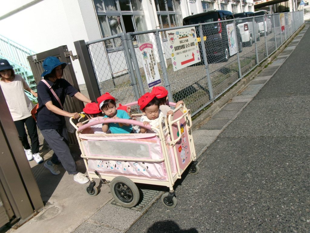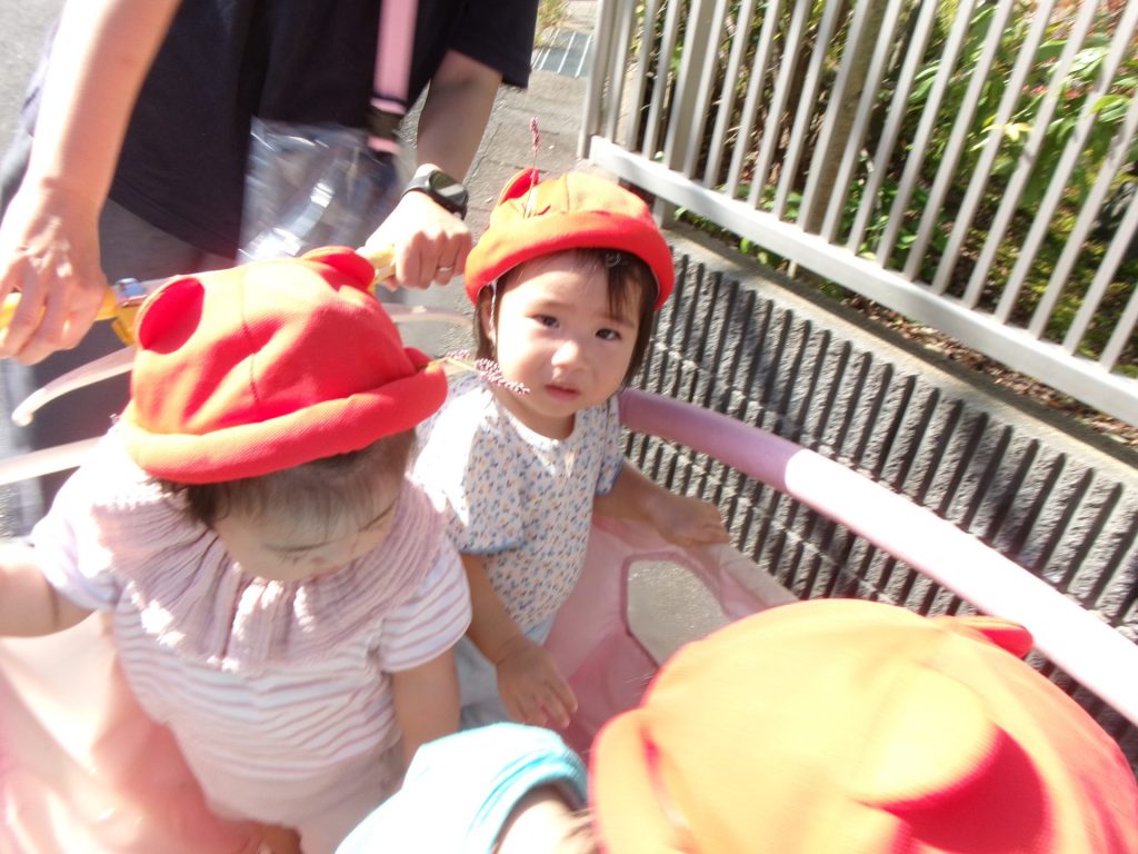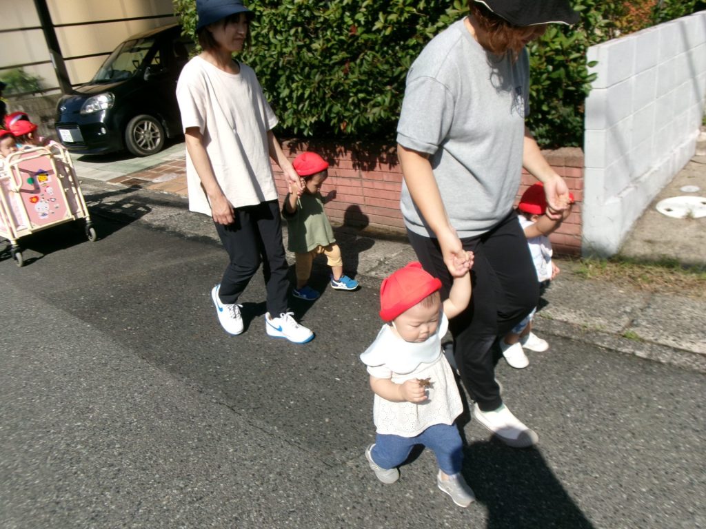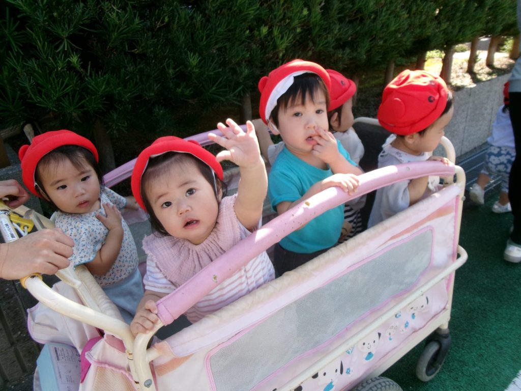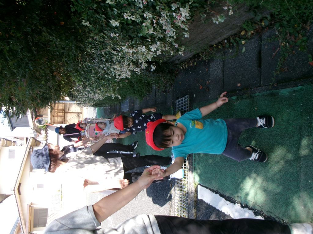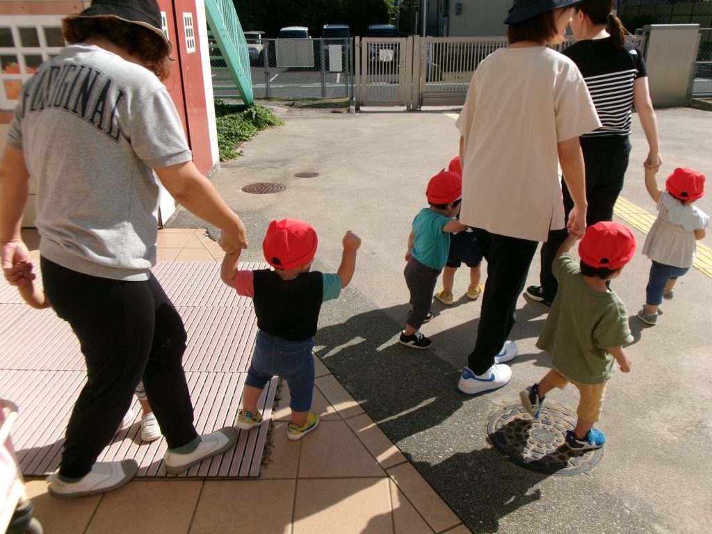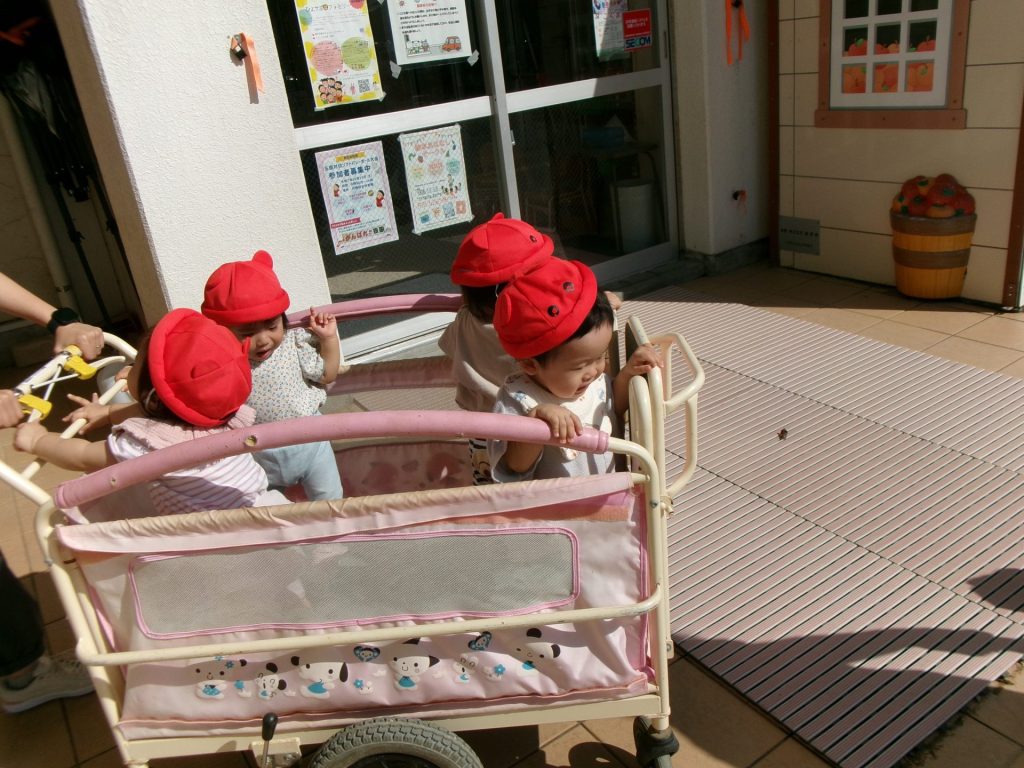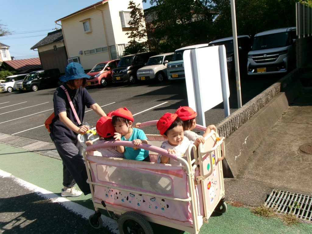 涼しい室内のびのびと好きな遊びを見つけて遊んだり、お外に出た時は涼しい日陰でお散歩をして遊んでいます。
