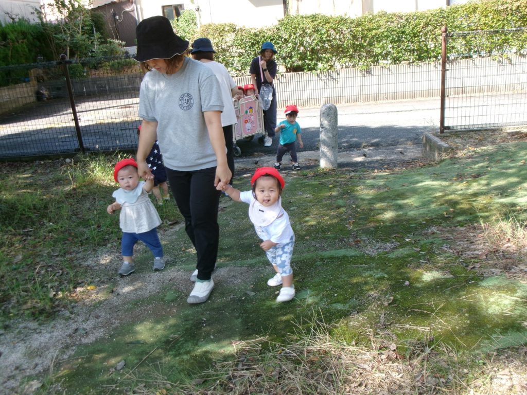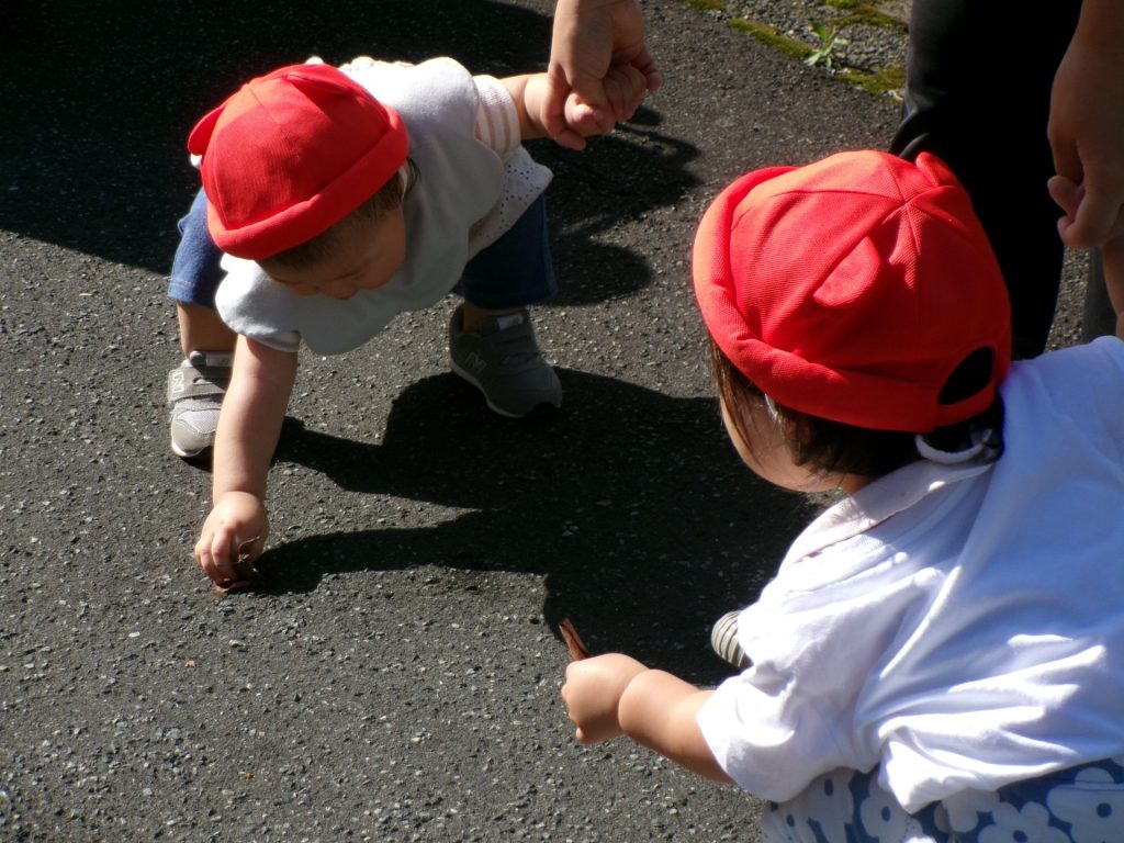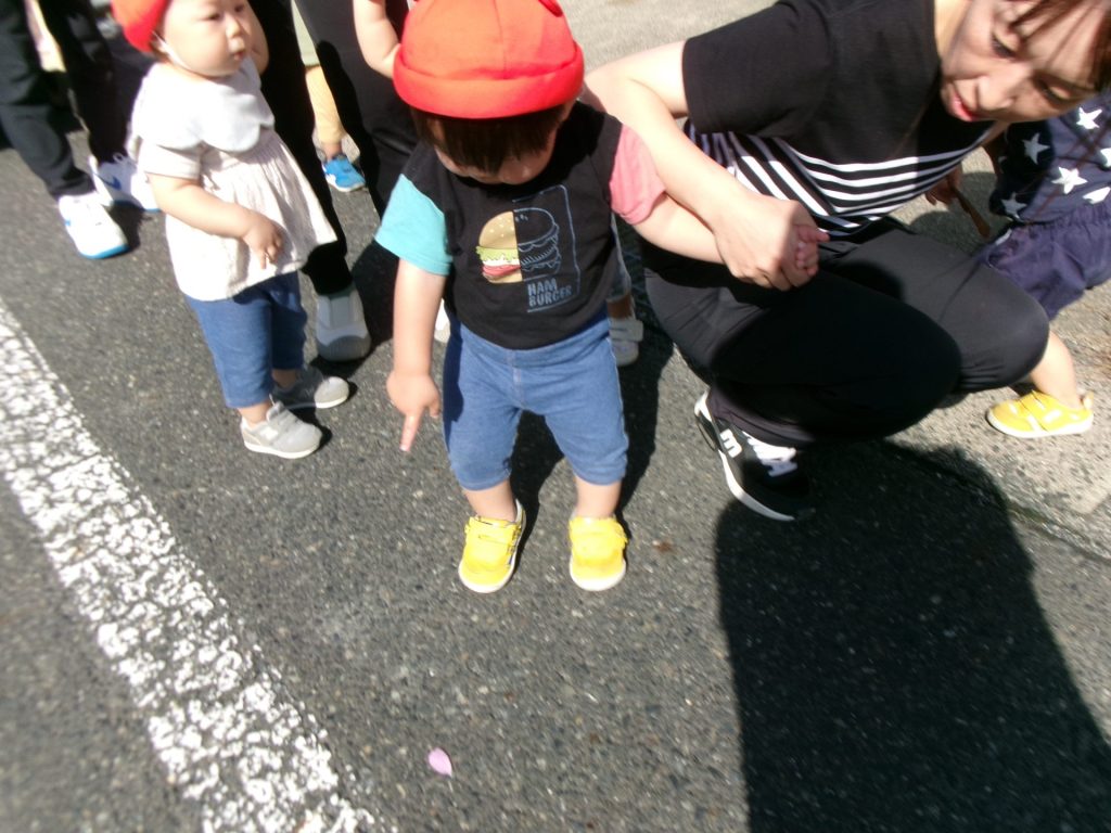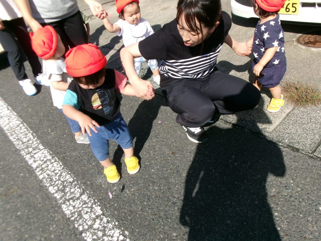 みんなが歩く足元に葉っぱや花がありました。お散歩楽しいね~。