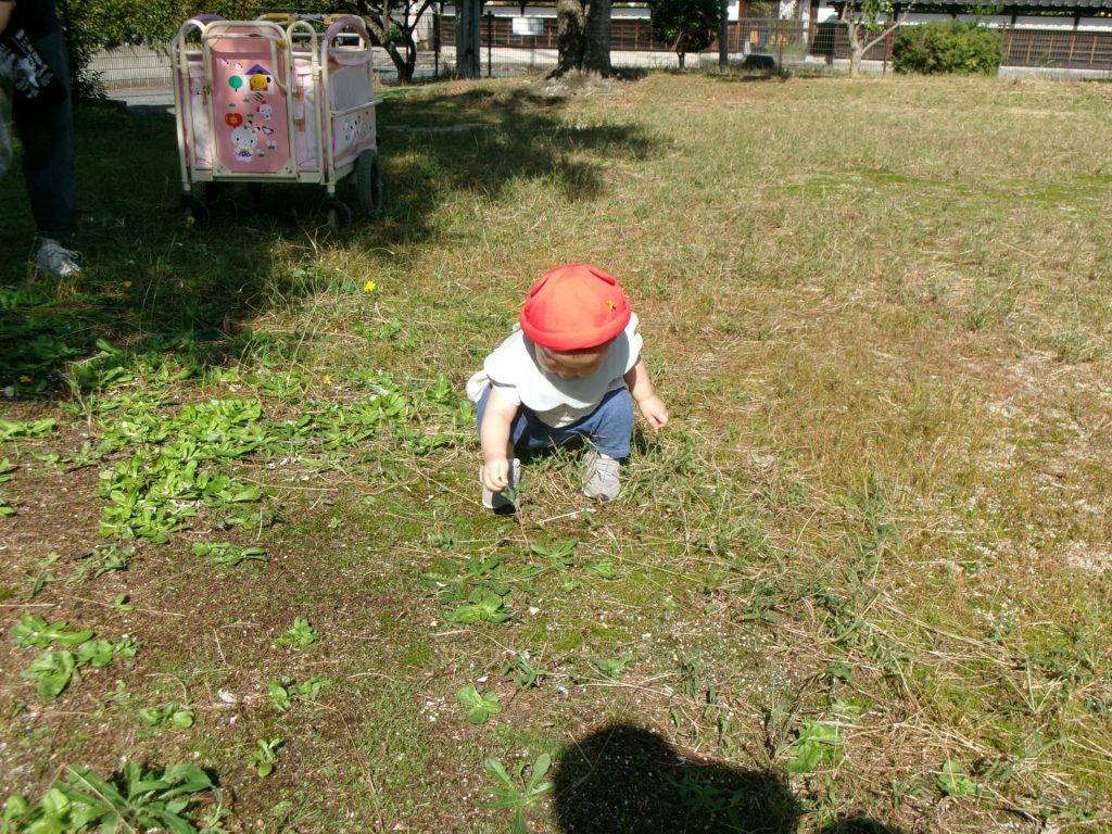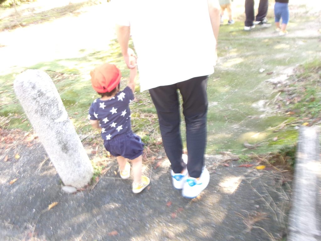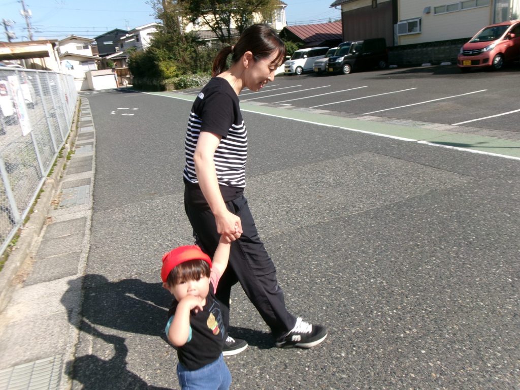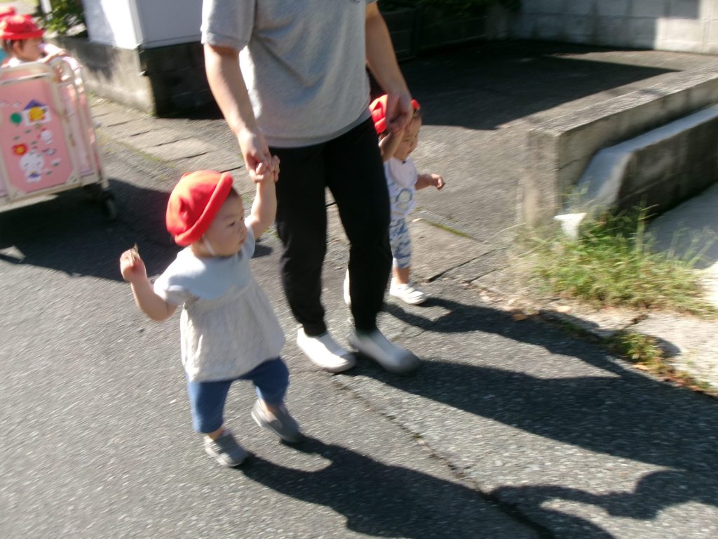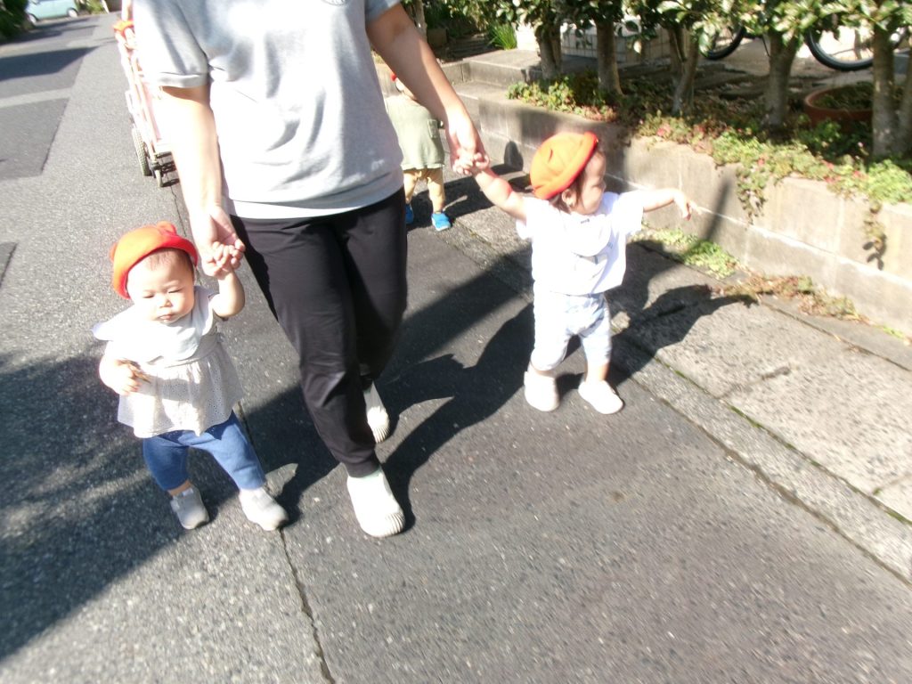 みんなが歩く足元に葉っぱや花がありました。お散歩楽しいね~。