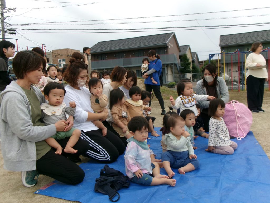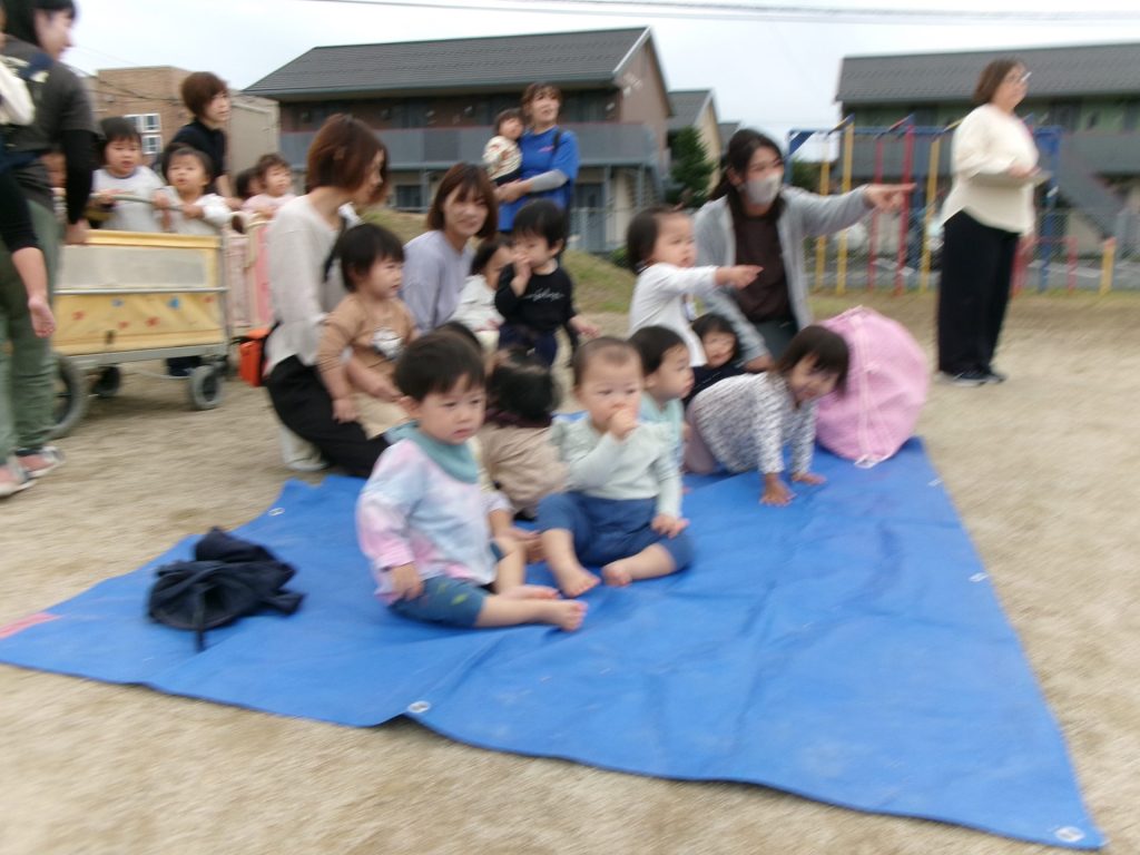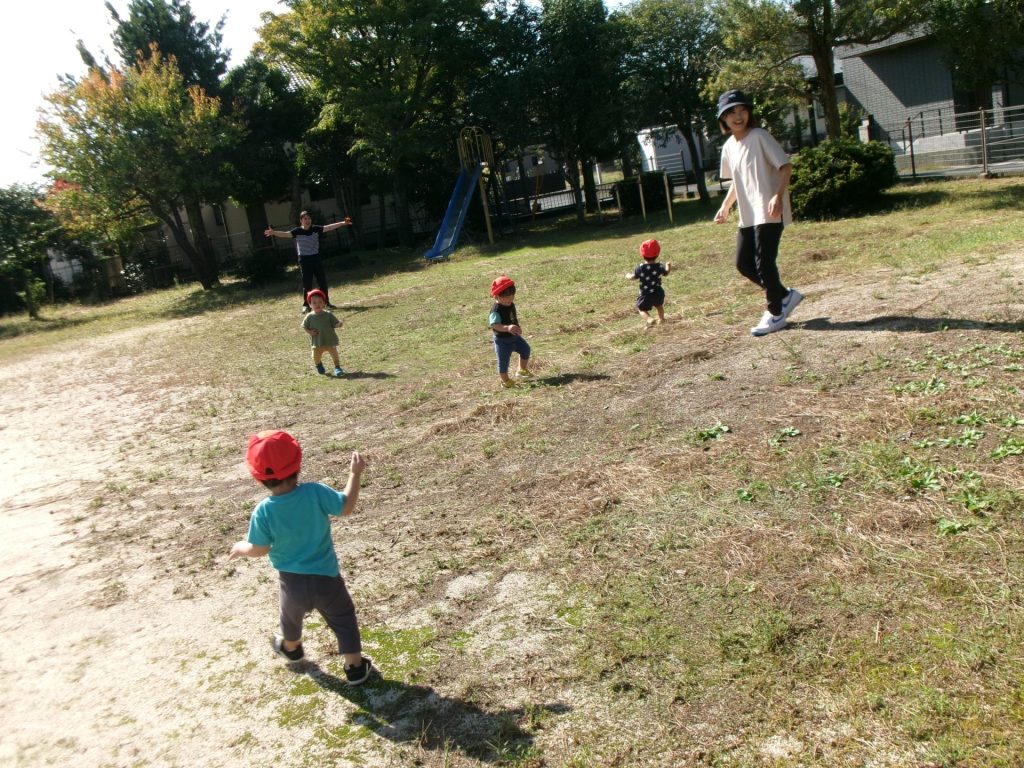 落ち葉や木の実を見つけたり、走ったり、秋風に吹かれてとっても楽しかったね!いっぱい遊んでお腹もすいたので・・・