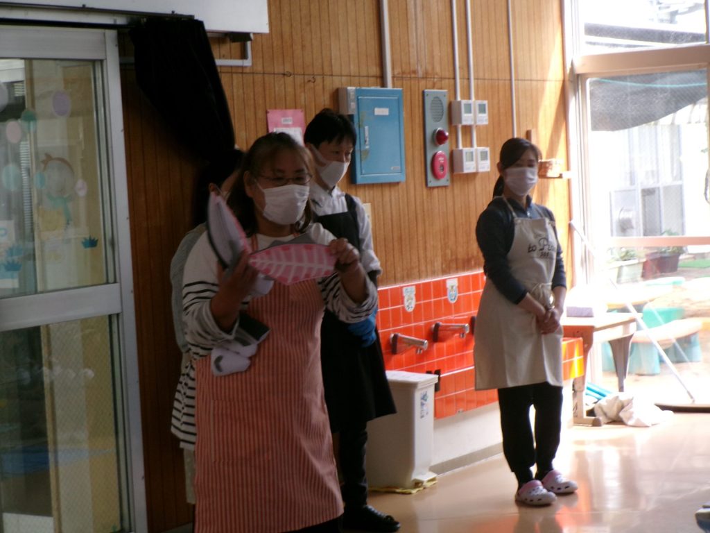 最後は先生からのお楽しみコーナー★「おべんとうバス」のエプロンシアターを見ましたよ!