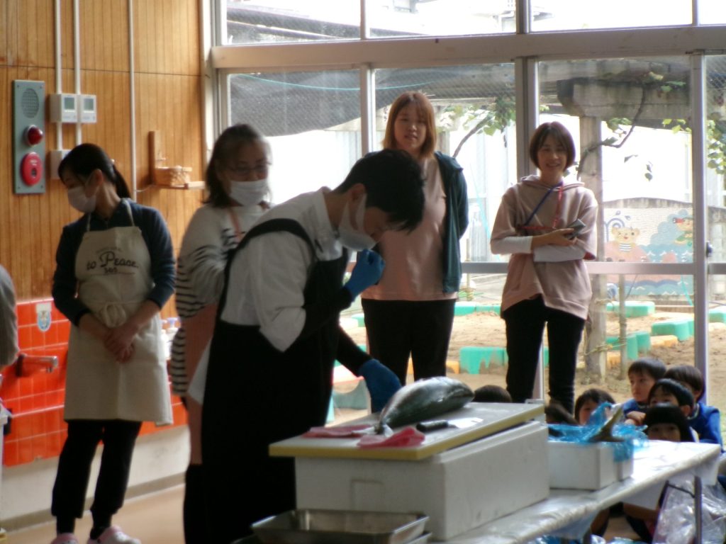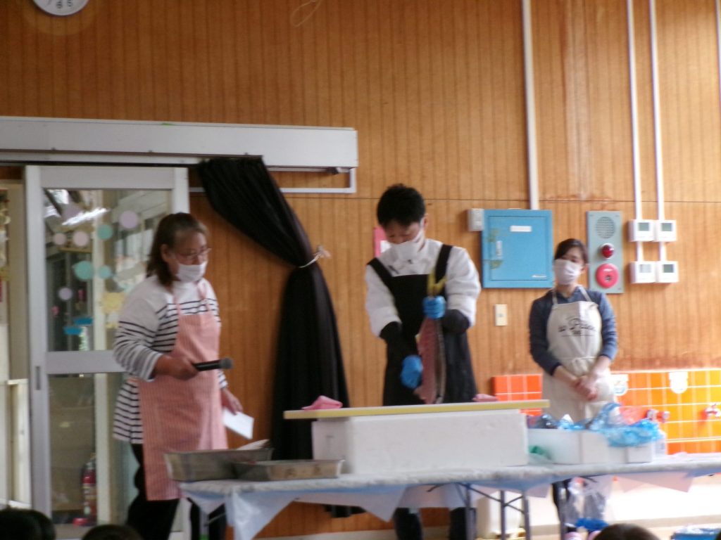 子ども達も先生達も、魚をさばく様子にくぎづけでした。