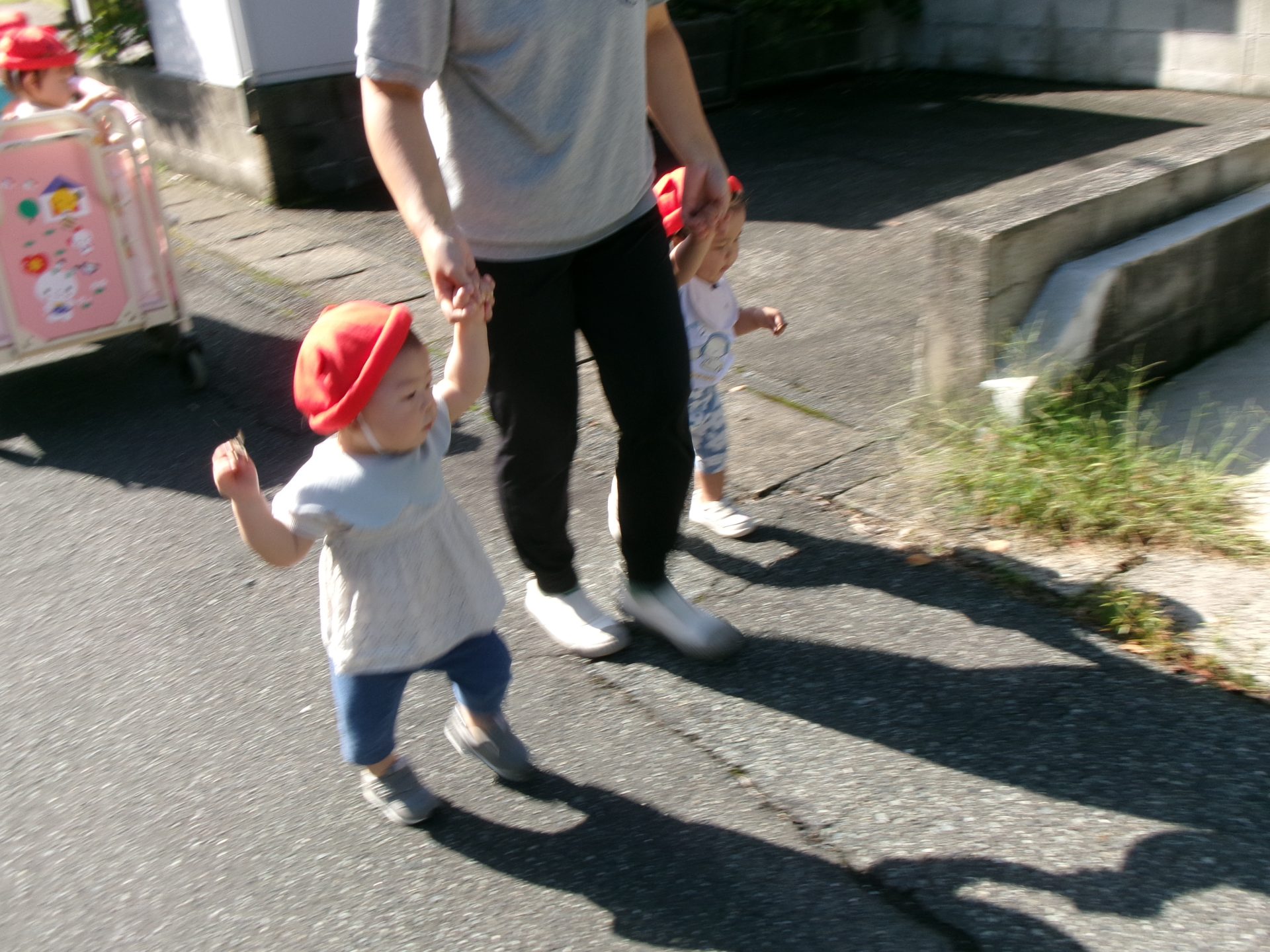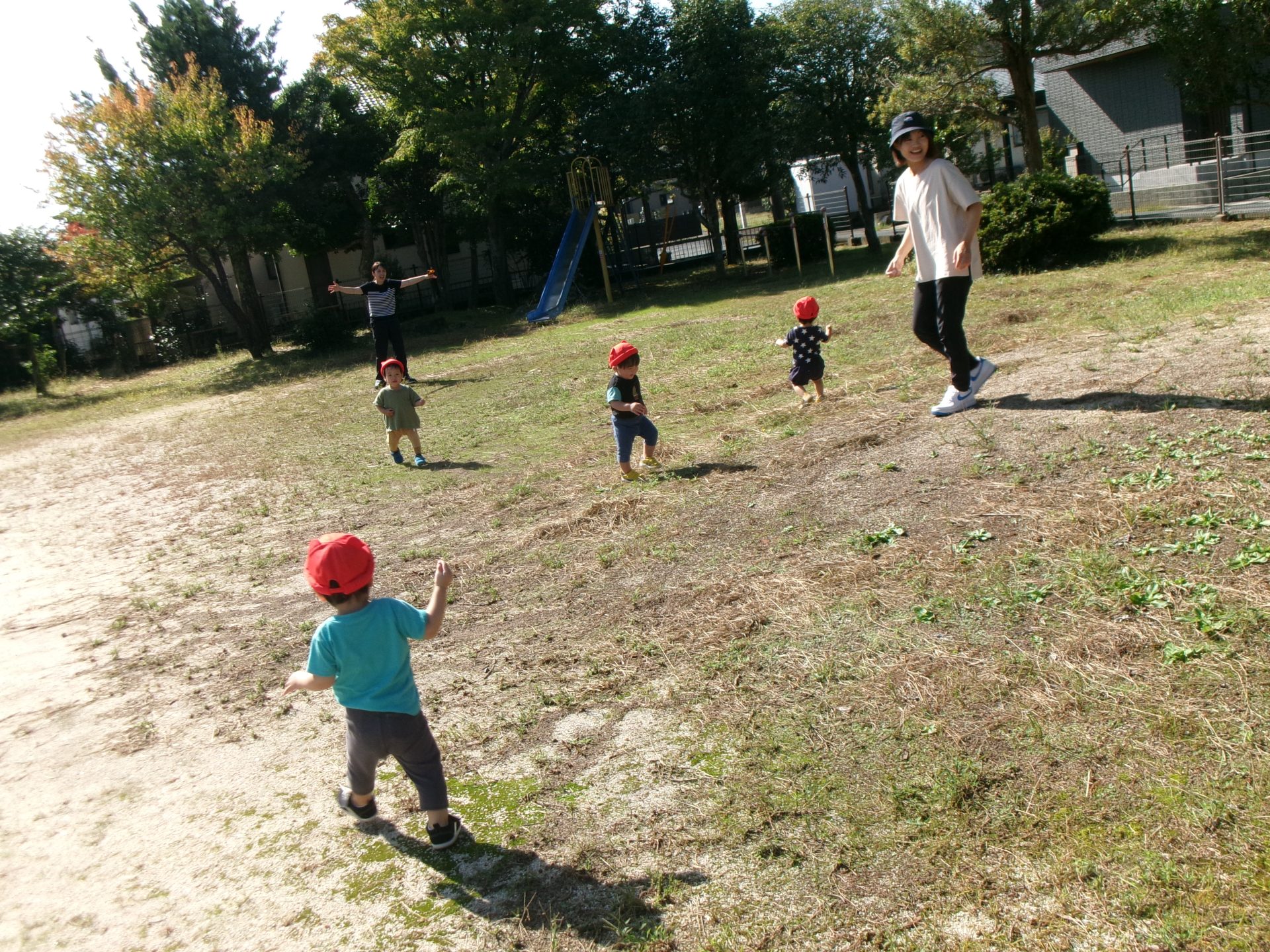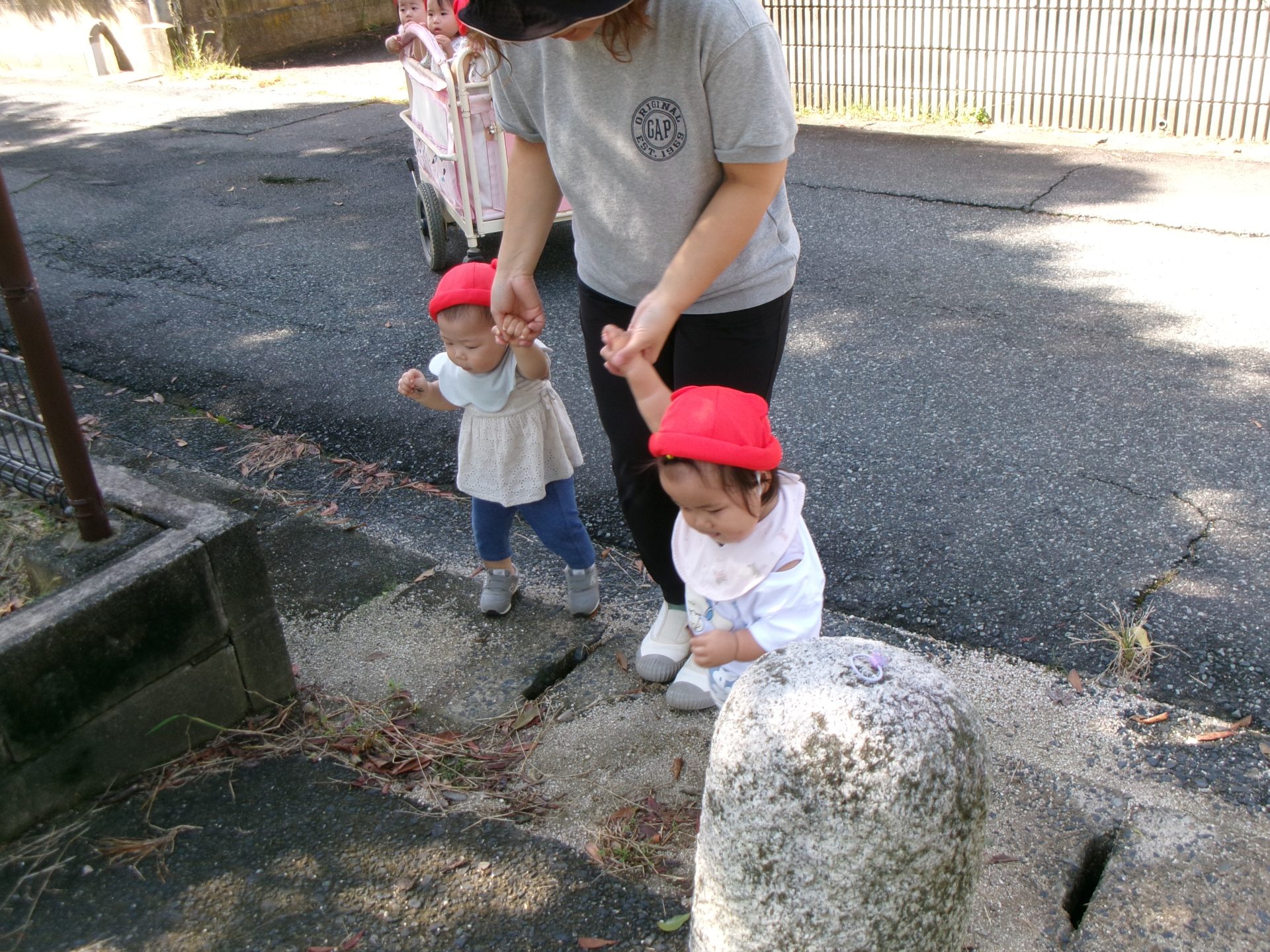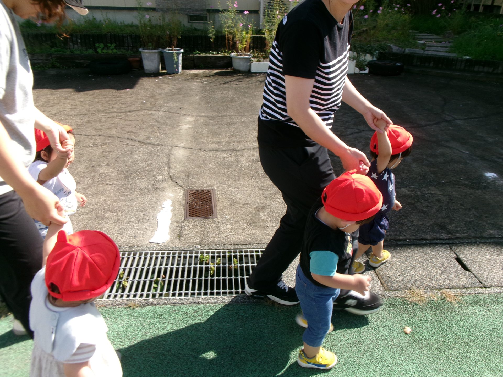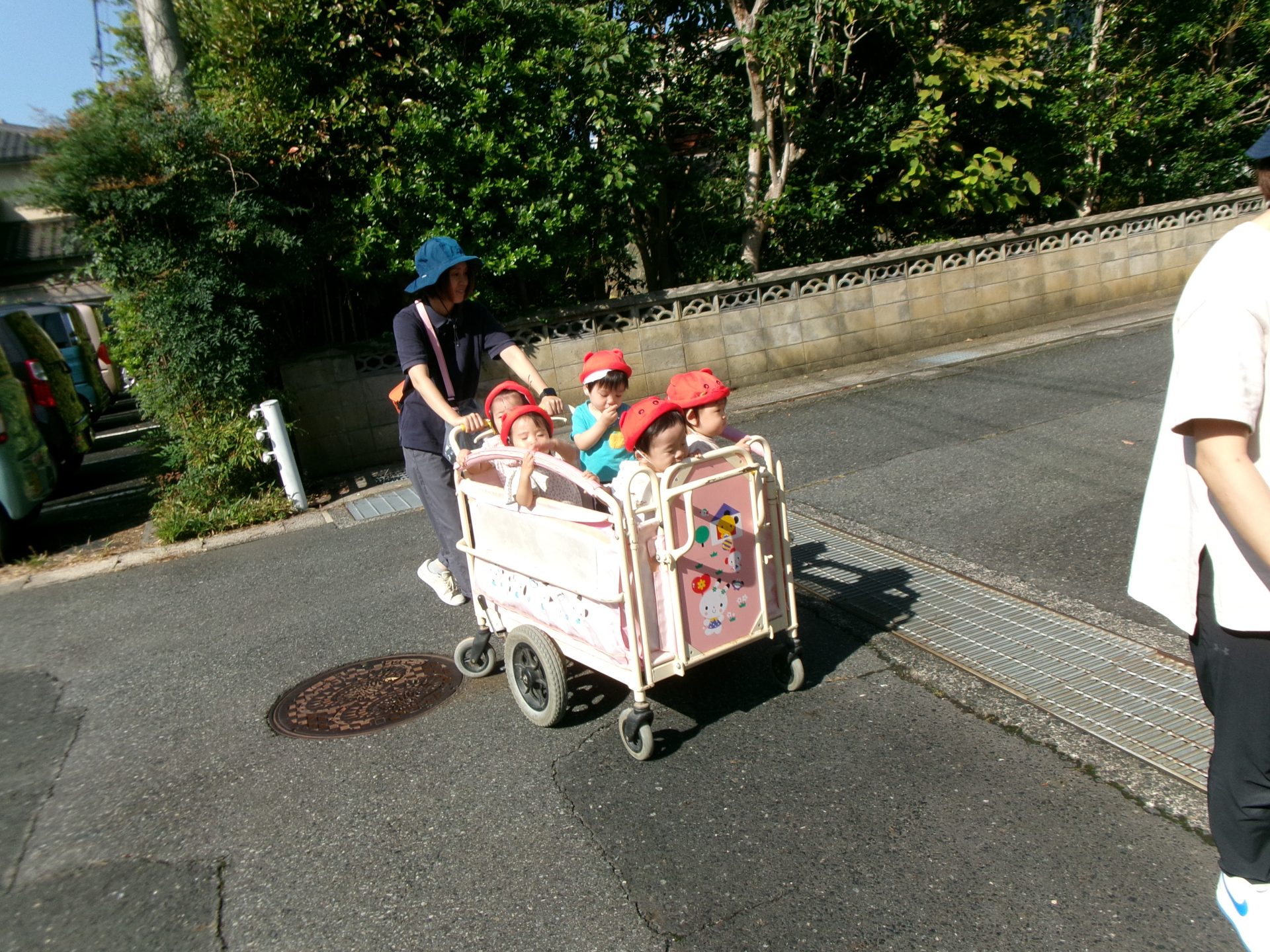 涼しい室内のびのびと好きな遊びを見つけて遊んだり、お外に出た時は涼しい日陰でお散歩をして遊んでいます。