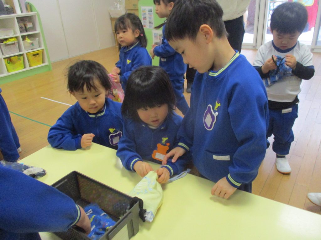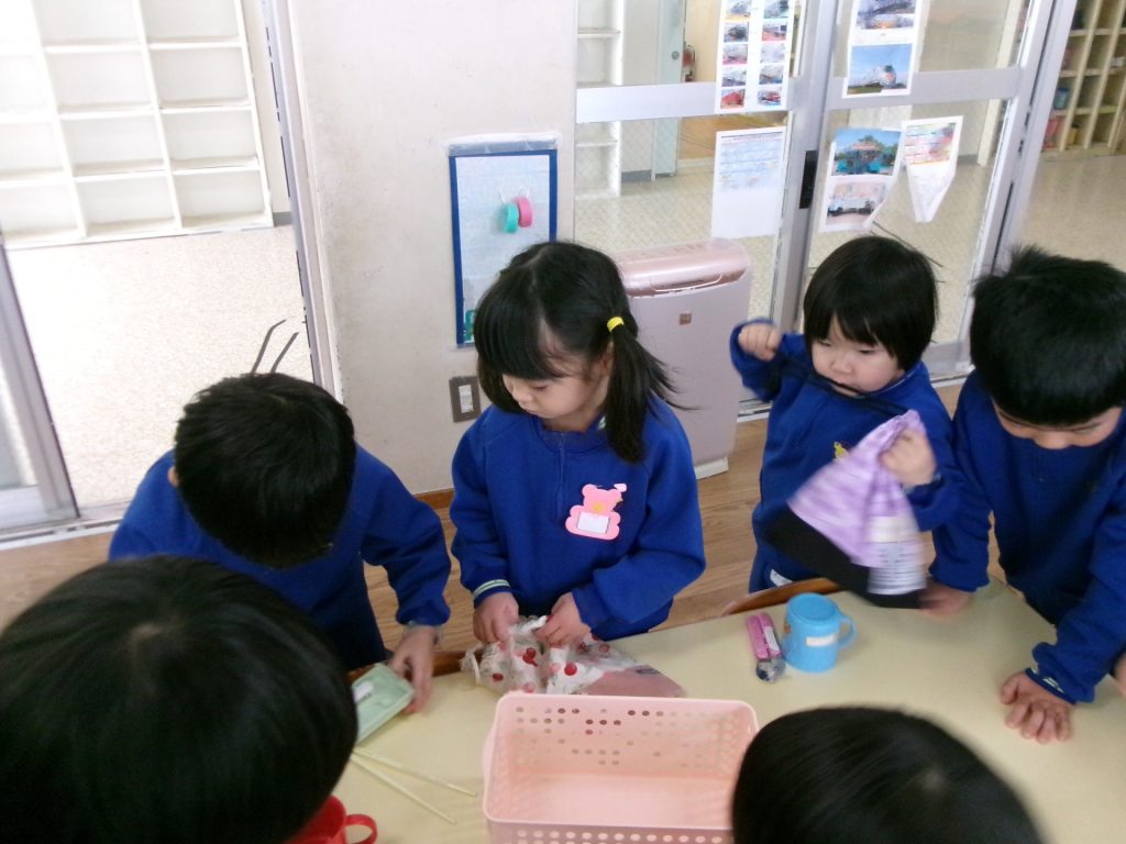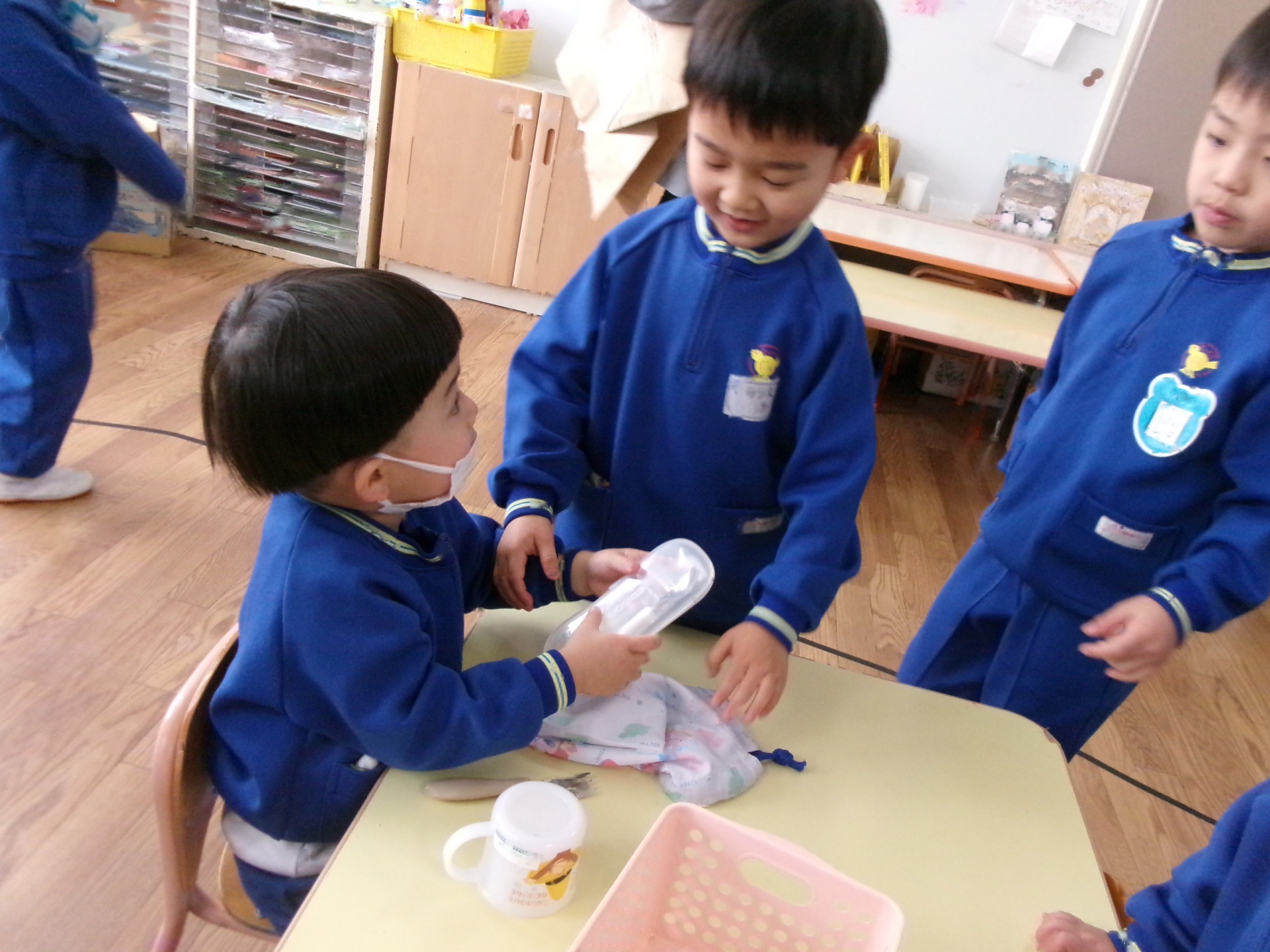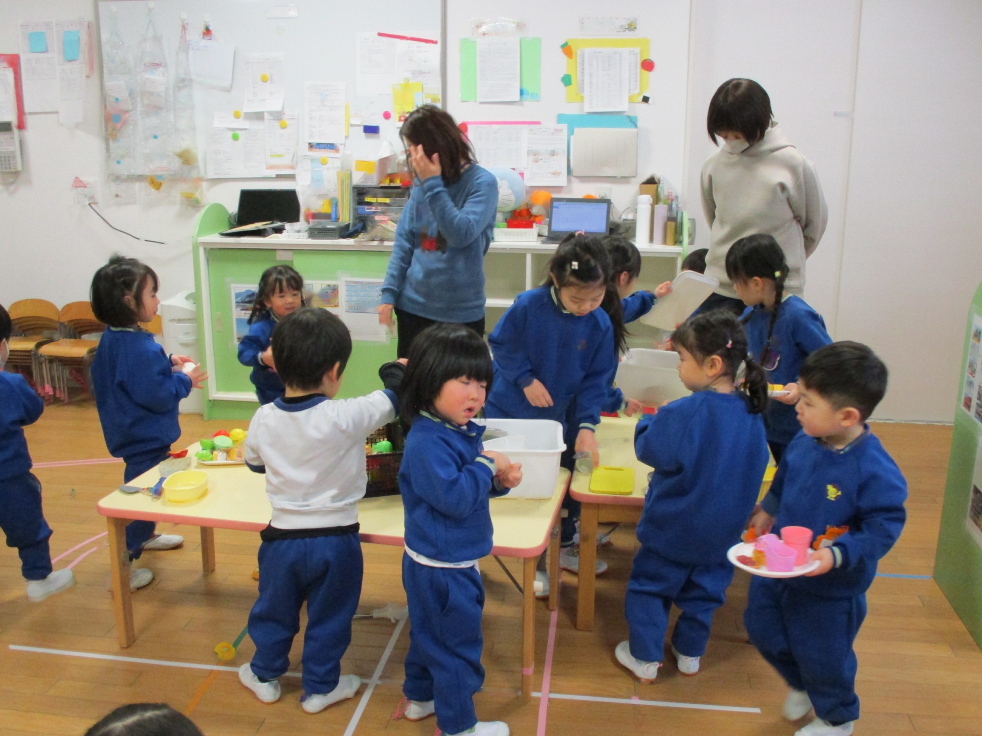 遊んだ後は、2歳さんの給食の準備も一緒にしました♪