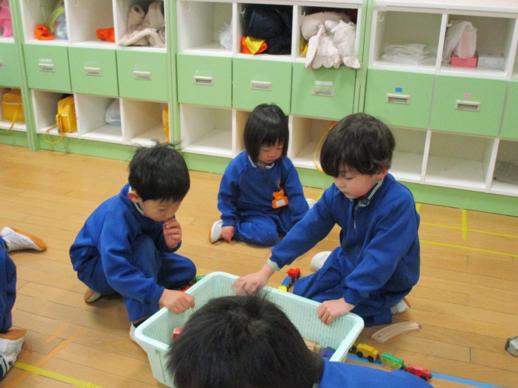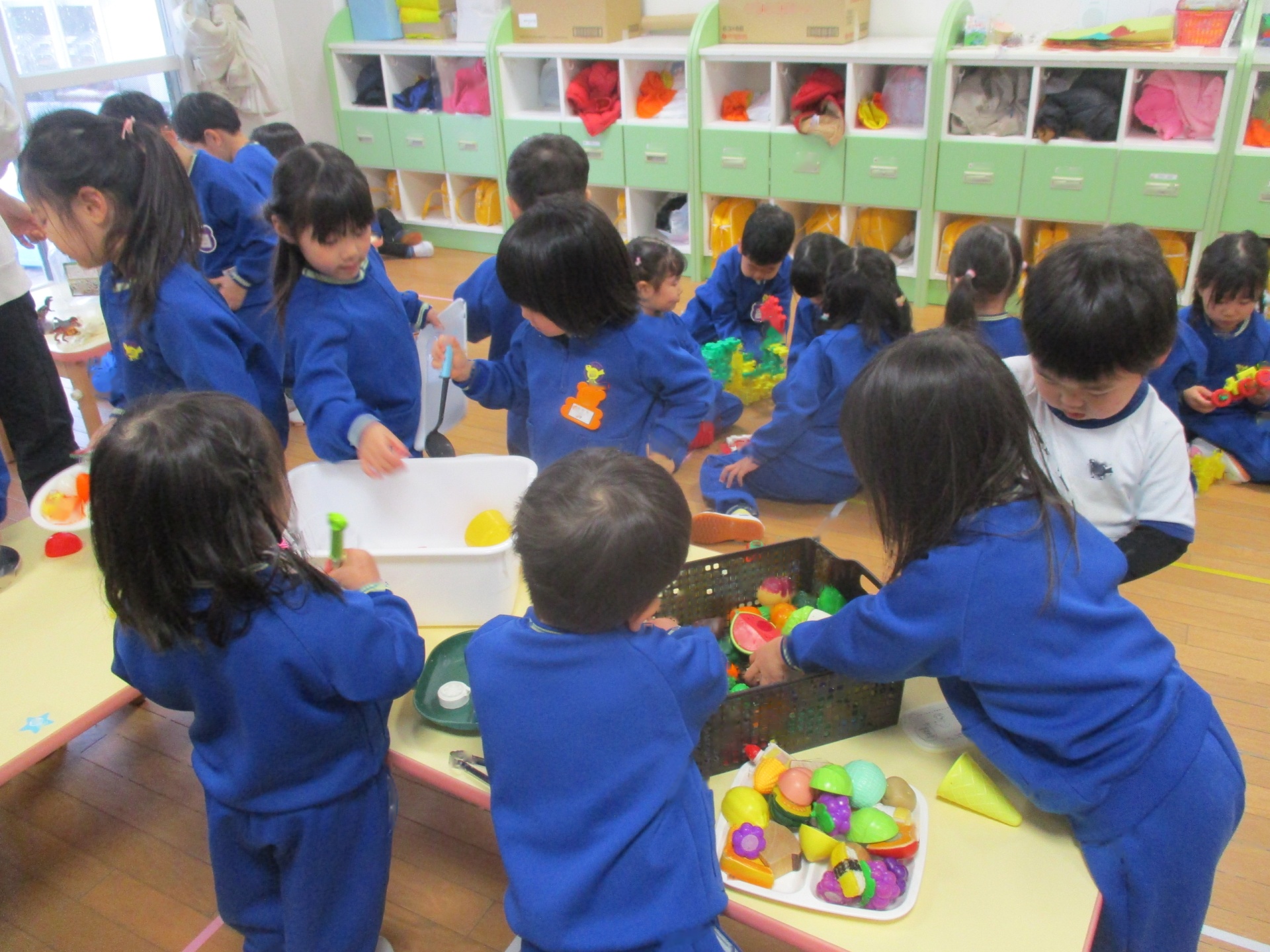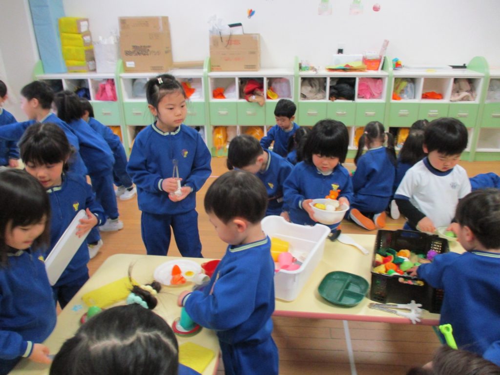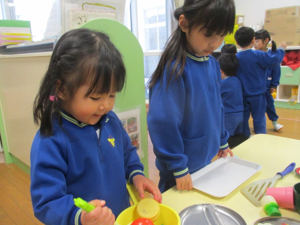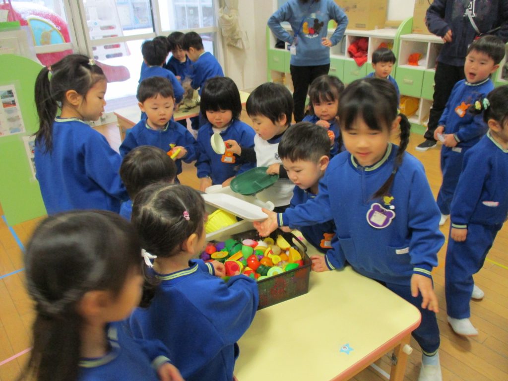 遊んだ後は、2歳さんの給食の準備も一緒にしました♪