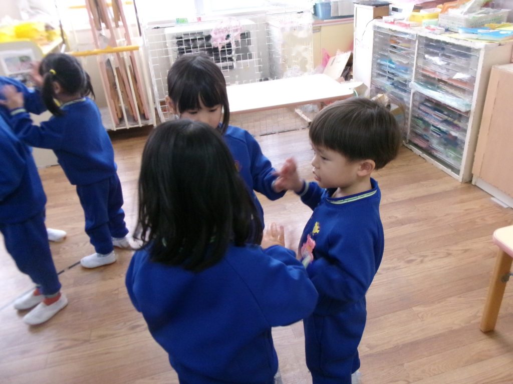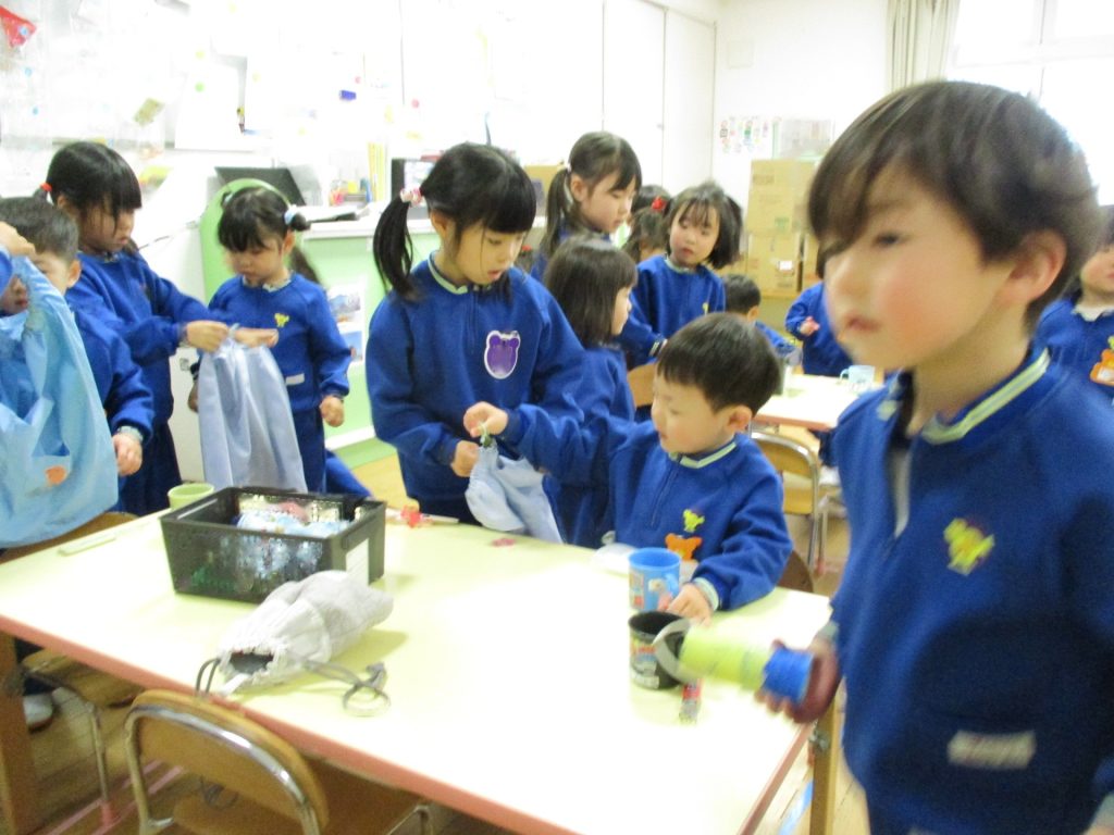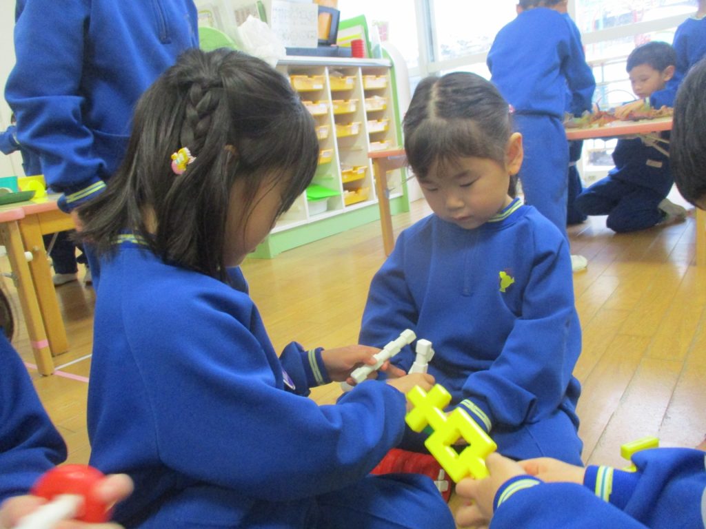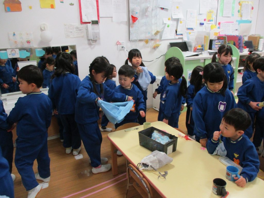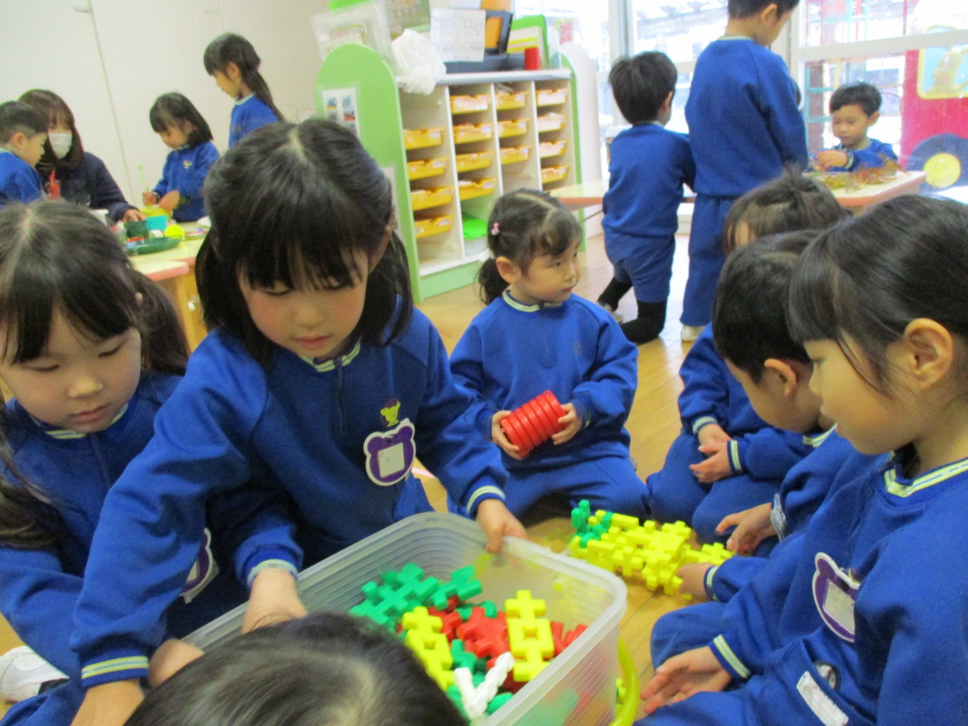 遊んだ後は、2歳さんの給食の準備も一緒にしました♪