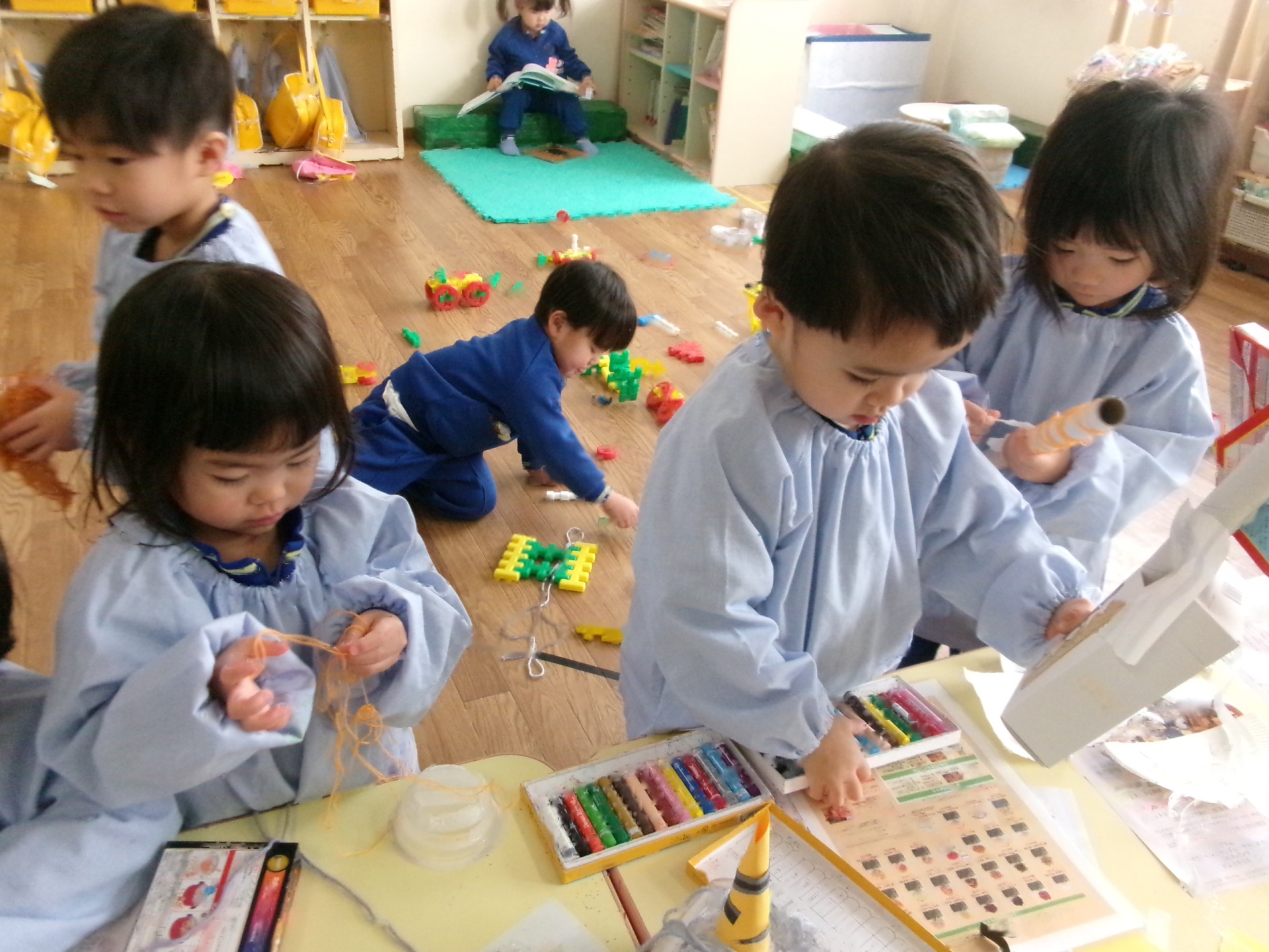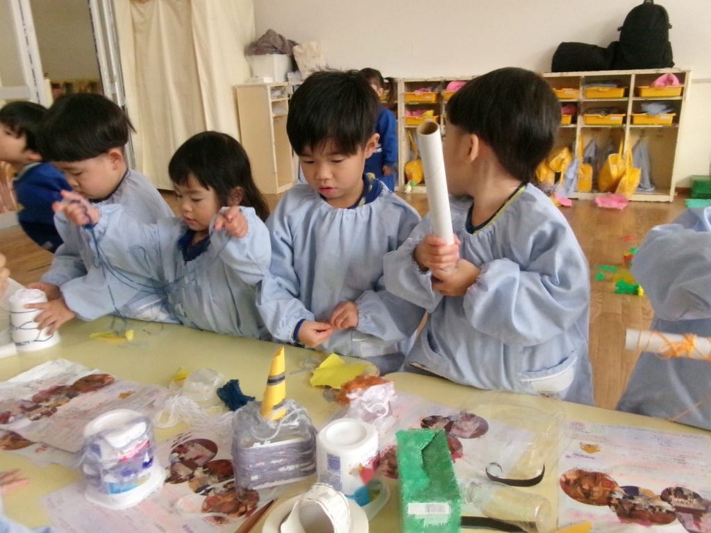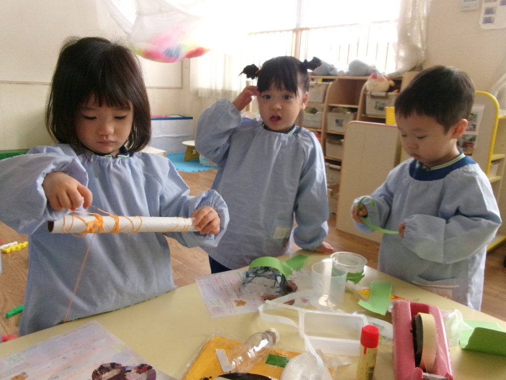 そんな友達の様子を見て、「わたしも作る!」「ぼくもやりたい!」と帽子作りが大盛り上がり☆