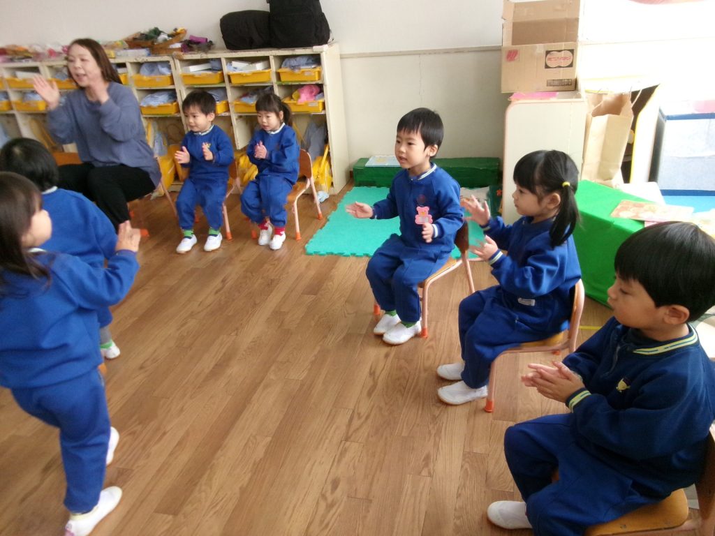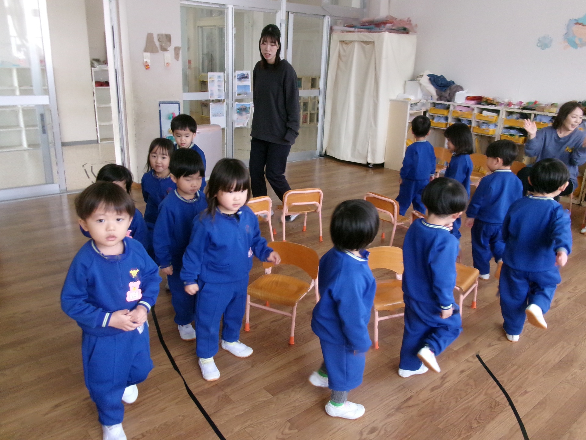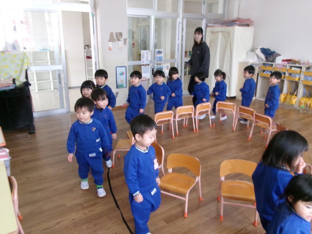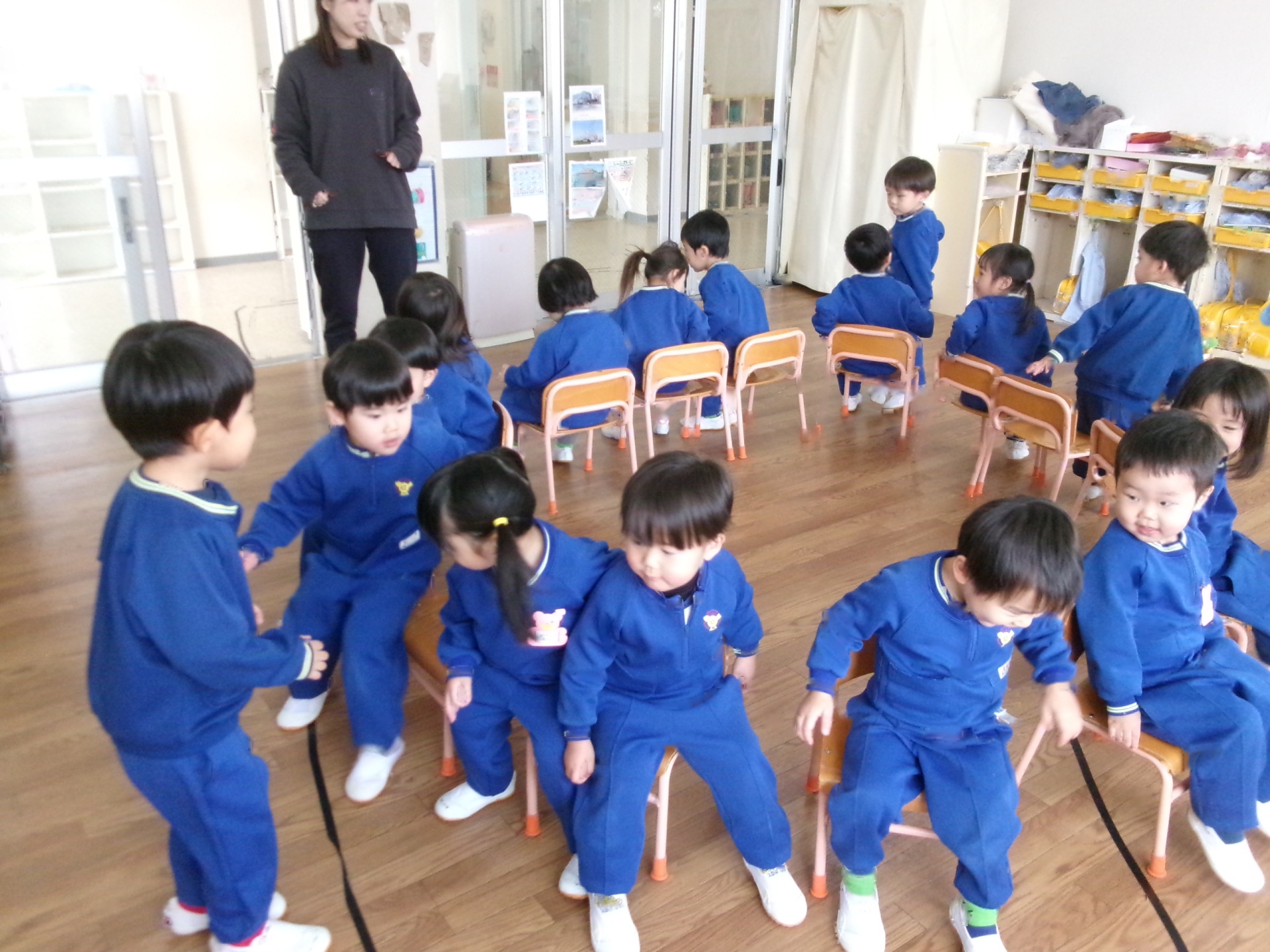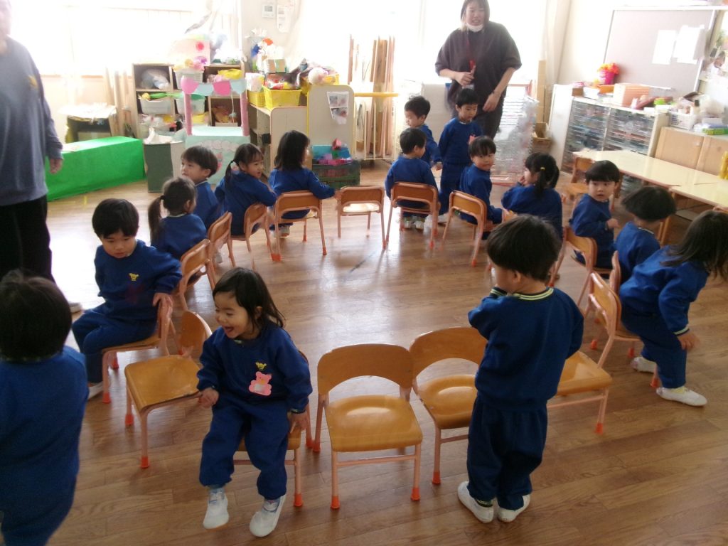 座れなかったお友達は周りで応援団に変身!「頑張れー!」「ここが空いているよ!」と応援したり、教えてあげたり、と可愛い声が聞こえてきます。