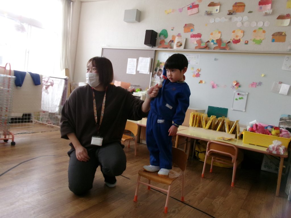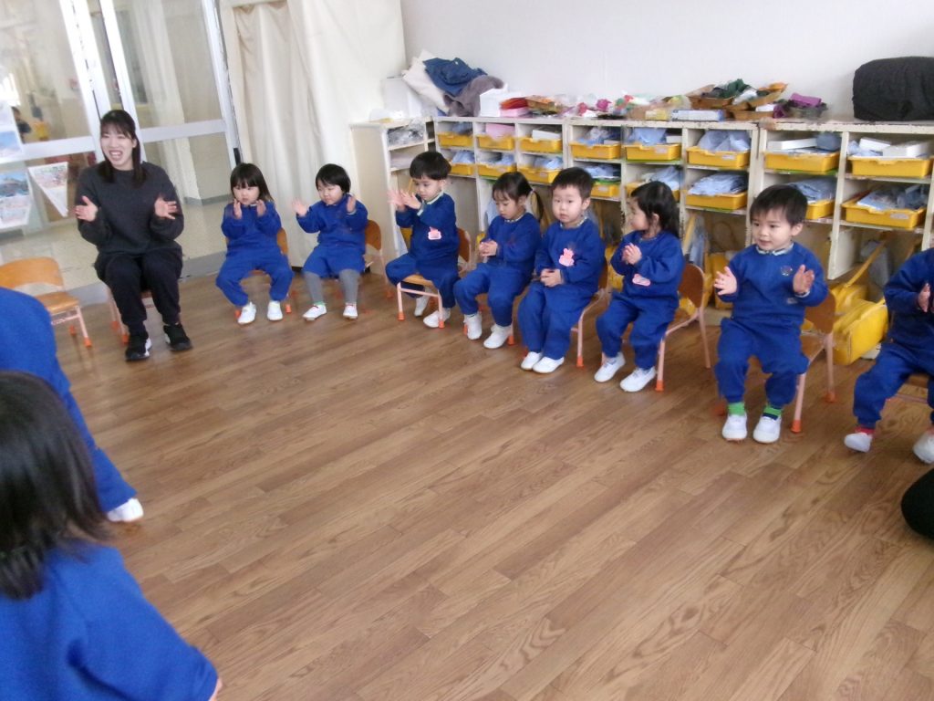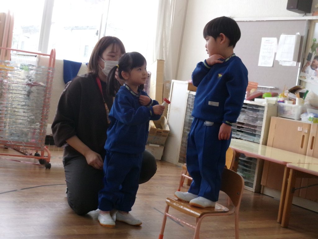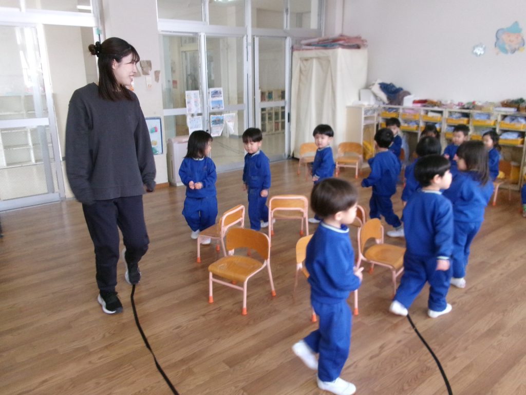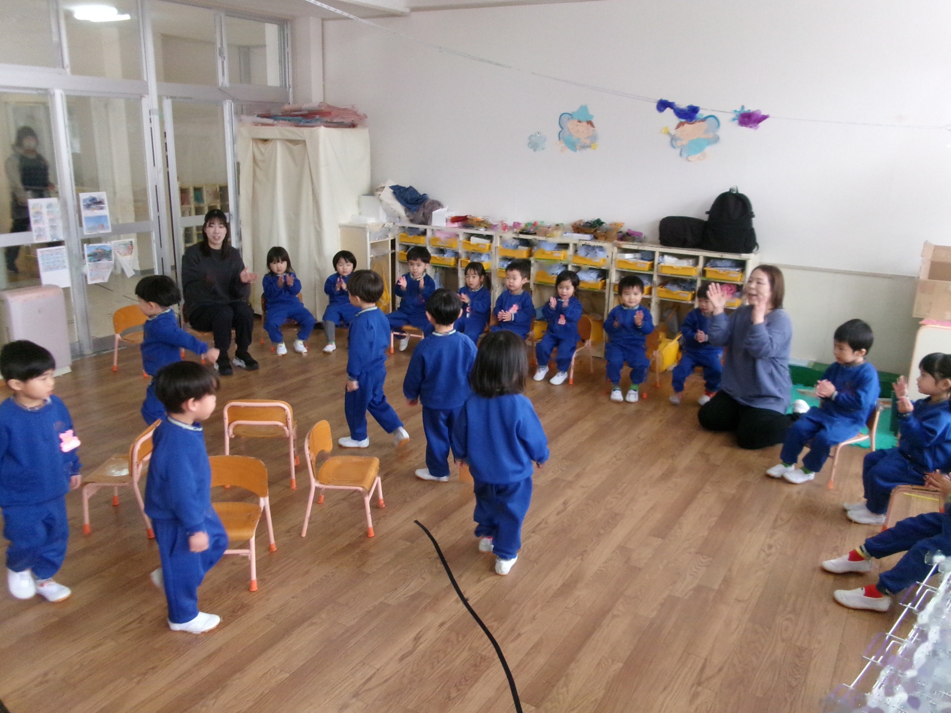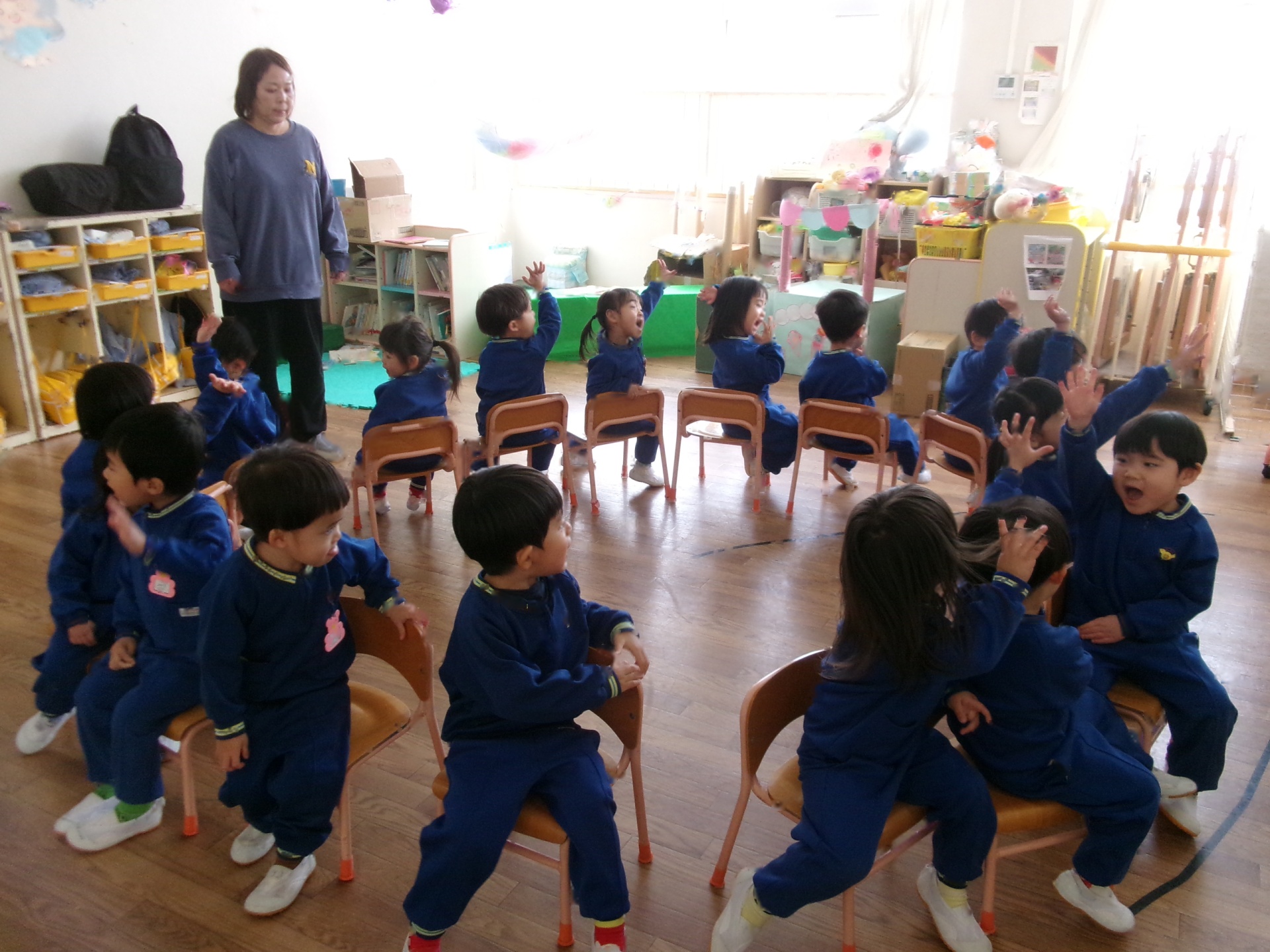 座れなかったお友達は周りで応援団に変身!「頑張れー!」「ここが空いているよ!」と応援したり、教えてあげたり、と可愛い声が聞こえてきます。