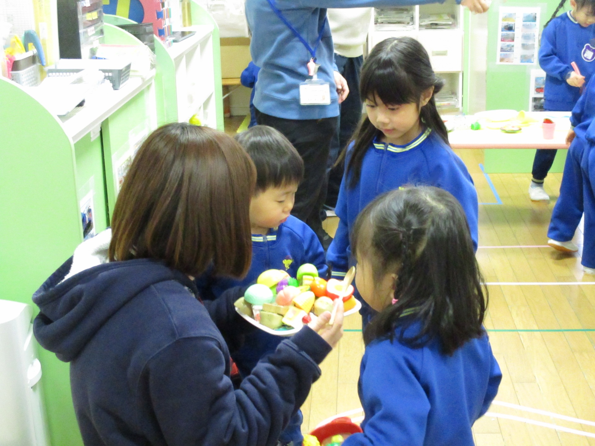 作品展鑑賞をする前に、ふれあい遊びやままごとなど色々な遊びを楽しみました。