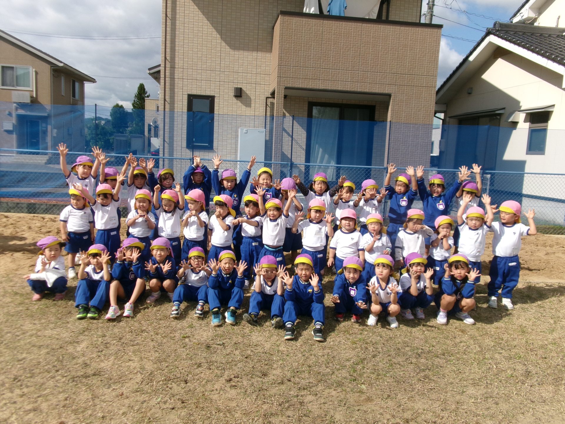 先日、いちご組とすみれ組・みかん組とゆり組で遊びました!一緒に歌を歌ったり、ふれあい遊びをしたりしました☆