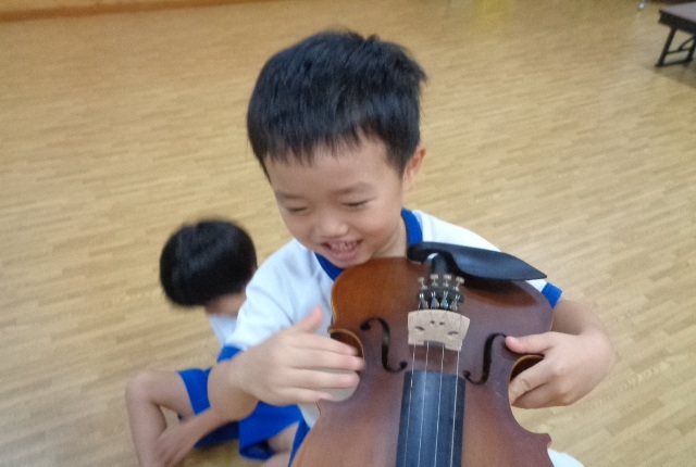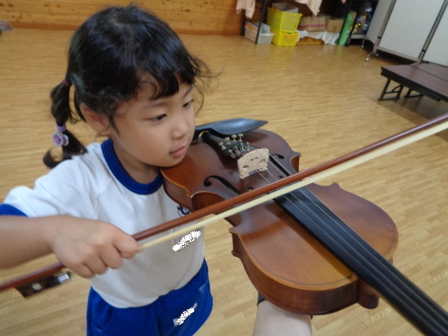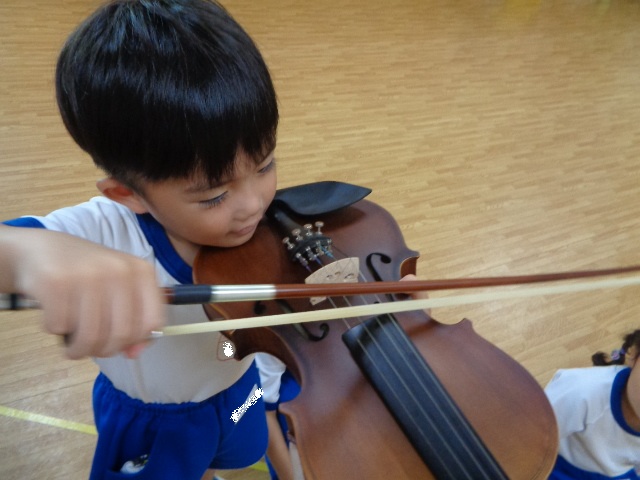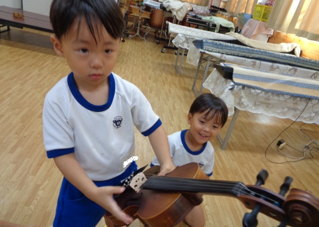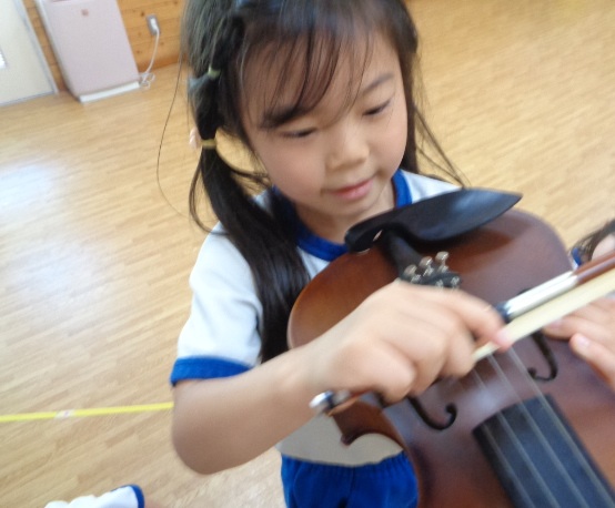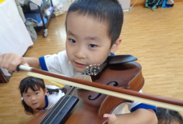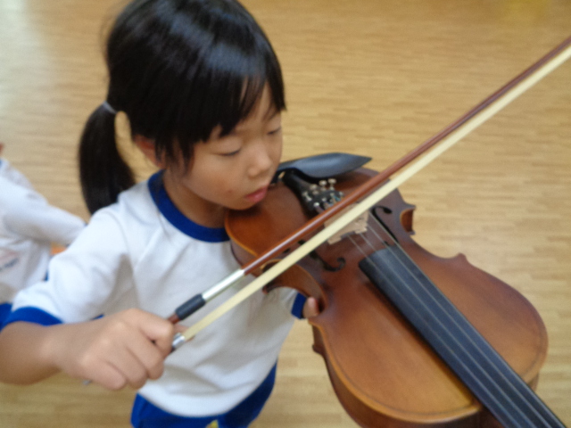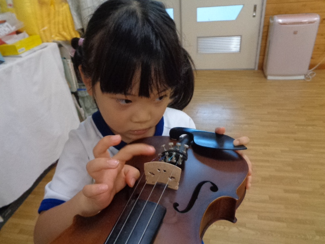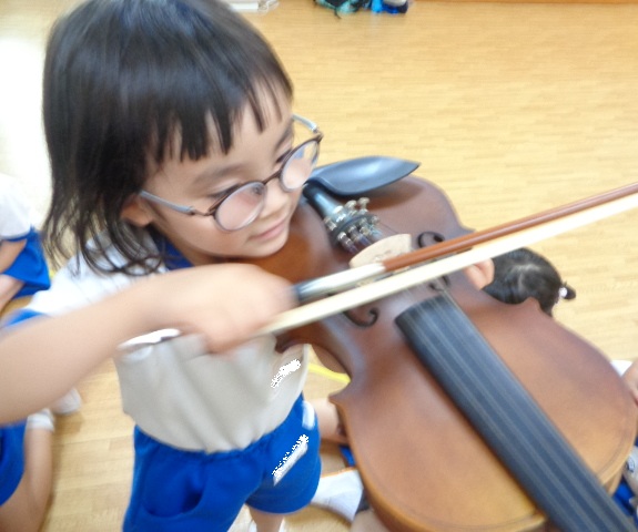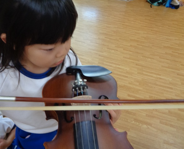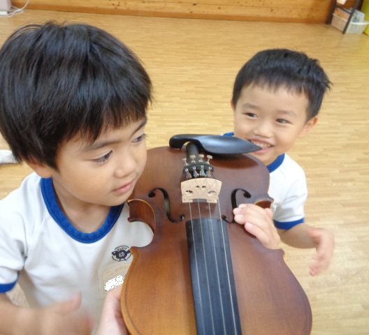 ヴァイオリンの音色を聴いたり、弾いてみたり…うれしそうな子どもたちでした!