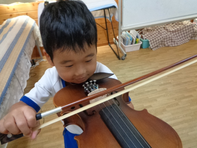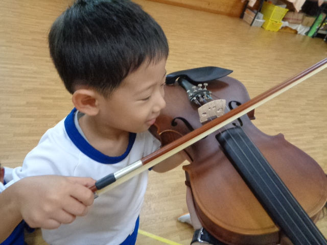 ヴァイオリンの音色を聴いたり、弾いたりしました。良い音が鳴っていました♪