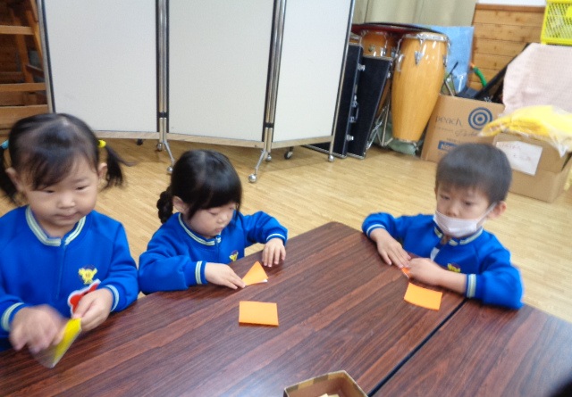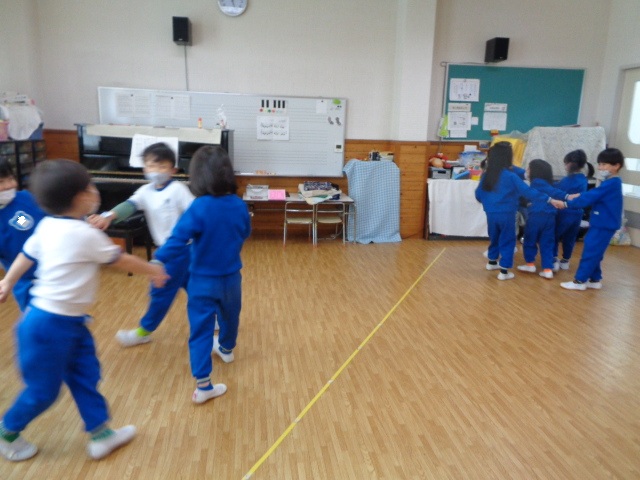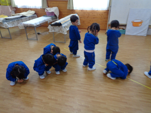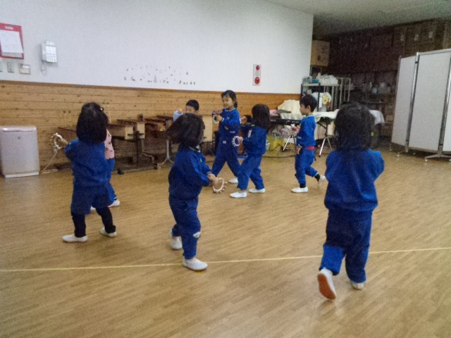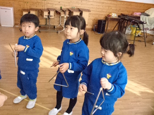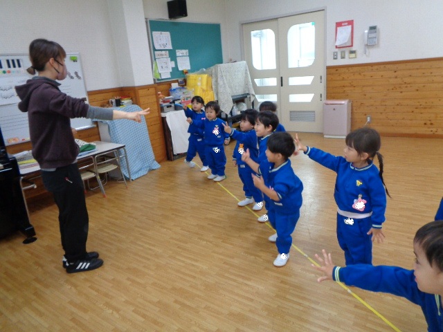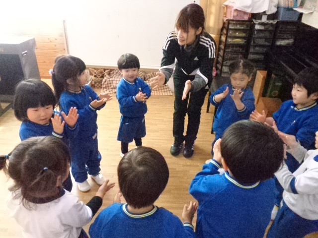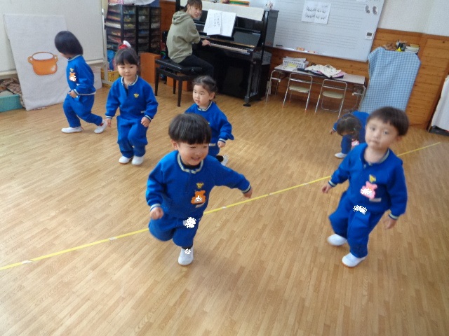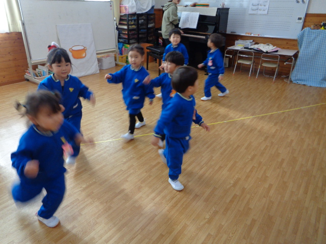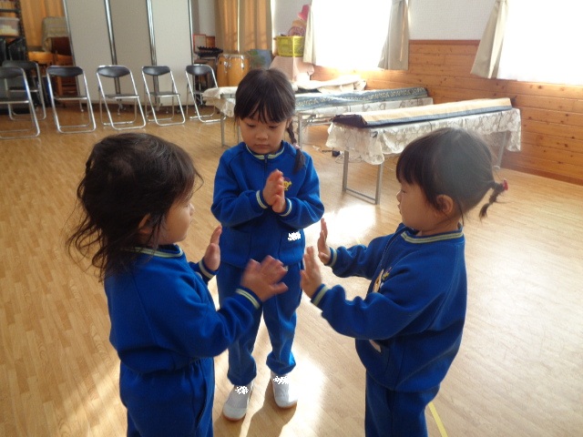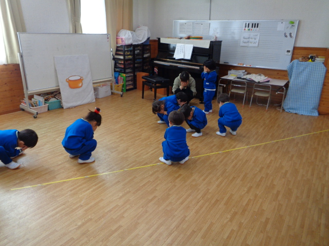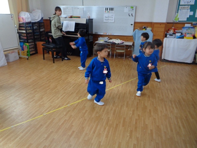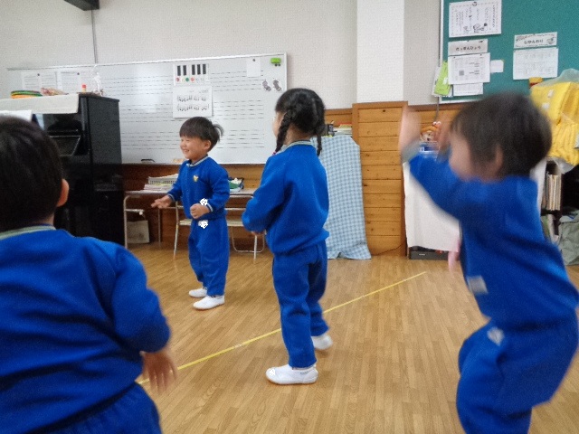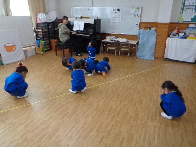 ~年少さん~ 色々な音の合図の違いを聴きながら表現したり、お友達と3拍子の表現をしたり、様々なことにチャレンジしながら取り組んでいます!