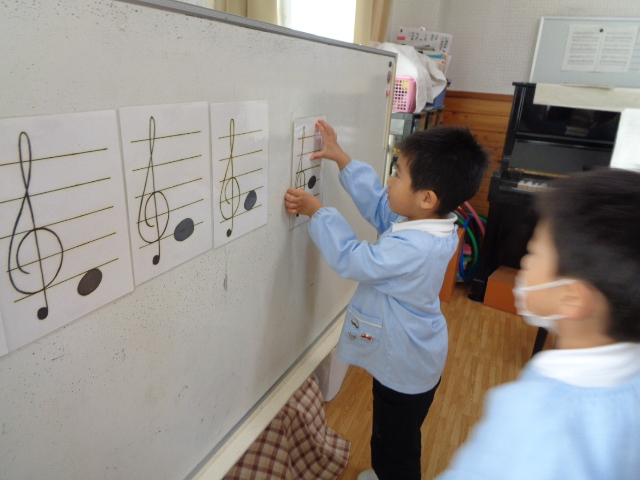 五線譜上の音符も少しずつ読めるようになってきています。