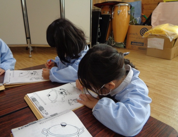 音の上がり下がりを感じながら…なべなべそこぬけ♪音に色をぬりました。