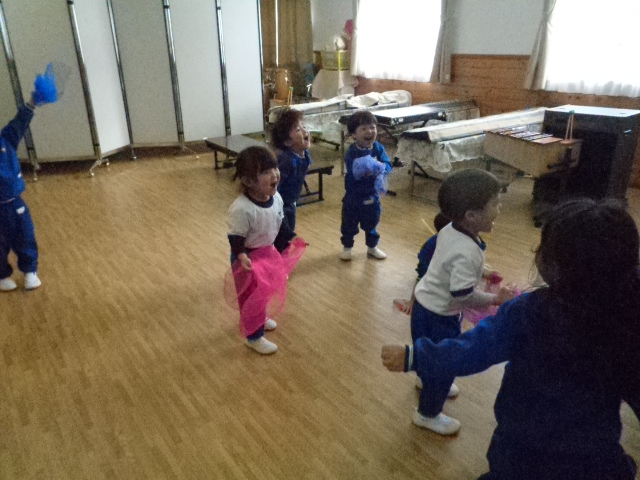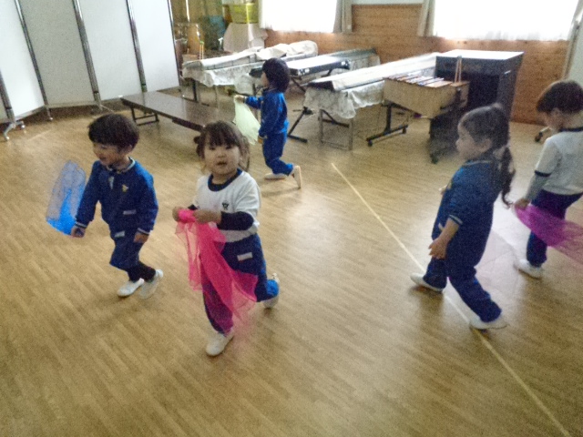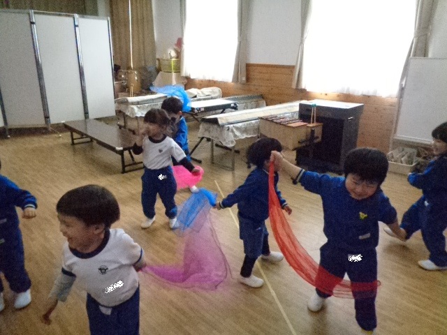 スカーフを使った活動も表現の幅が広がってきました♪