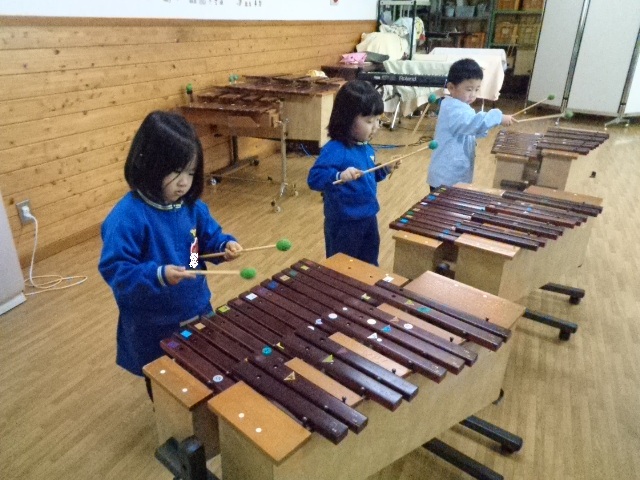 様々な小物打楽器を鳴らし、音色の違いを楽しみました。