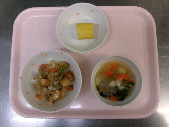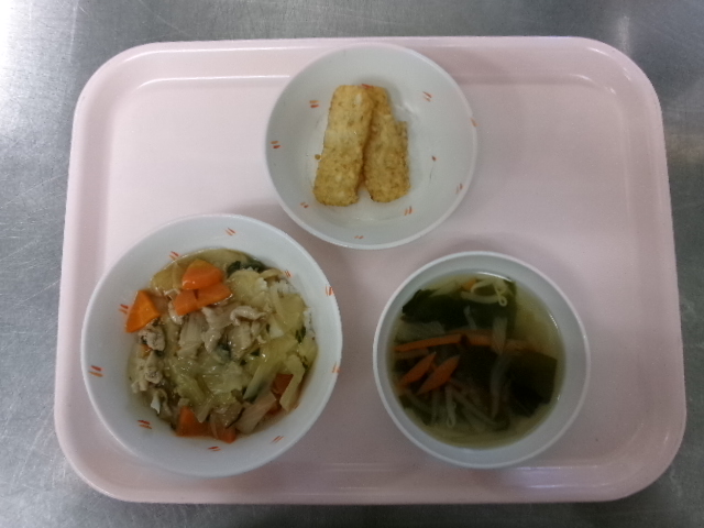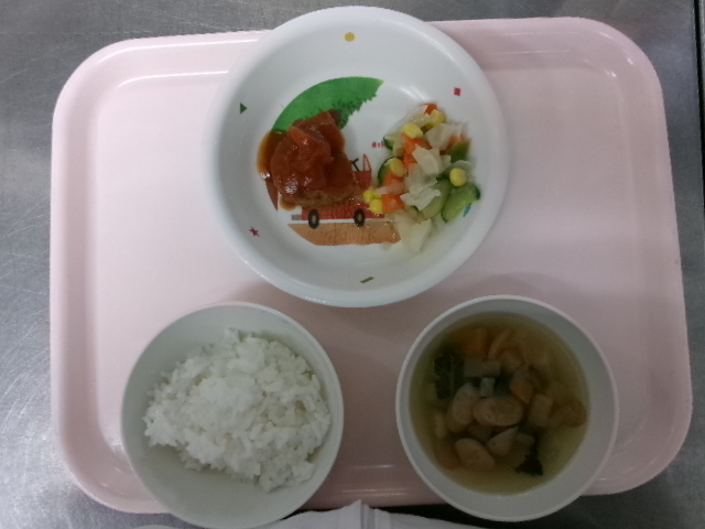 きのこの日メニュー:今日はきのこの日なのでしめじを使ったスープです🍄