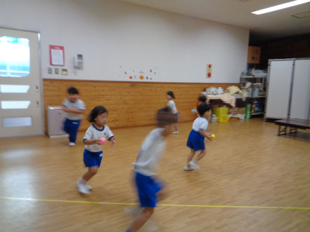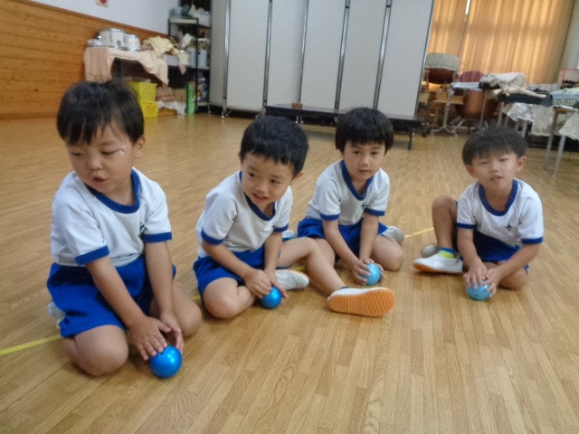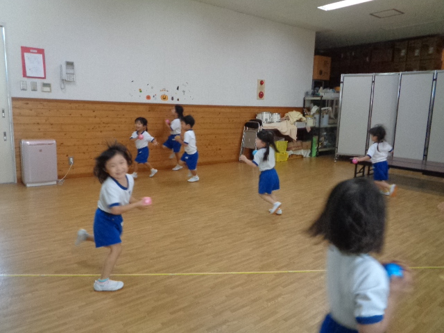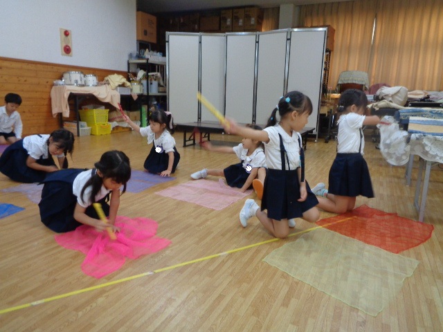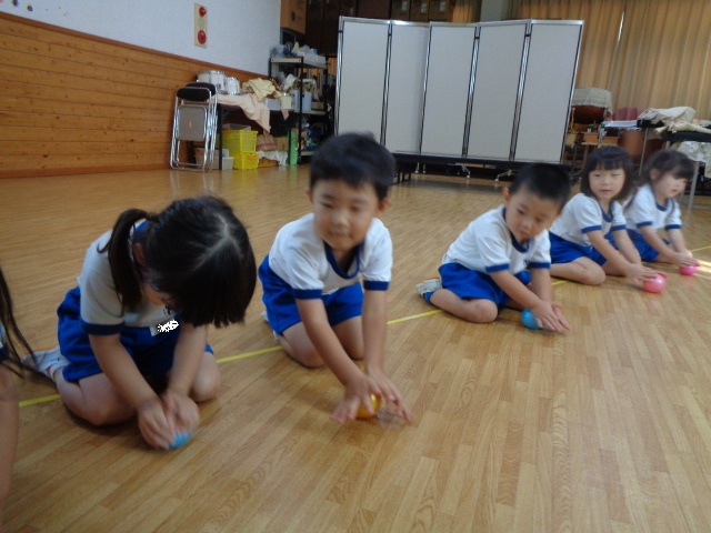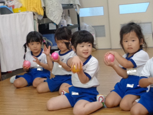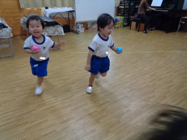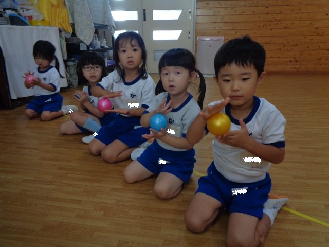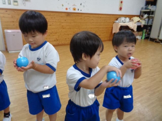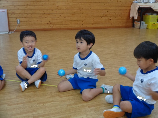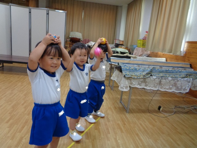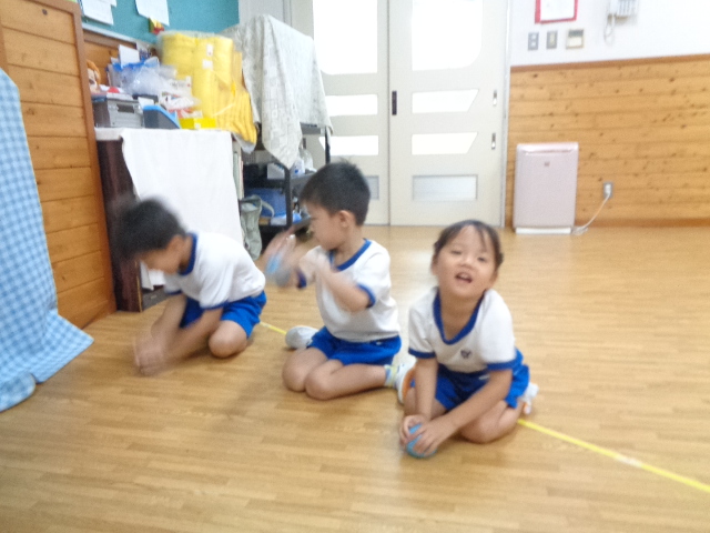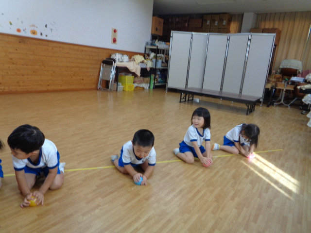 お友達とスカーフをもって、ゆーらんゆーらん♪ボールを落とさないように…