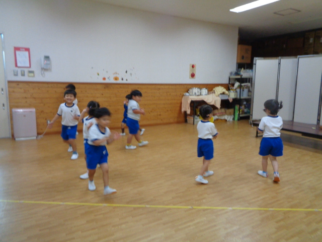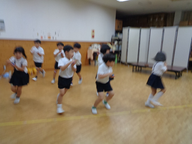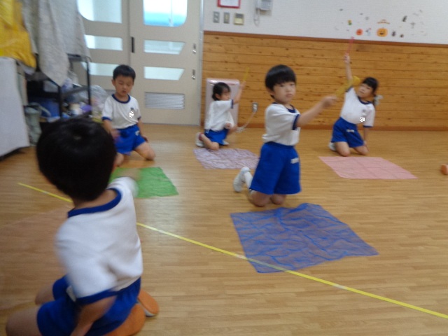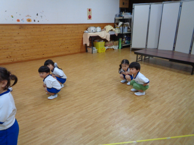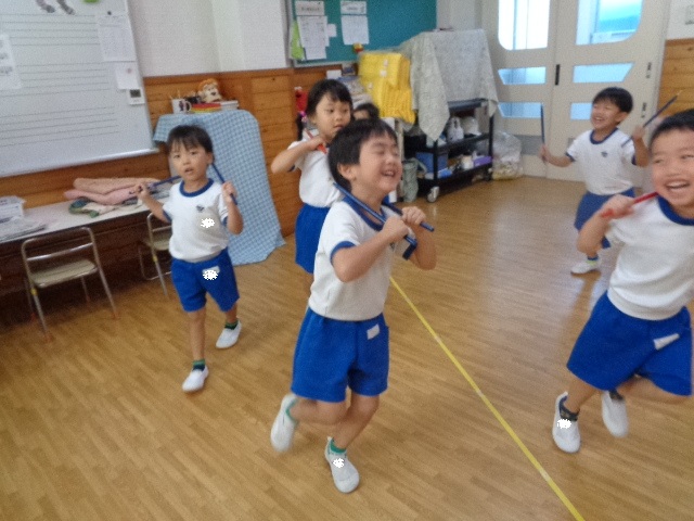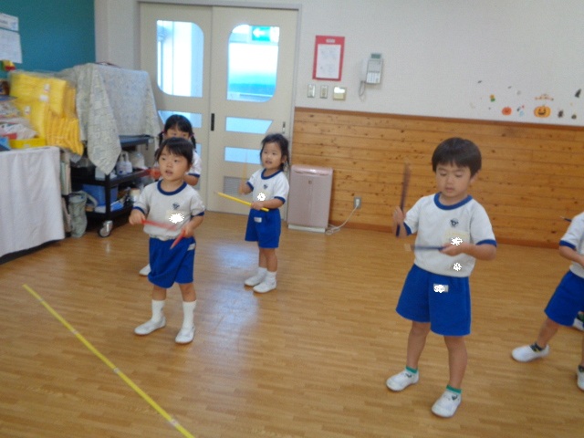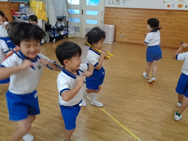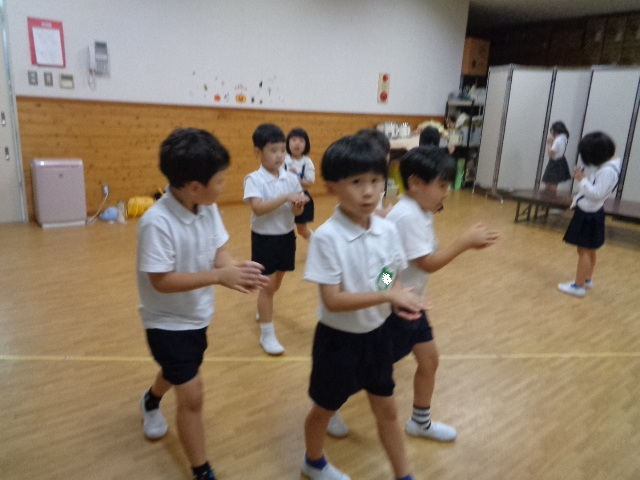 ~年長さん~ おおきなくりの木の下での補足リズムの表現にチャレンジしました♪難しい!といいながらも、だんだんと感覚をつかんでいた子どもたちです♪