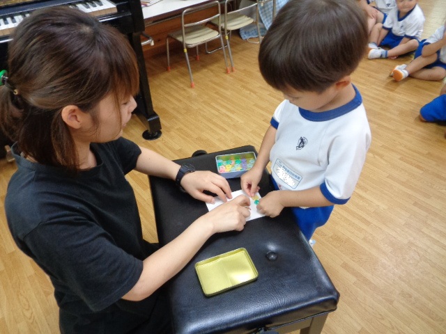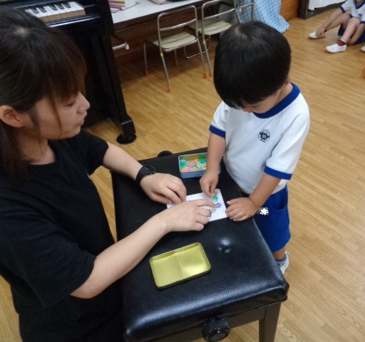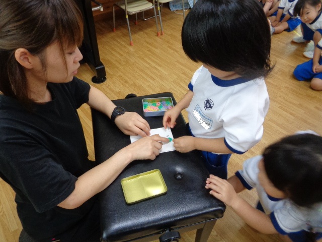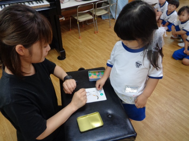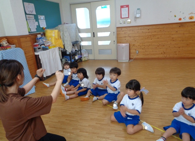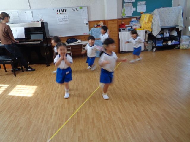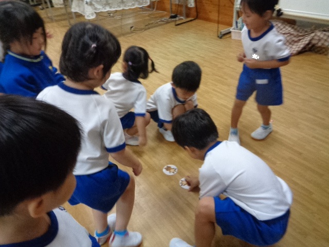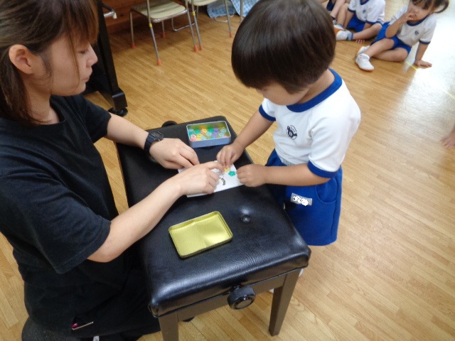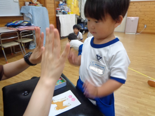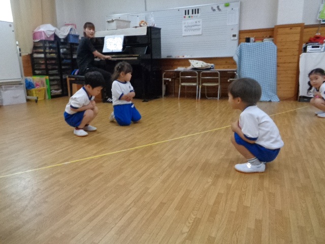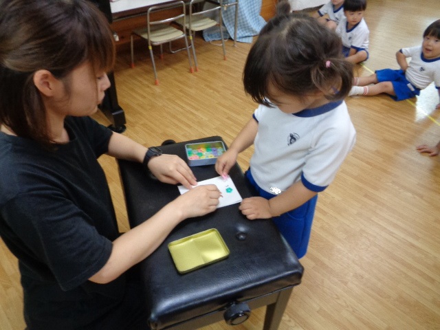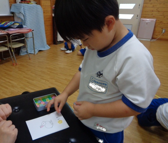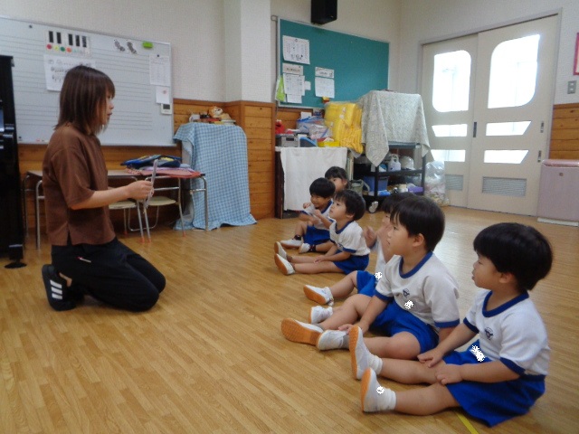 ~年少さん~ 色々な音の長さを表現したり、聴き分けたりしました。動物さんカードとれるかな?