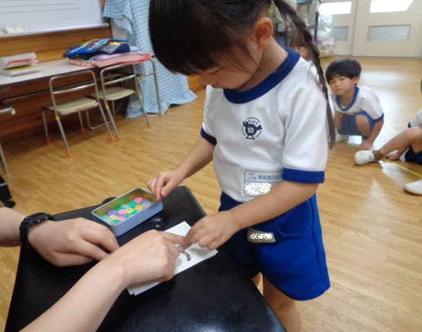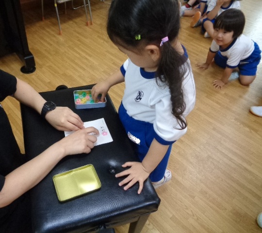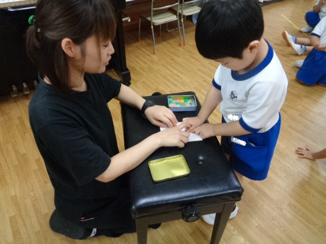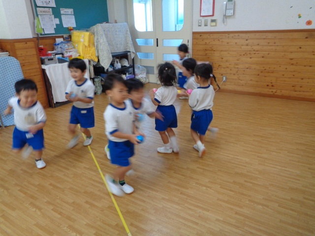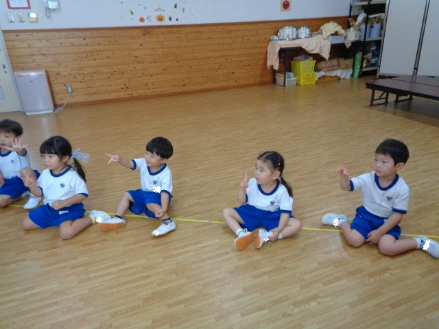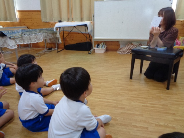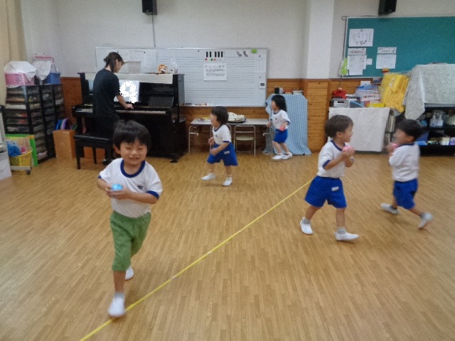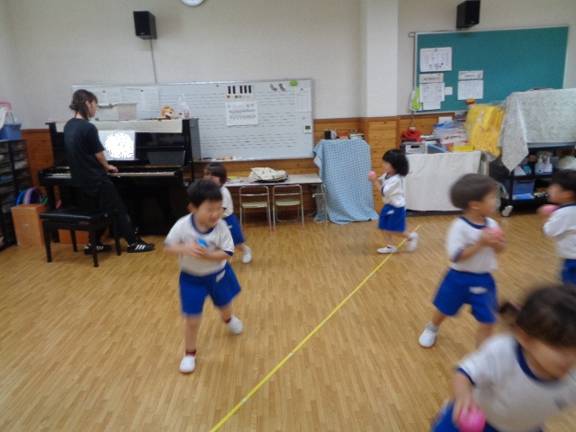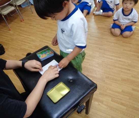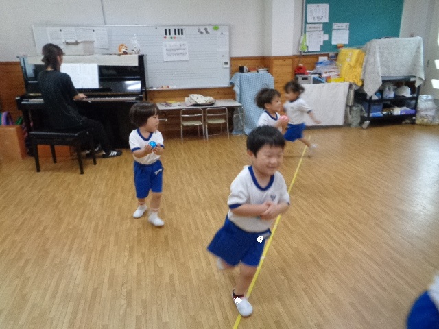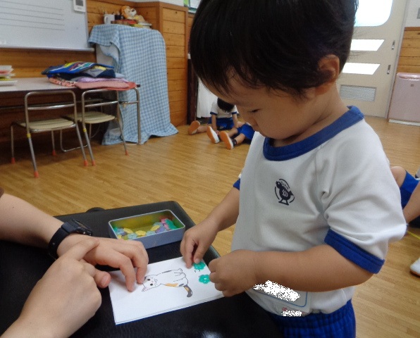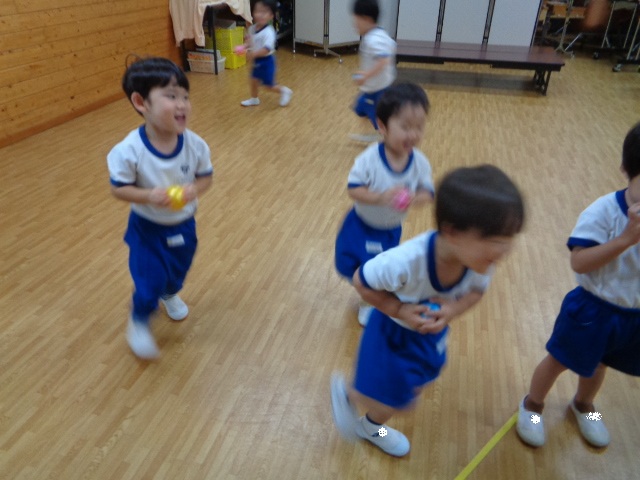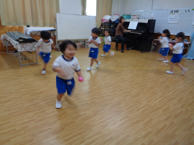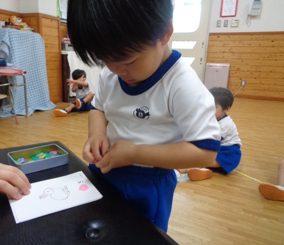 ~年少さん~ 色々な音の長さを表現したり、聴き分けたりしました。動物さんカードとれるかな?