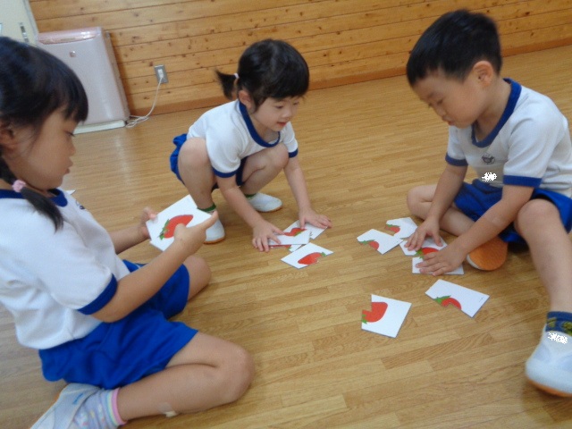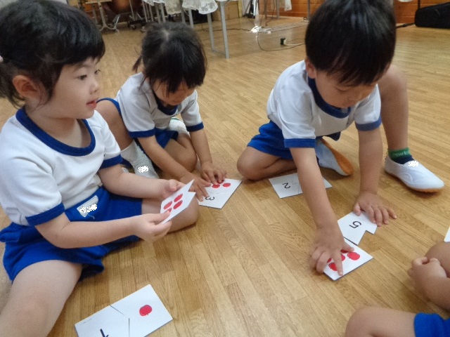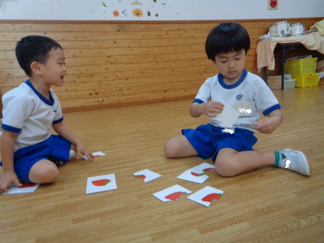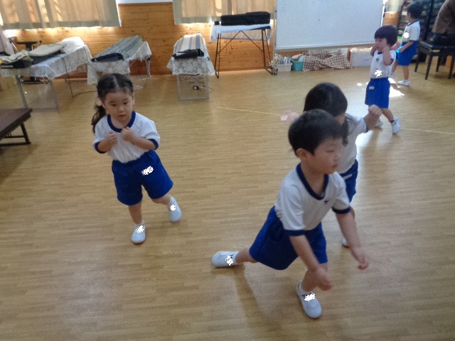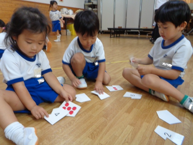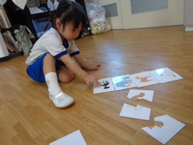 ~年少さん~ 色々な音の長さを感じながら身体で表現したり、音楽を聴き分けて動物カードをとったり…音楽の違いがよく分かるようになりました!
