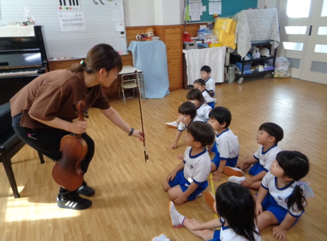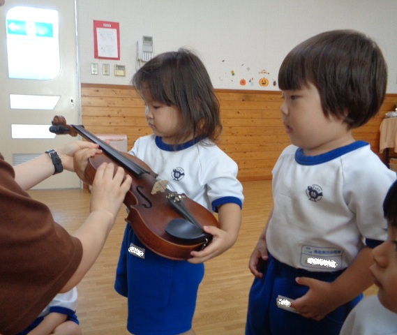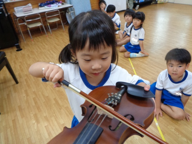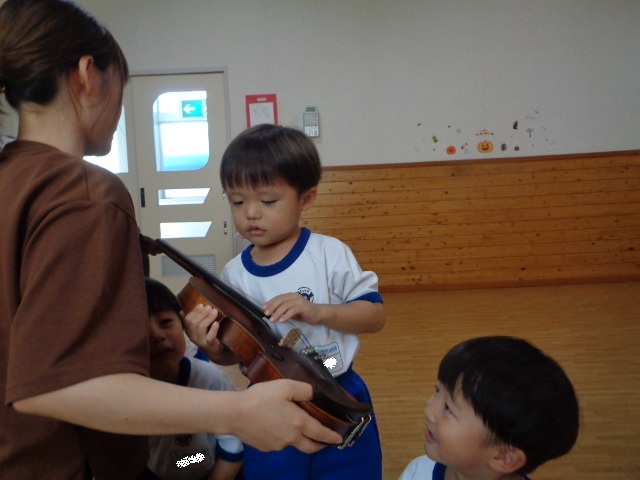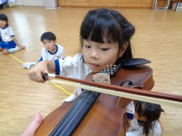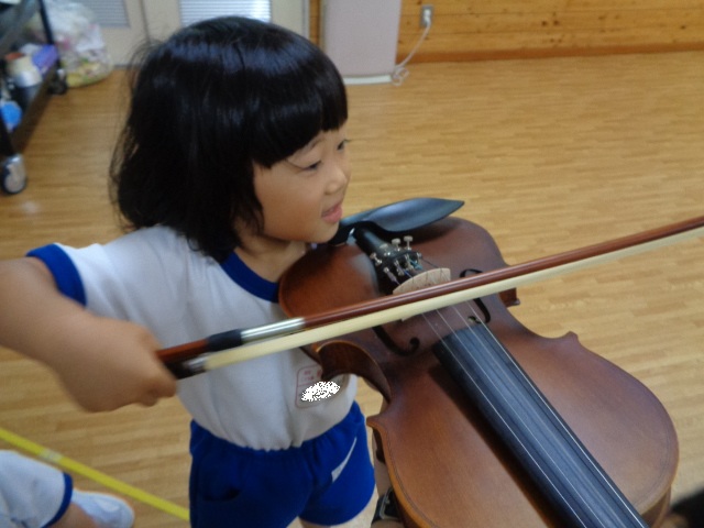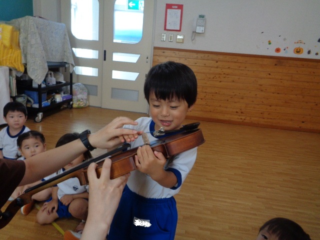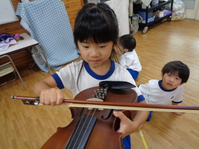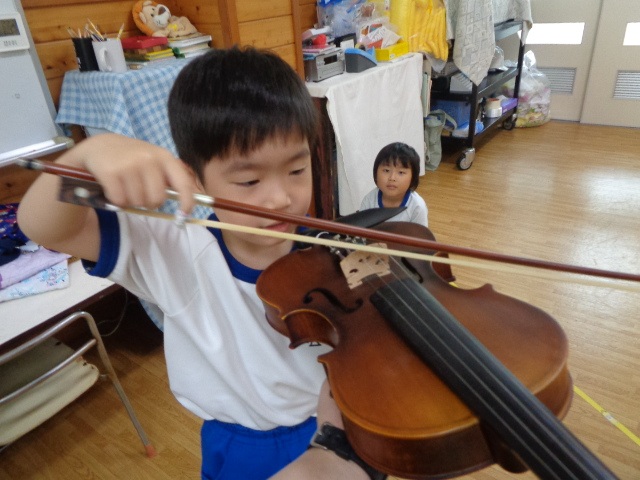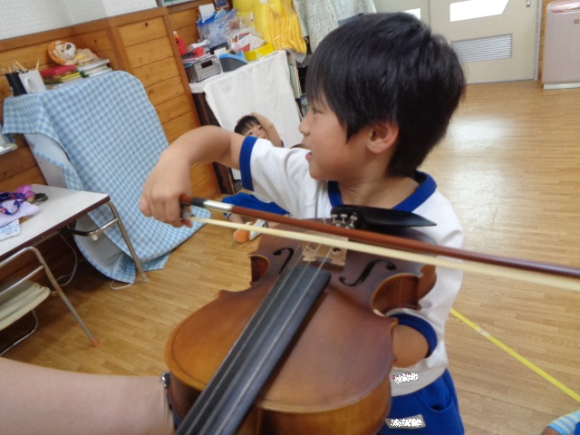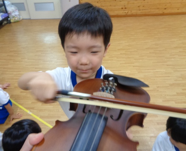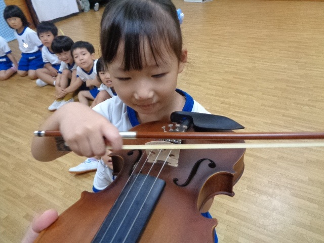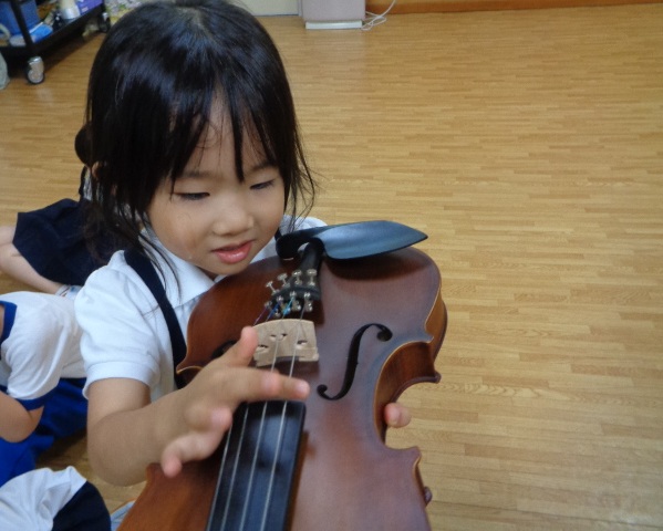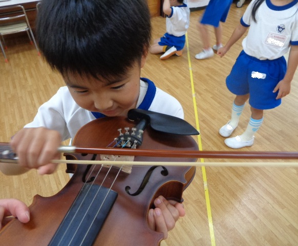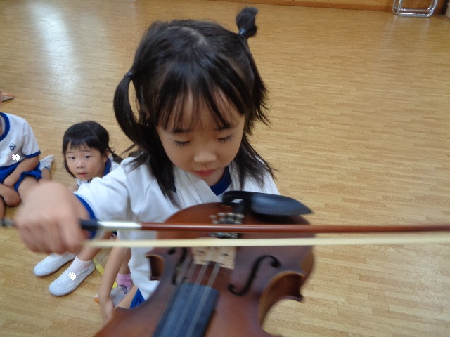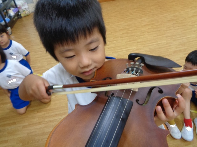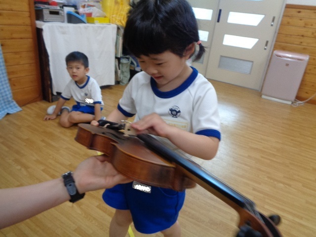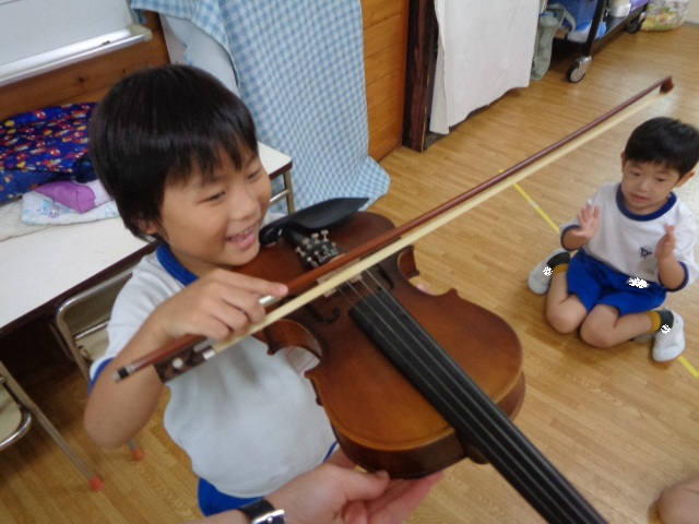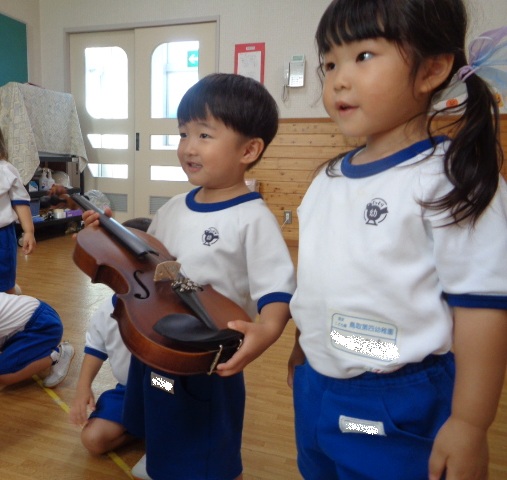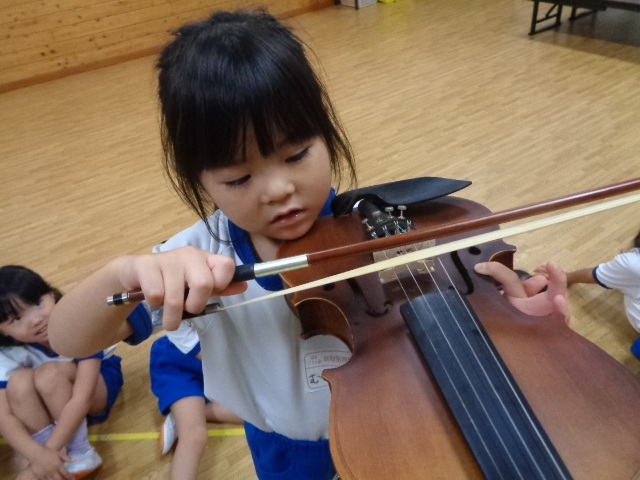 ヴァイオリンの音色を聴いたり、弾いてみたり…うれしそうな子どもたちでした!