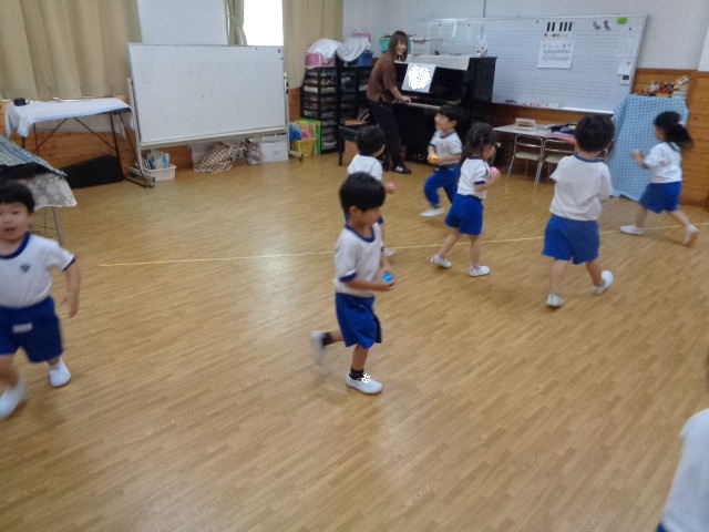 ~年少さん~ 色々な音の長さを身体で表現したり、音楽を聴き分けたり、身体全身で音楽を感じて楽しんでいました♪