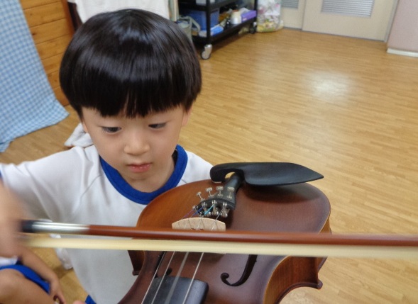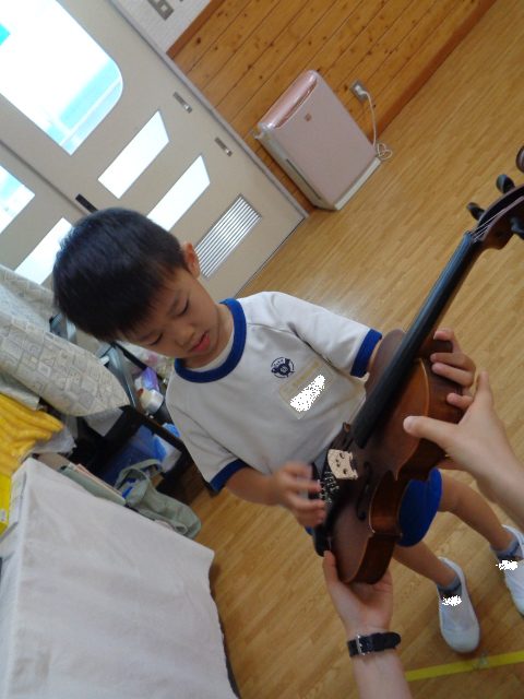 ヴァイオリンの音色を聴いたり、弾いたりしました。良い音が鳴っていました♪