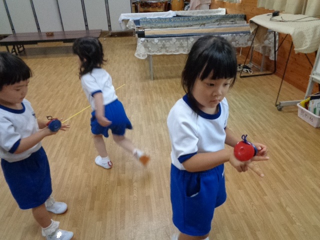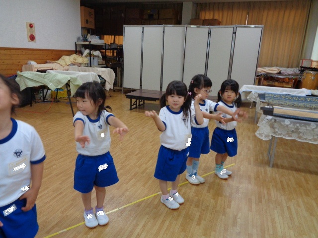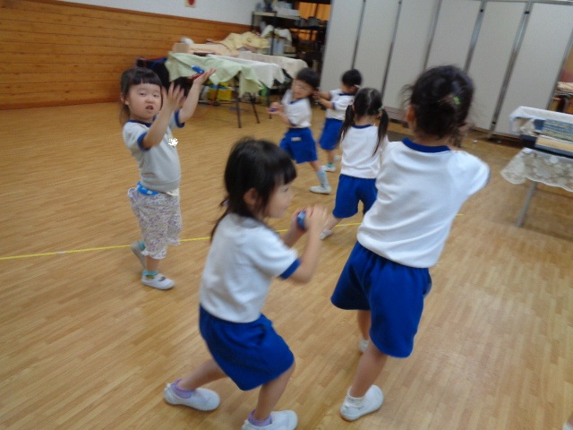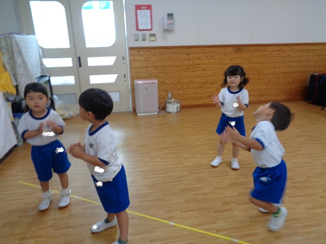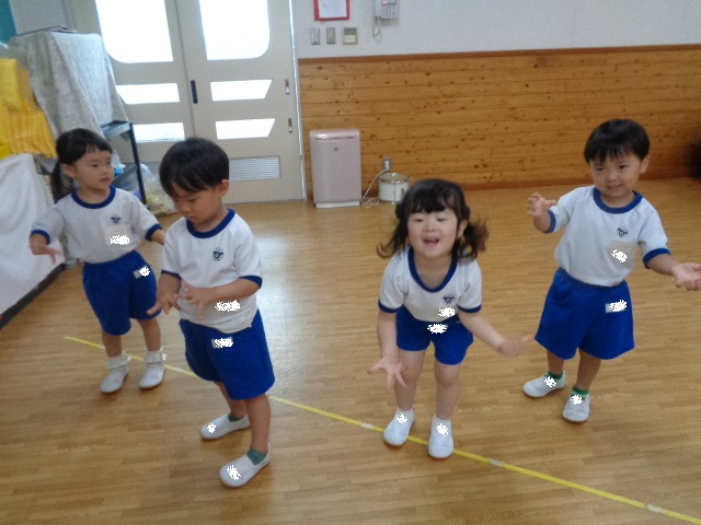 音楽に合わせてリズム遊び♪しっかり手首をひねったり、前後の重心移動をしたり上手になってきました。