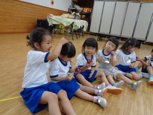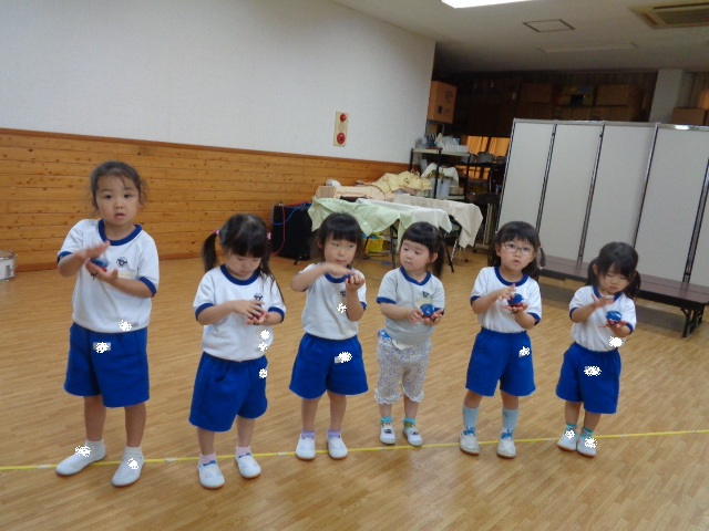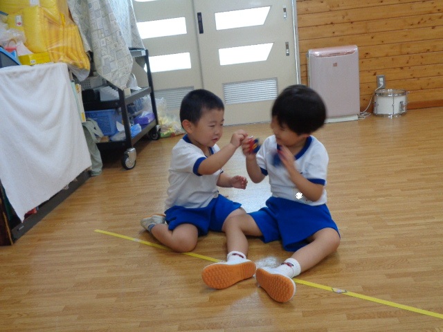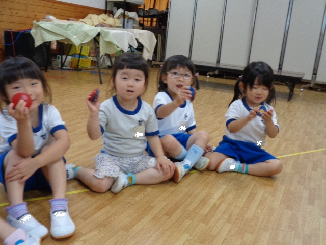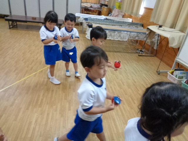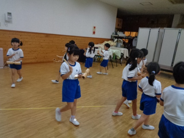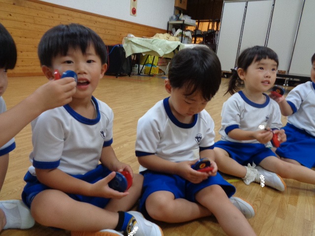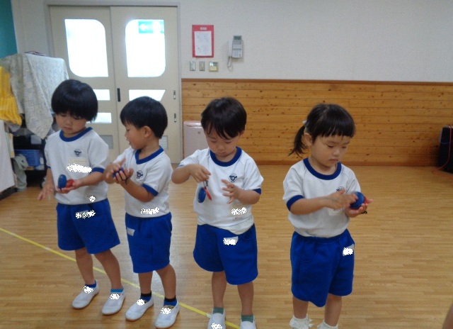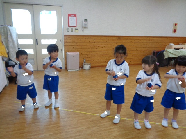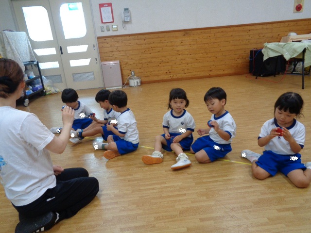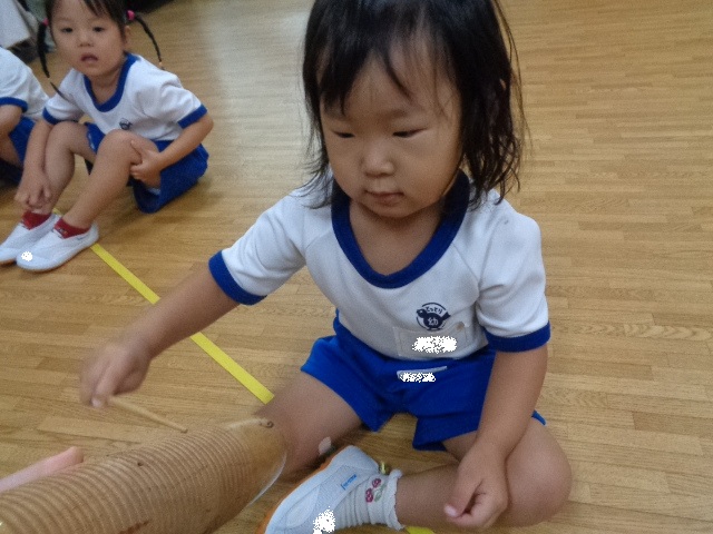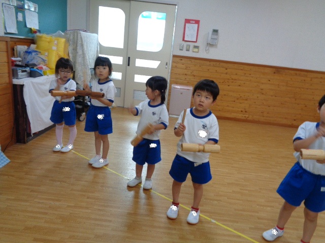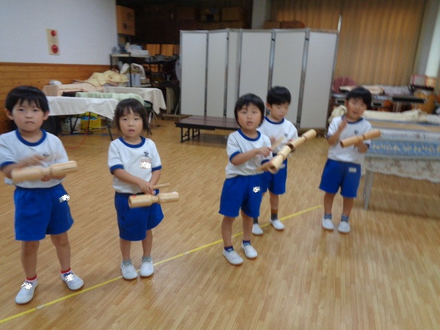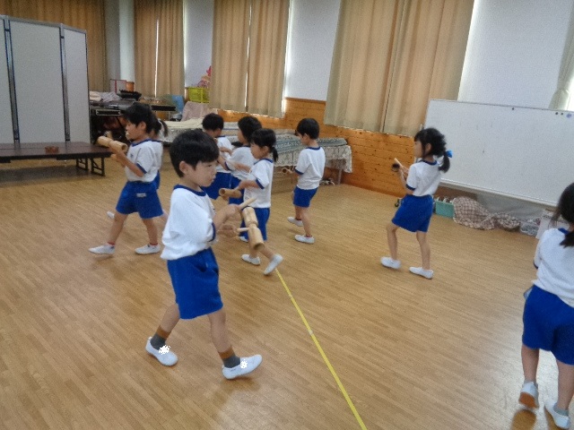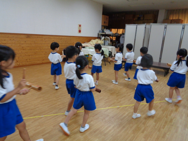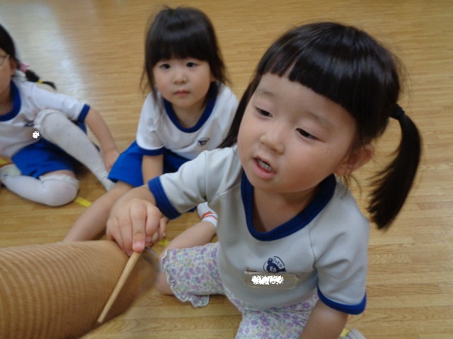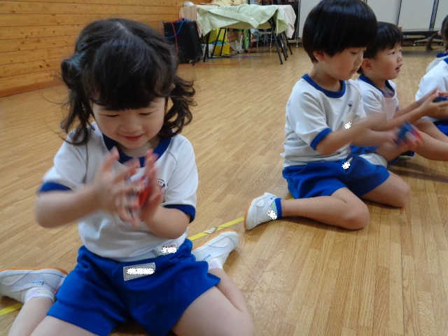 ~年中さん~ わらべうた「たこたこあがれ」に合わせてリズムを鳴らしました。