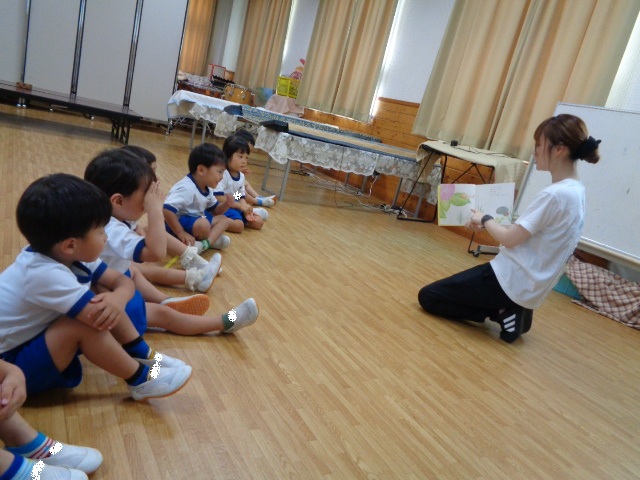 ~年中さん~ ハンドサインをつけてわらべ歌を歌いました。