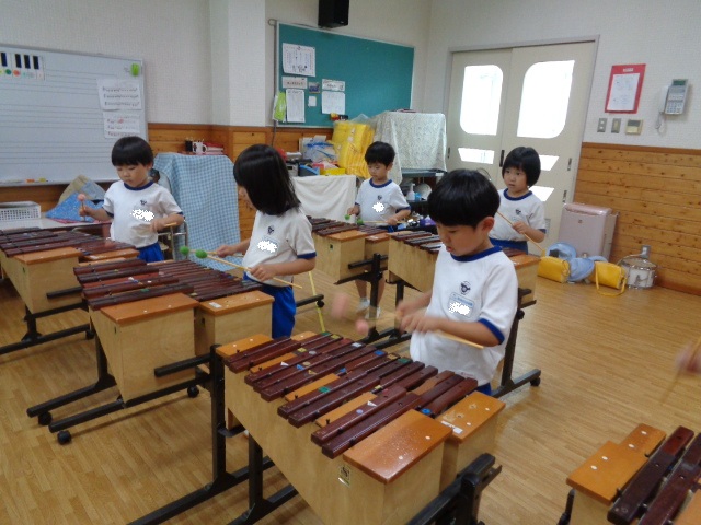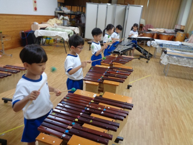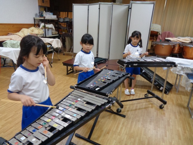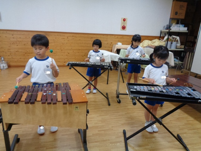 たなばたの曲で…グロッケンとザイロフォンにわかれて演奏を楽しみました。