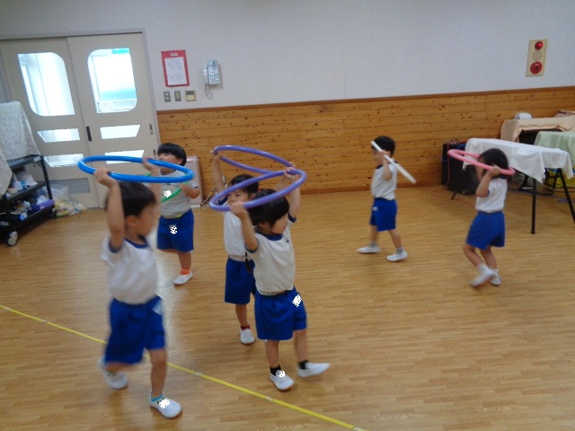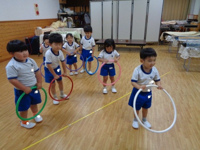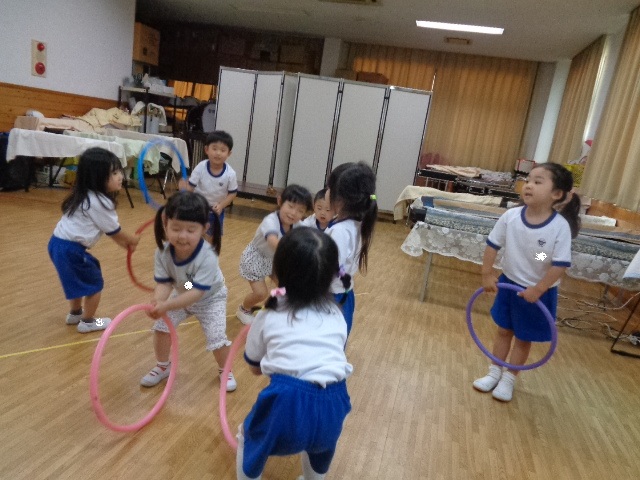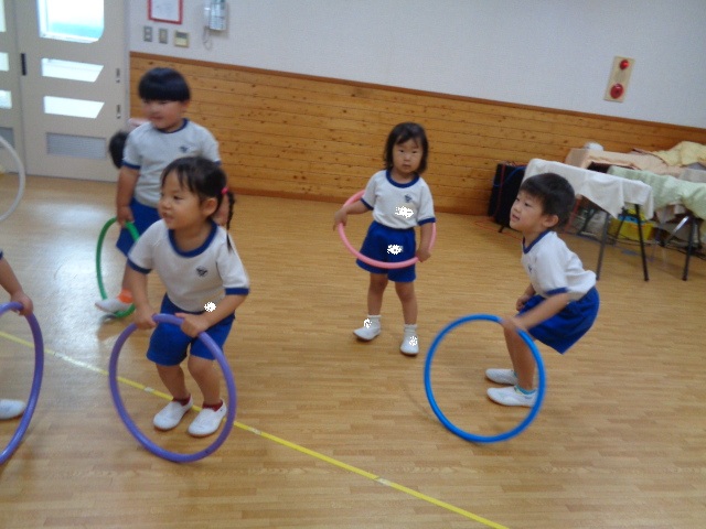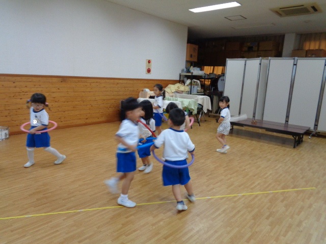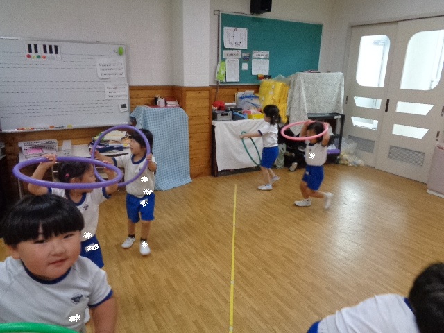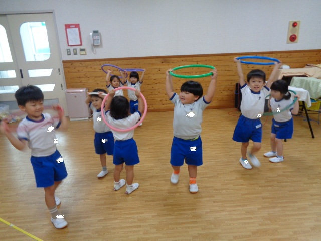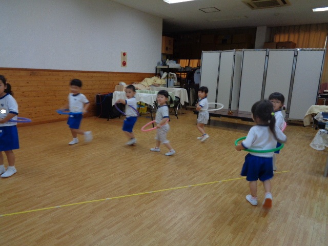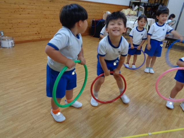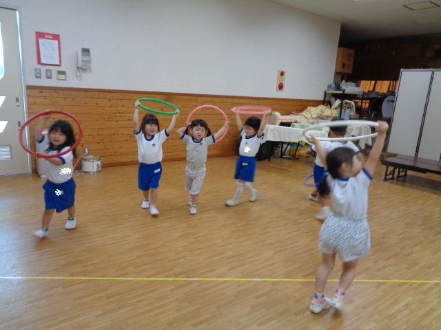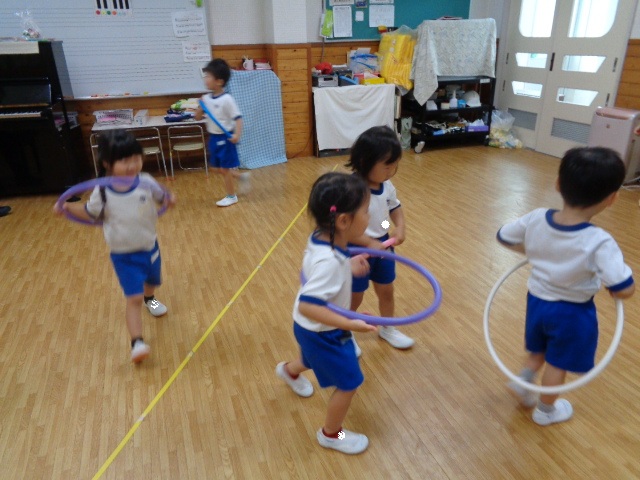 フープを使って…音の高低や合図を聴いて、色々な表現を楽しみました。