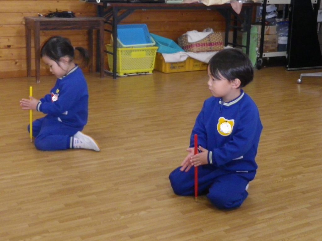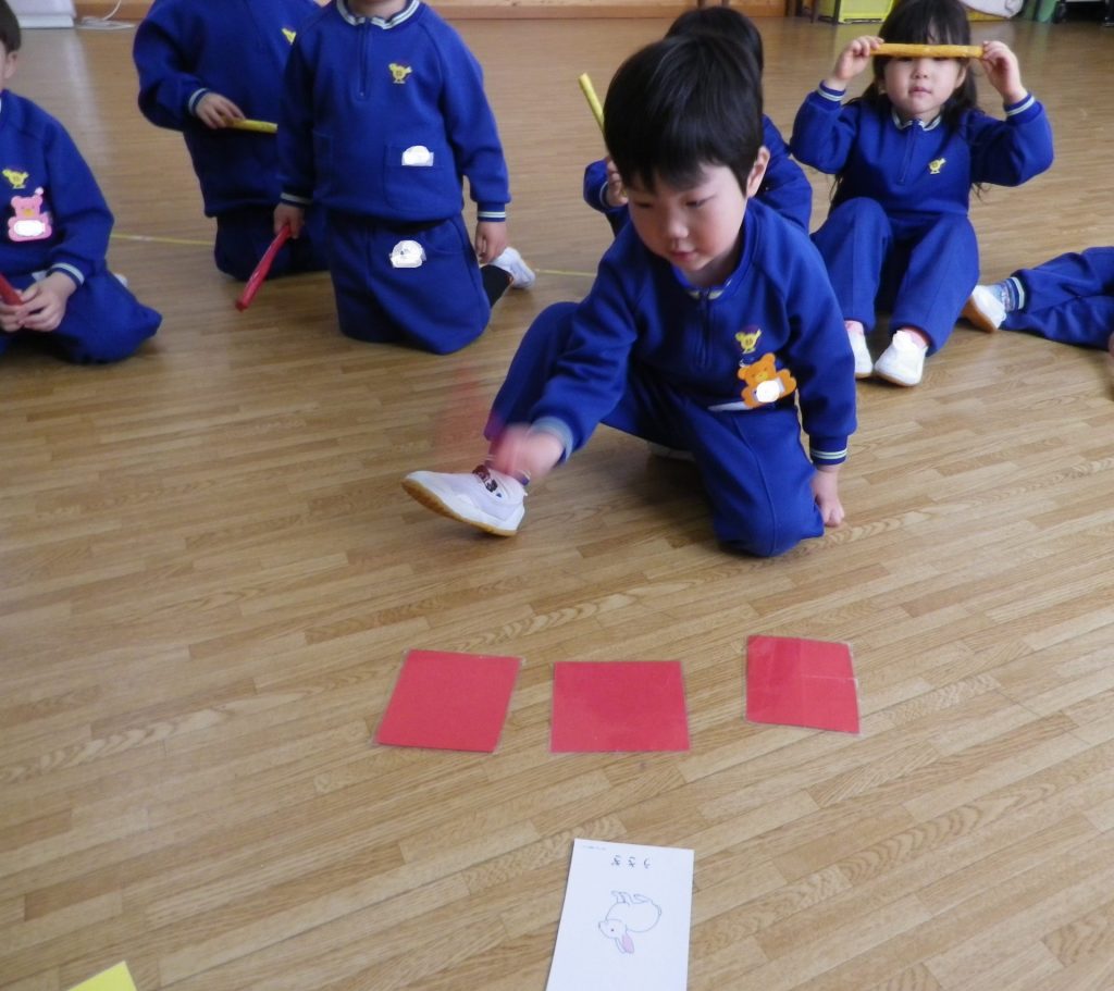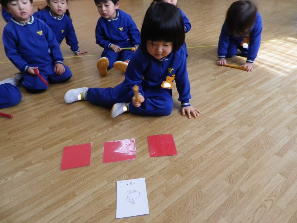 ~年中さん~ 色々なリズムをスティックとカラーボードで表現しました。