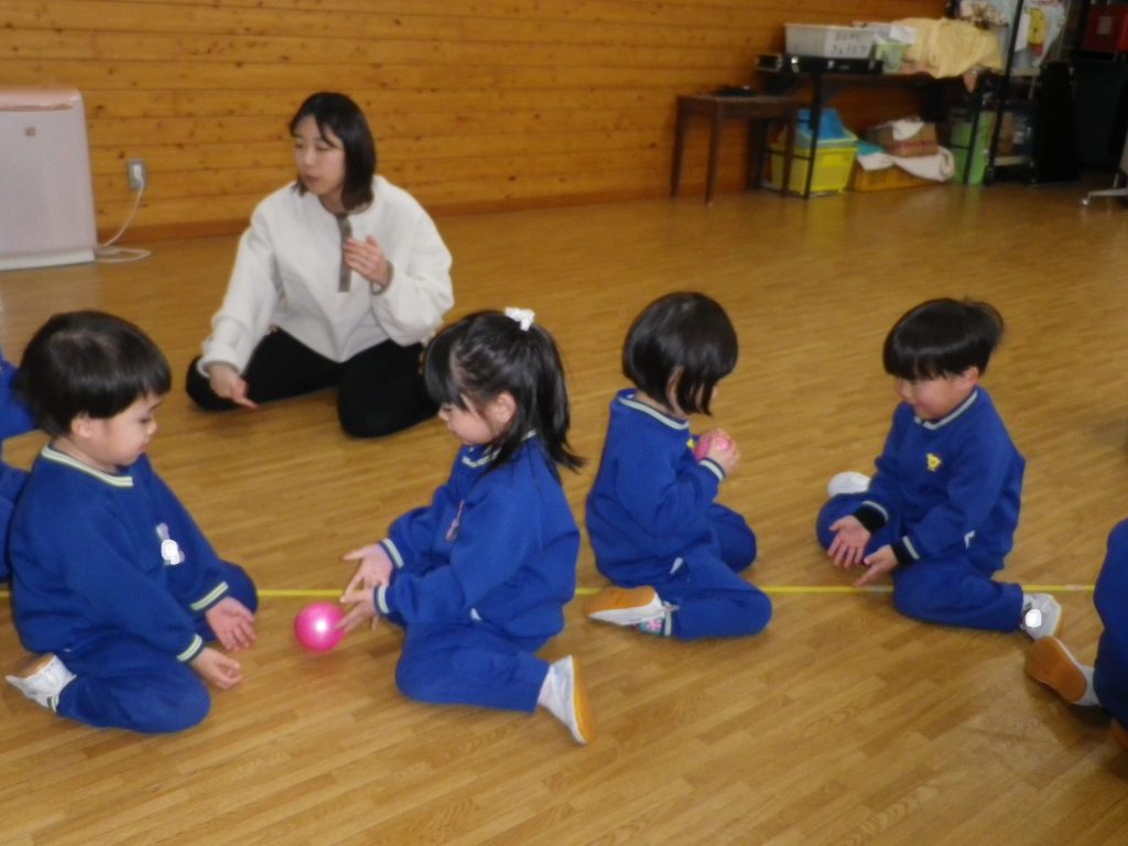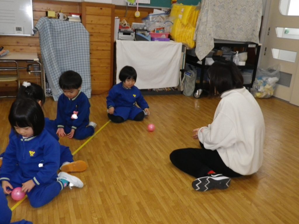 ~年少さん~ お友達にボールをころころ~