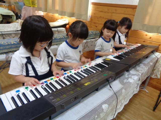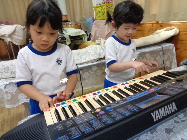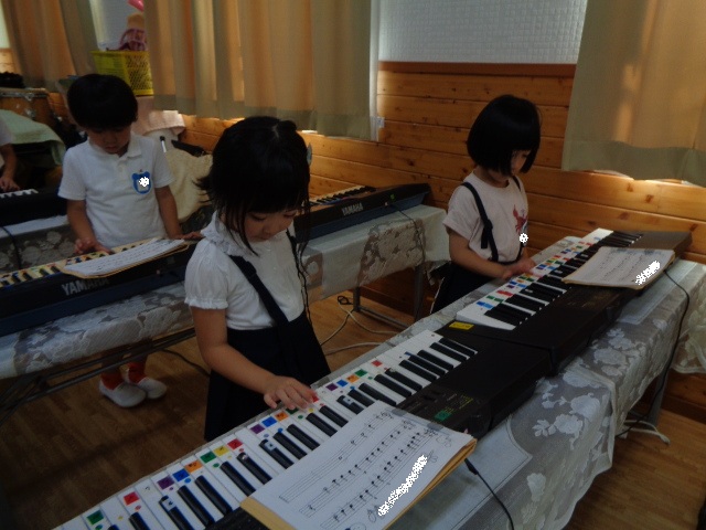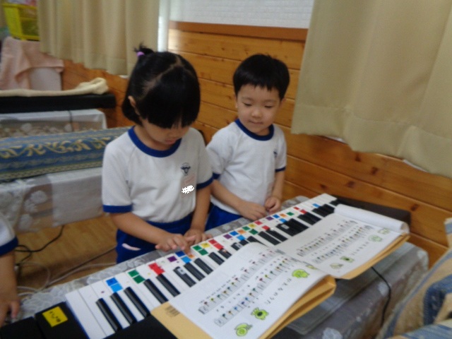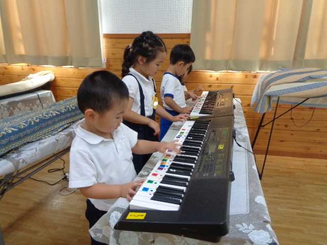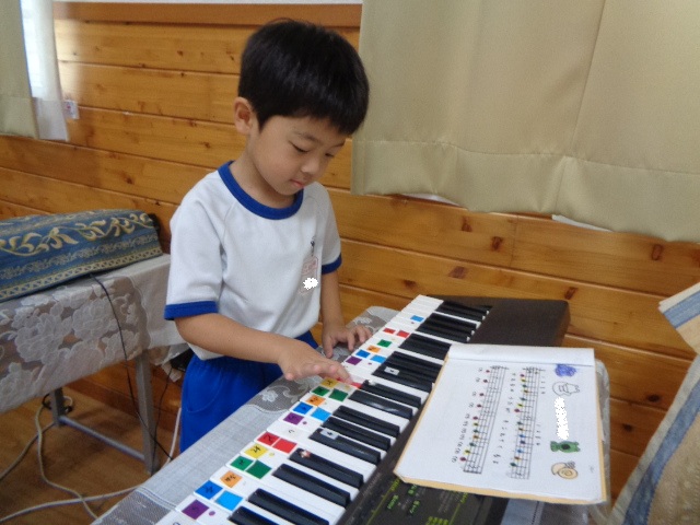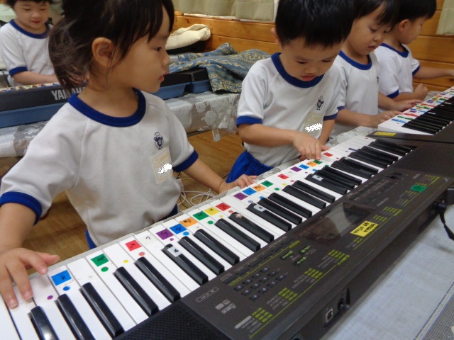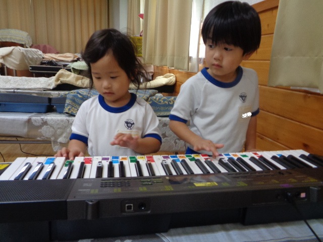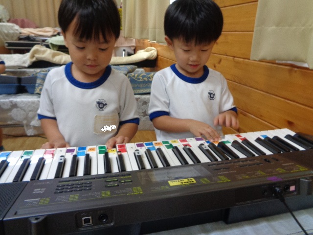 キーボードしたい!と子ども達♪音階を歌いながら弾きました。
