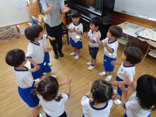 ~年少さん~ 色々な音の長さの違いを感じながら、手やステップで表現しています。