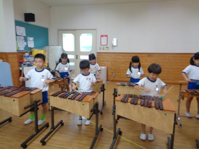木琴奏をしたり、今日は五線譜上に音符も書きました。いるかグループさんもみんなばっちり!でした。