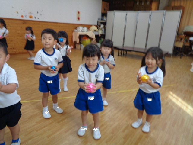 ボールをまつぼっくりに見立てて、音の長さの違いやニュアンスの違いを表現しました!