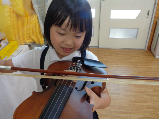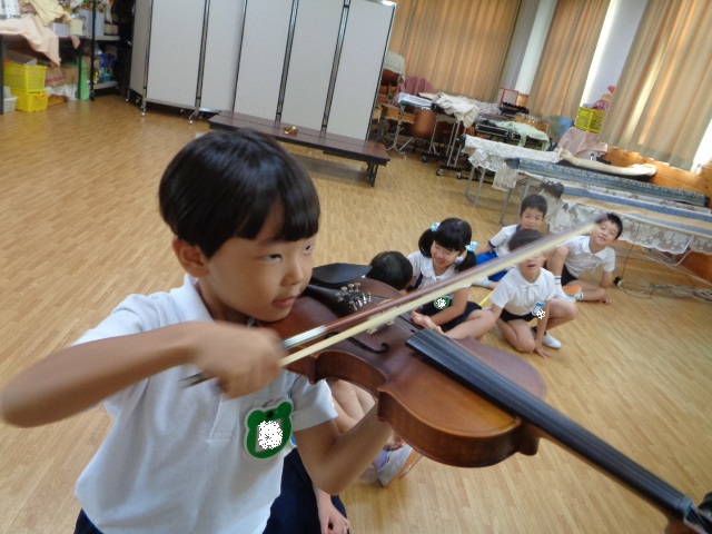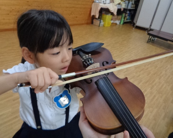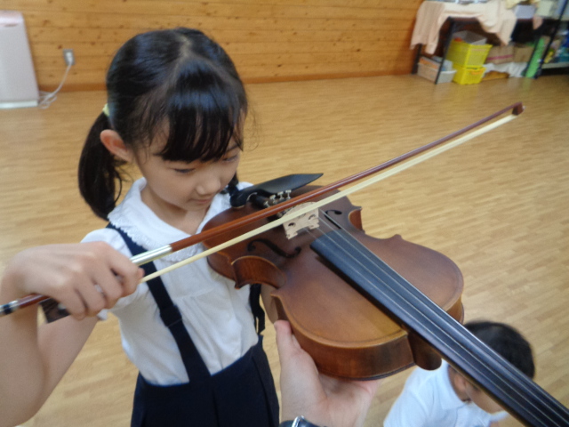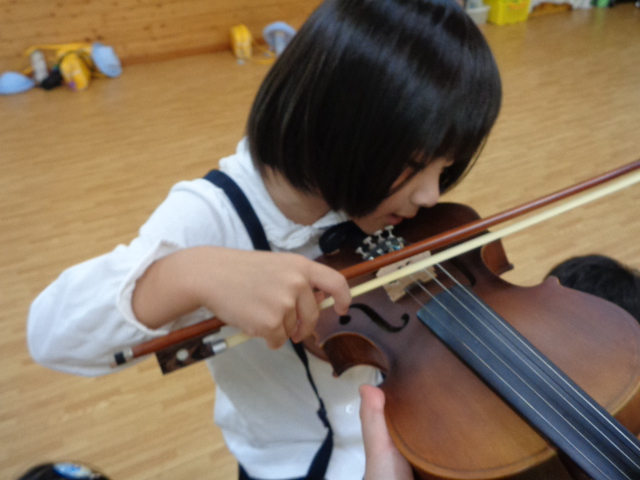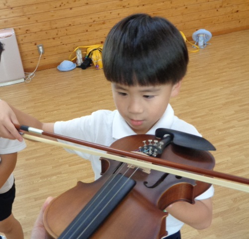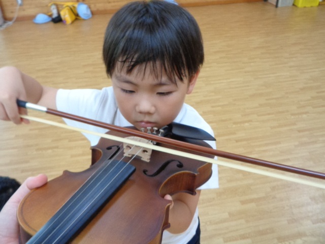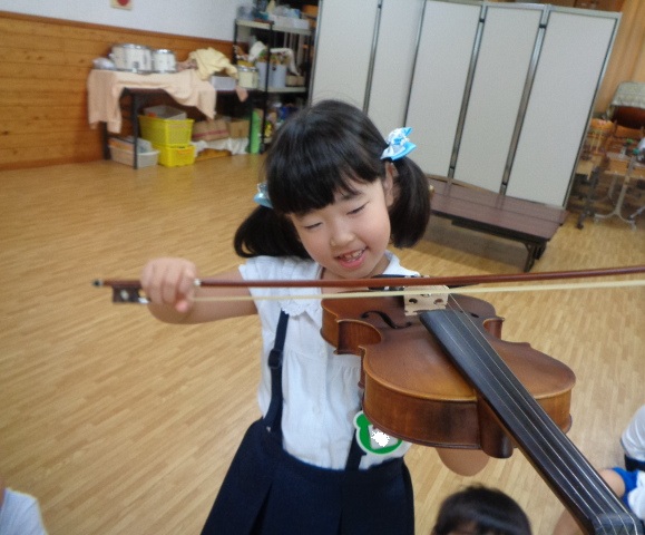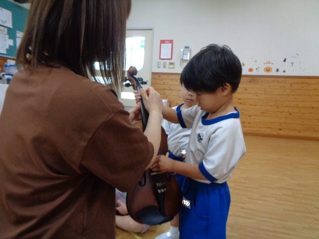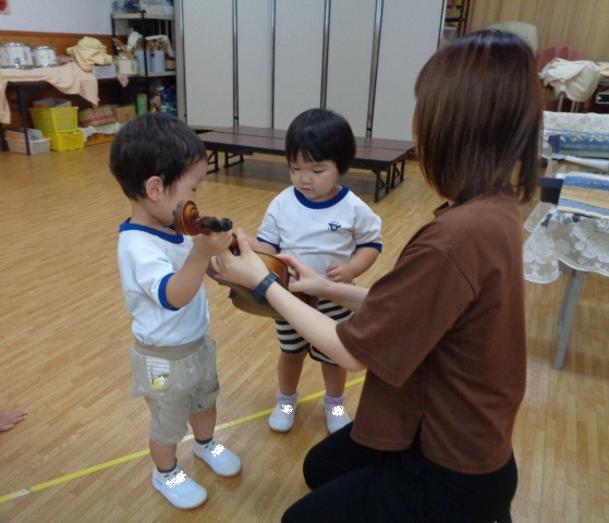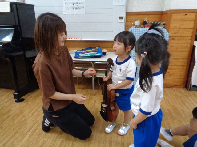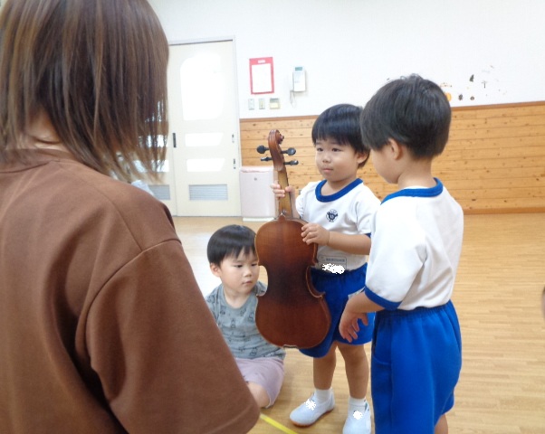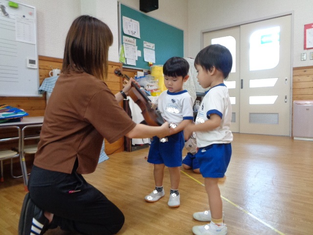 山の音楽家の歌にちなんで今日はヴァイオリンが登場!音色に驚いていた子どもたちです。