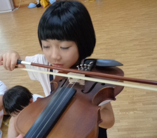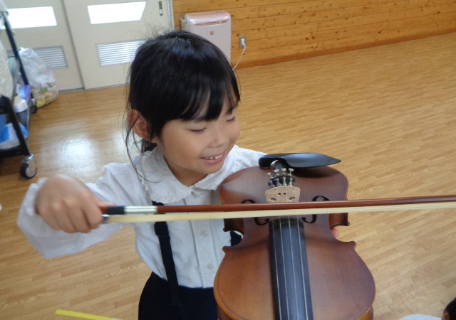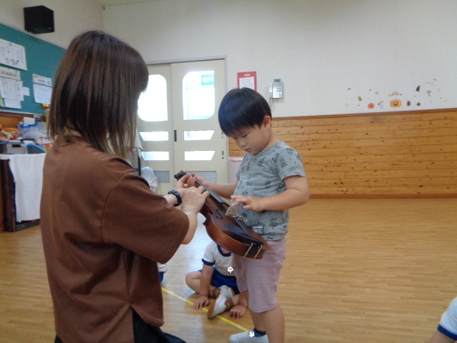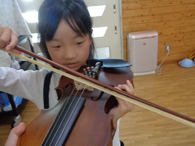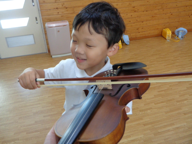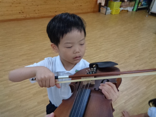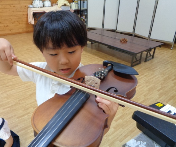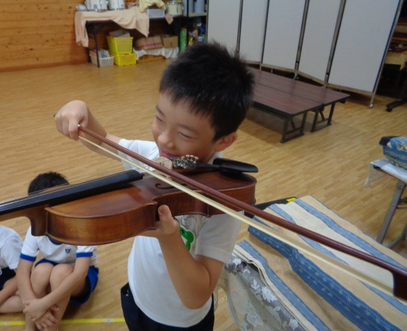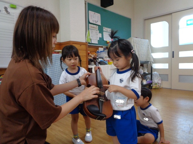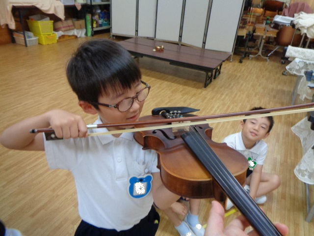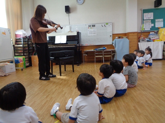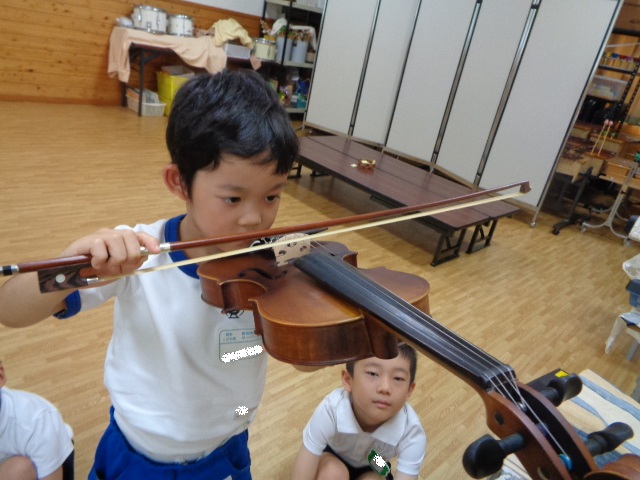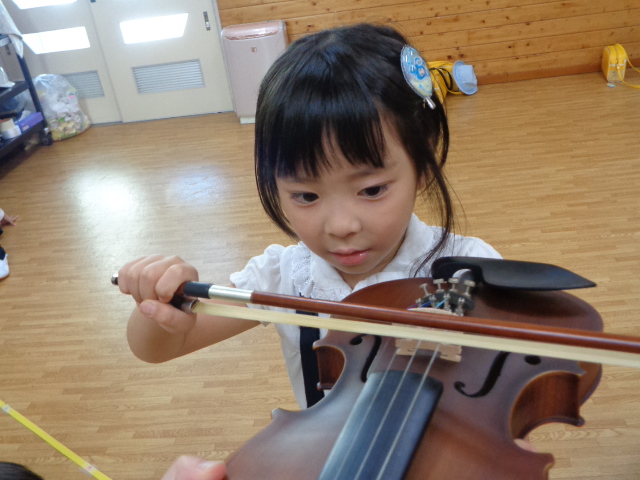 山の音楽家の歌にちなんで今日はヴァイオリンが登場!音色に驚いていた子どもたちです。