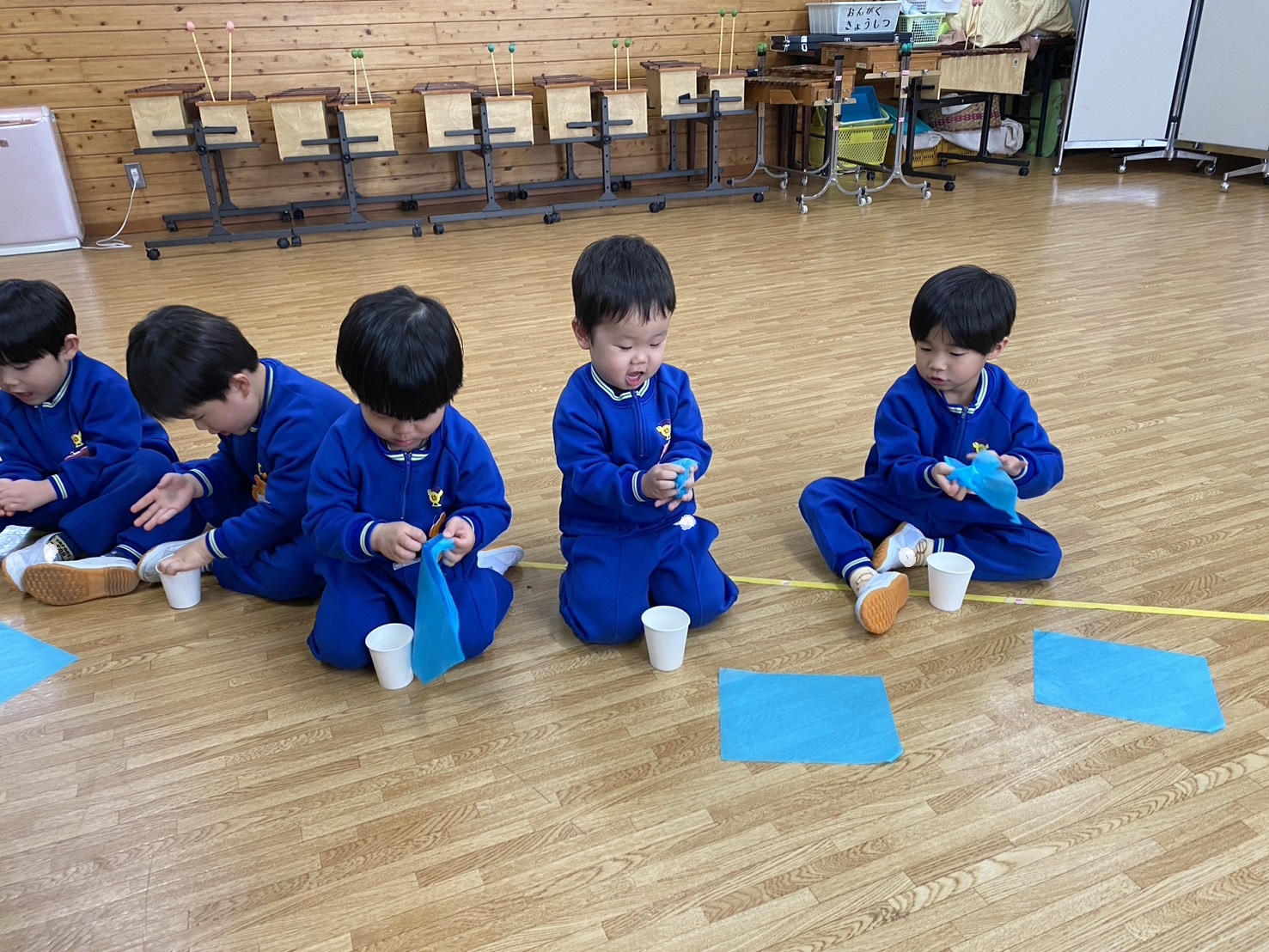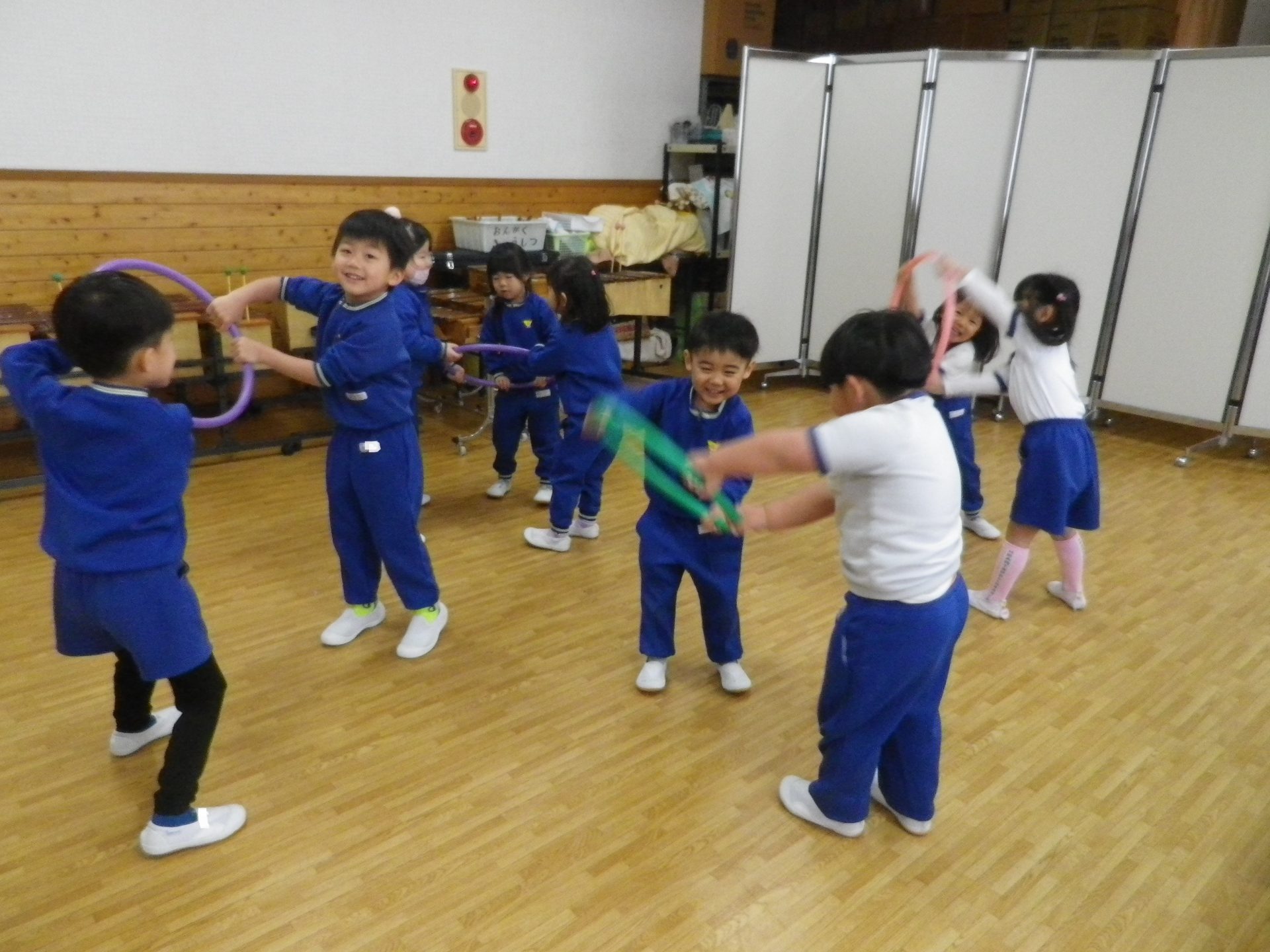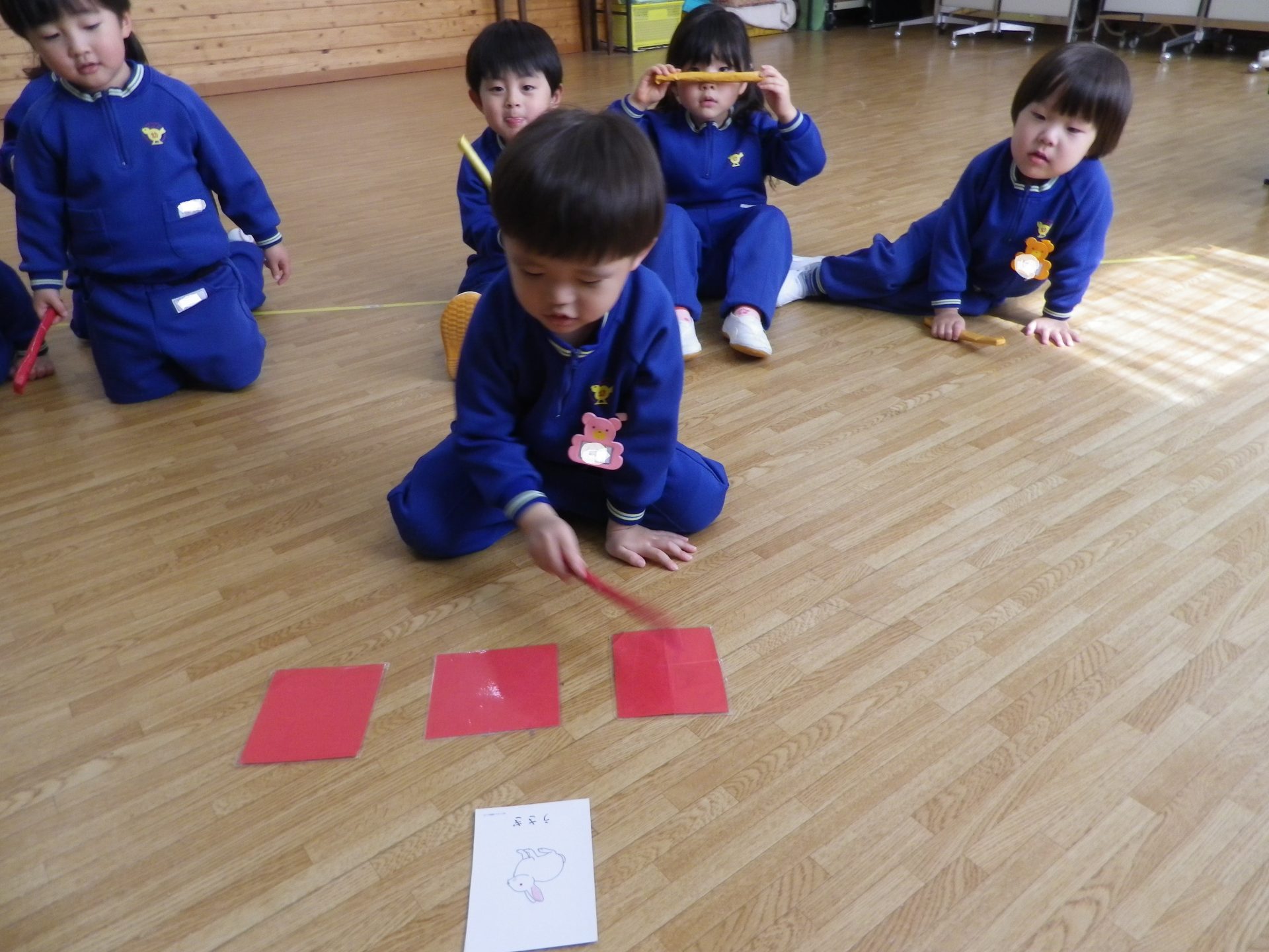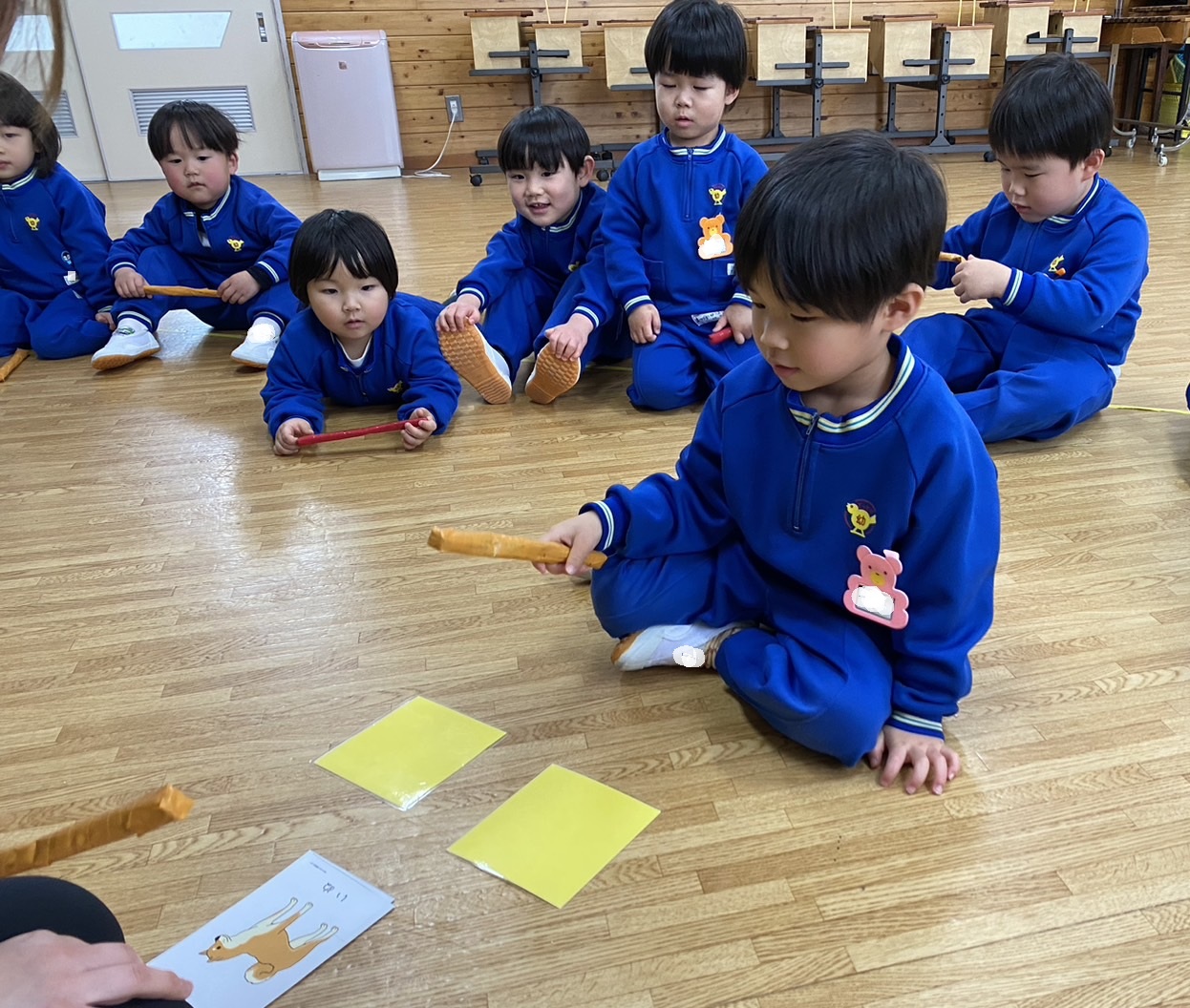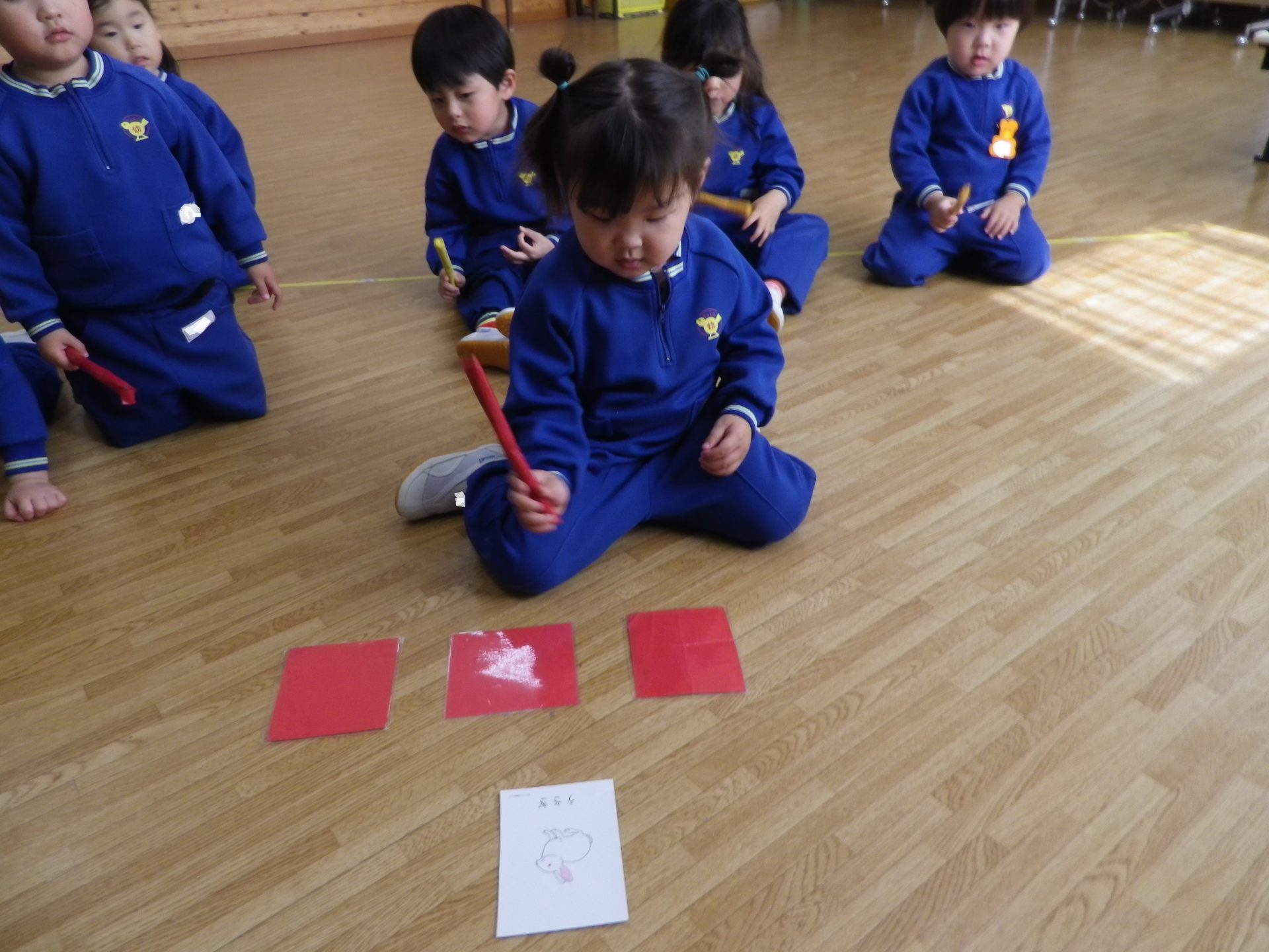 ~年中さん~ 色々なリズムをスティックとカラーボードで表現しました。
