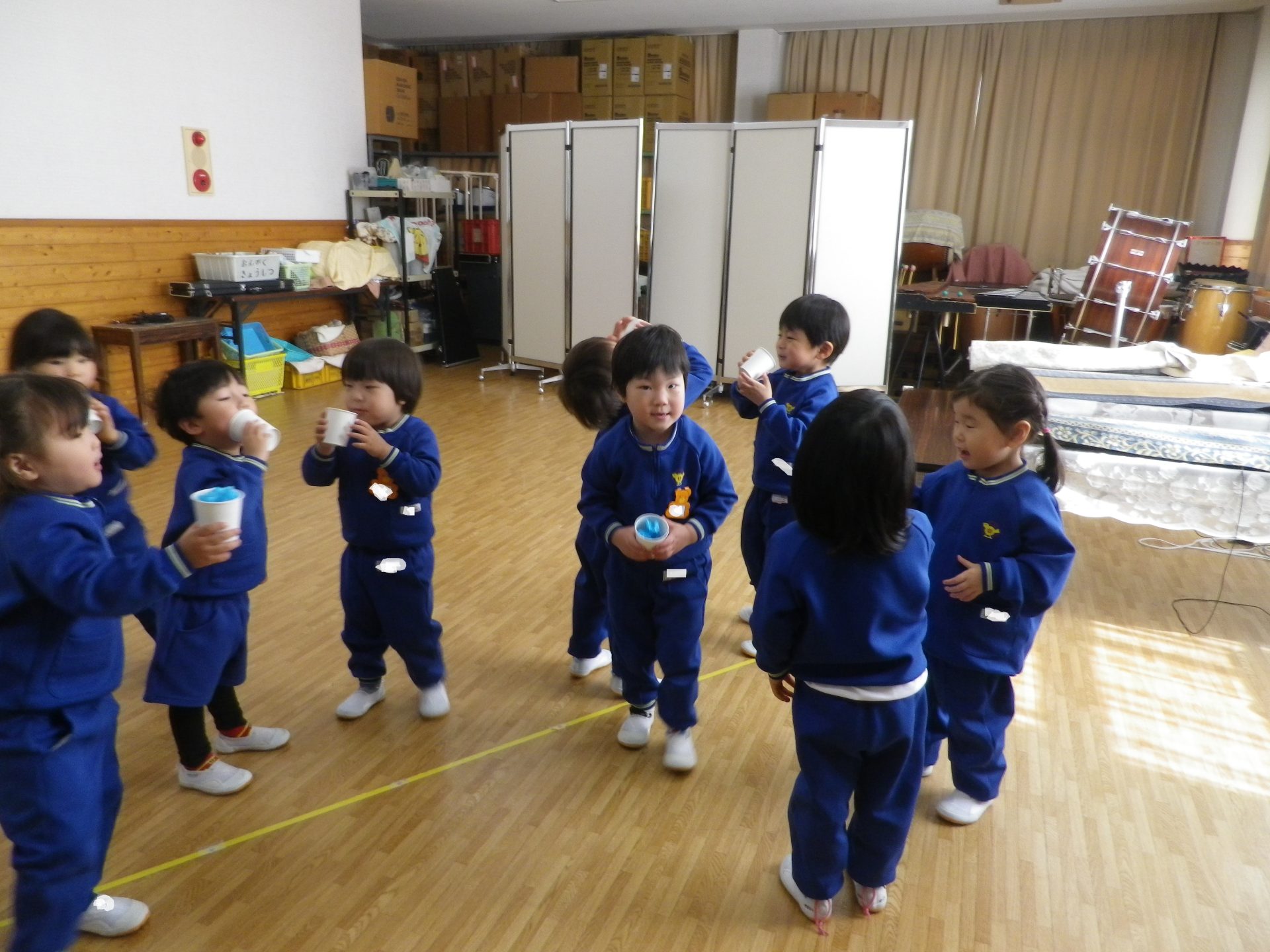 ジュースをこぼさないようにそ~っとね。お友達とかんぱ~い!!