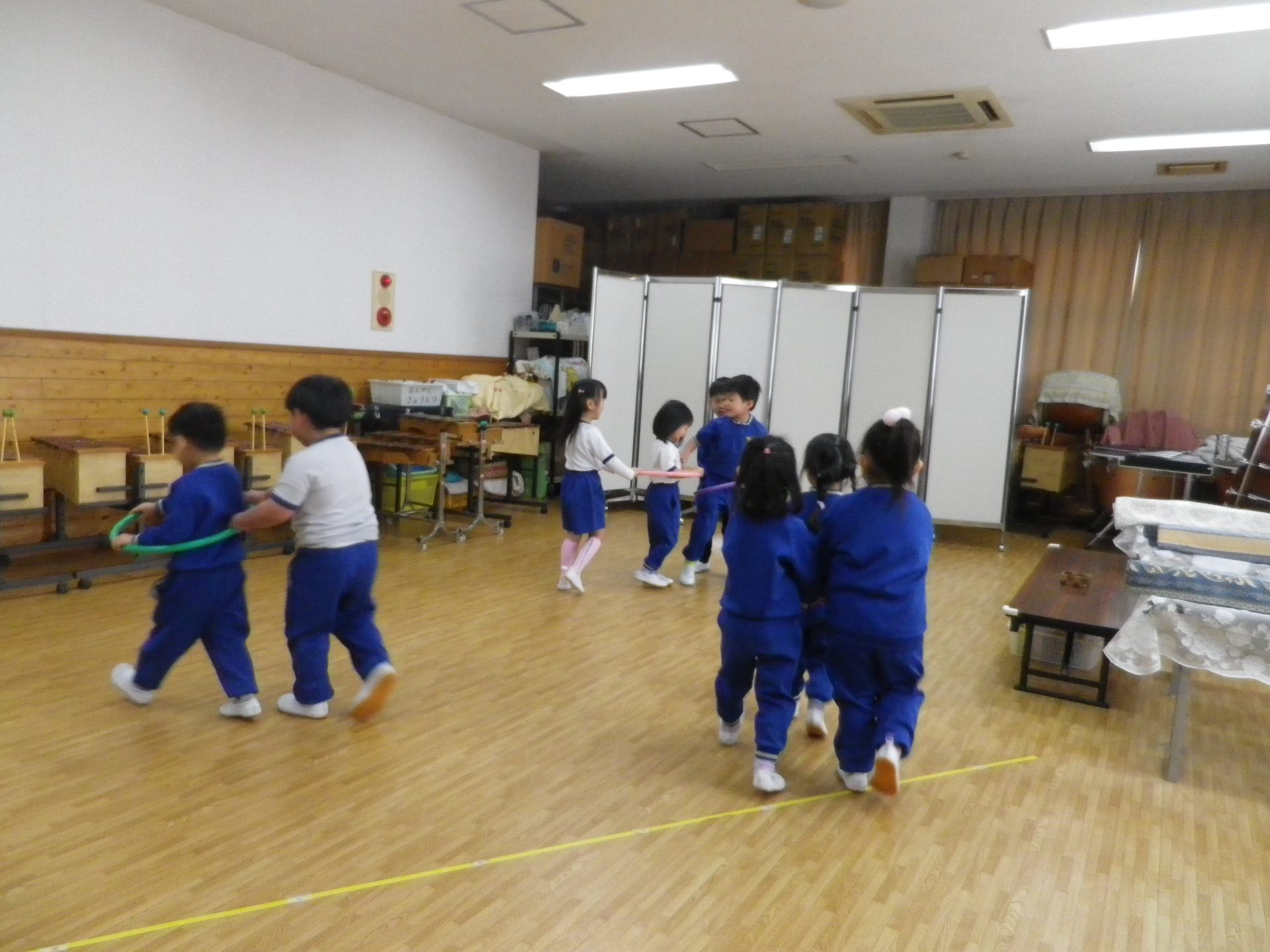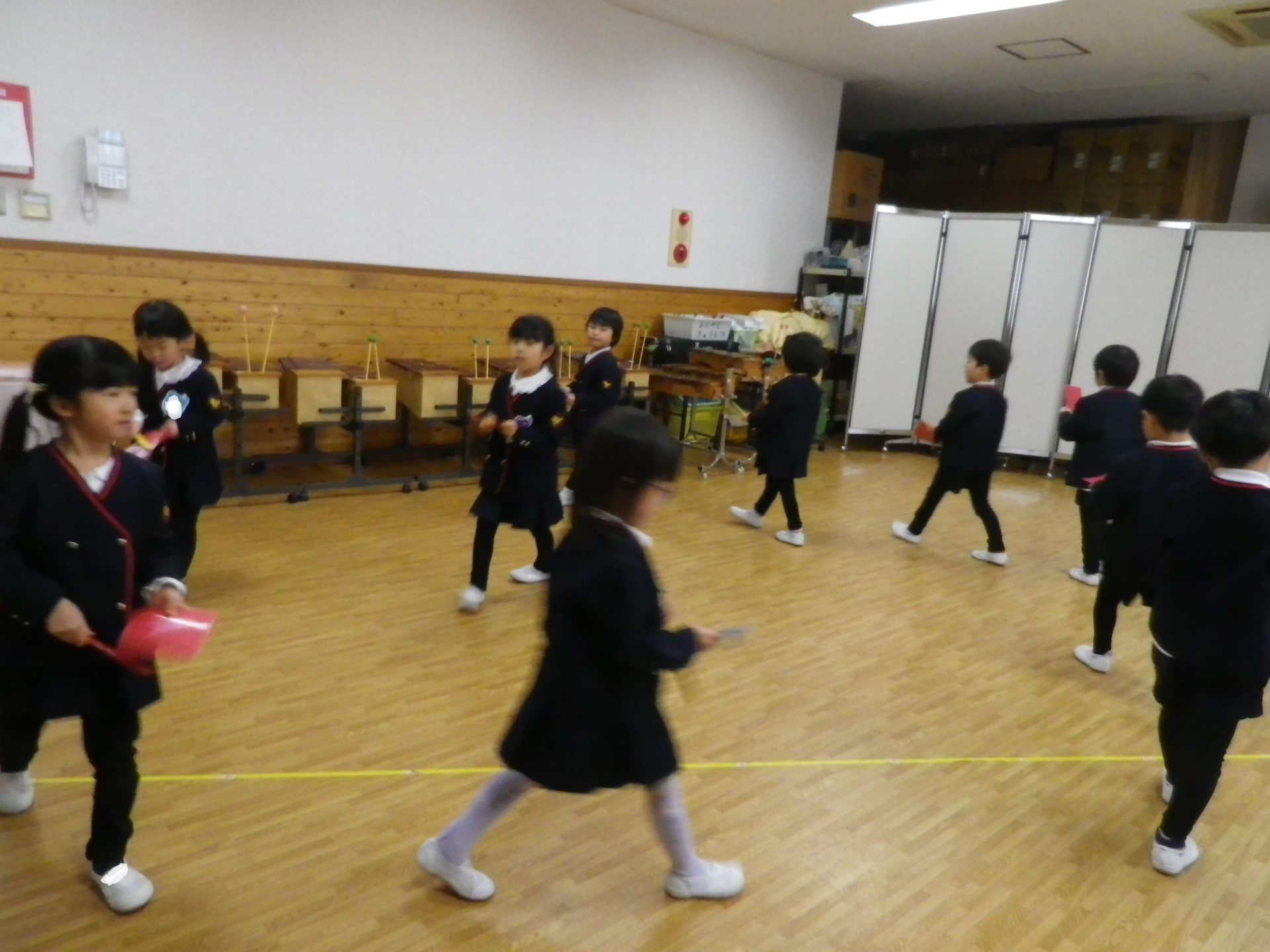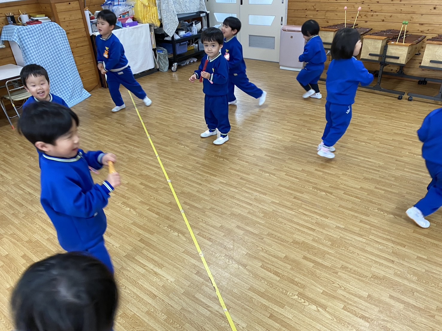 お友達と一緒におさんぽ♪合図の違いや音の高さ、低さも聴き分けながら表現できるようになりました。
