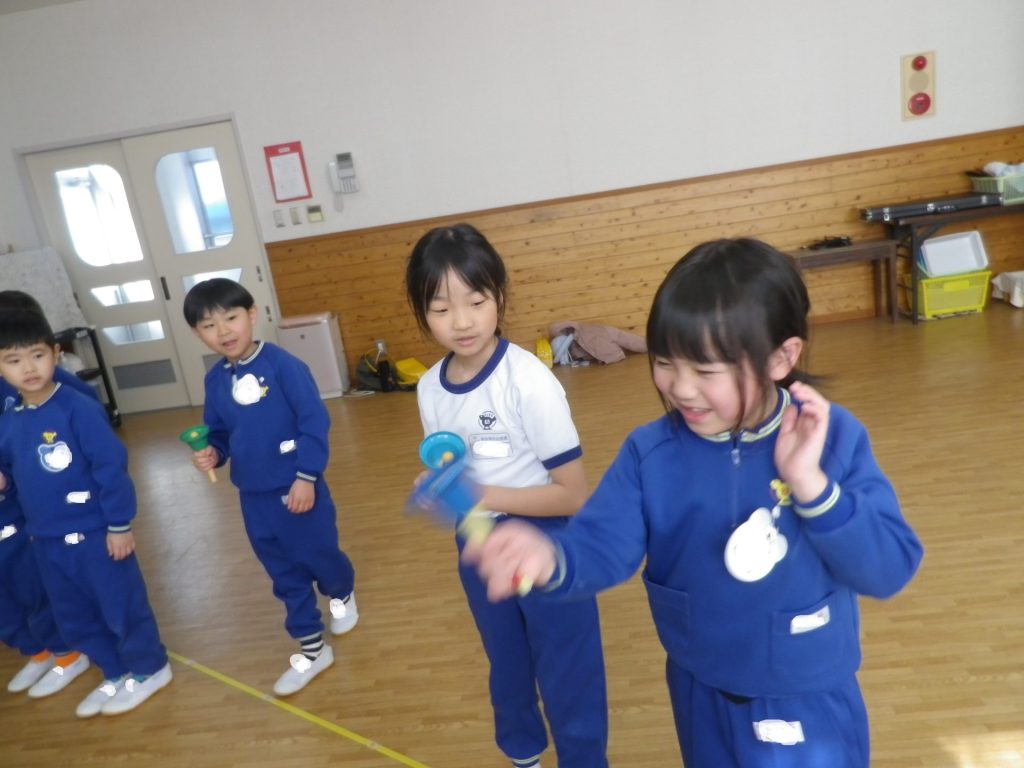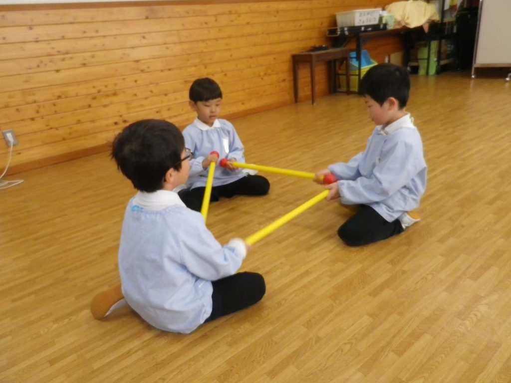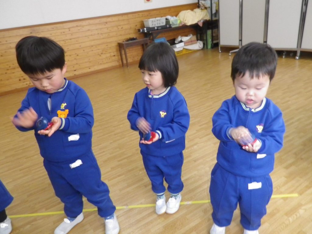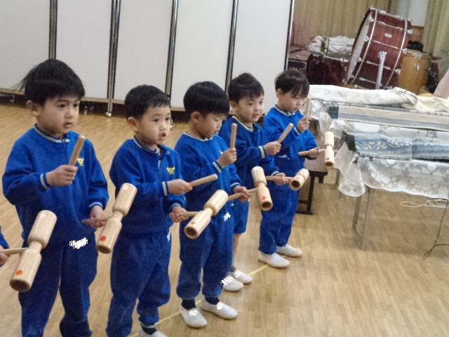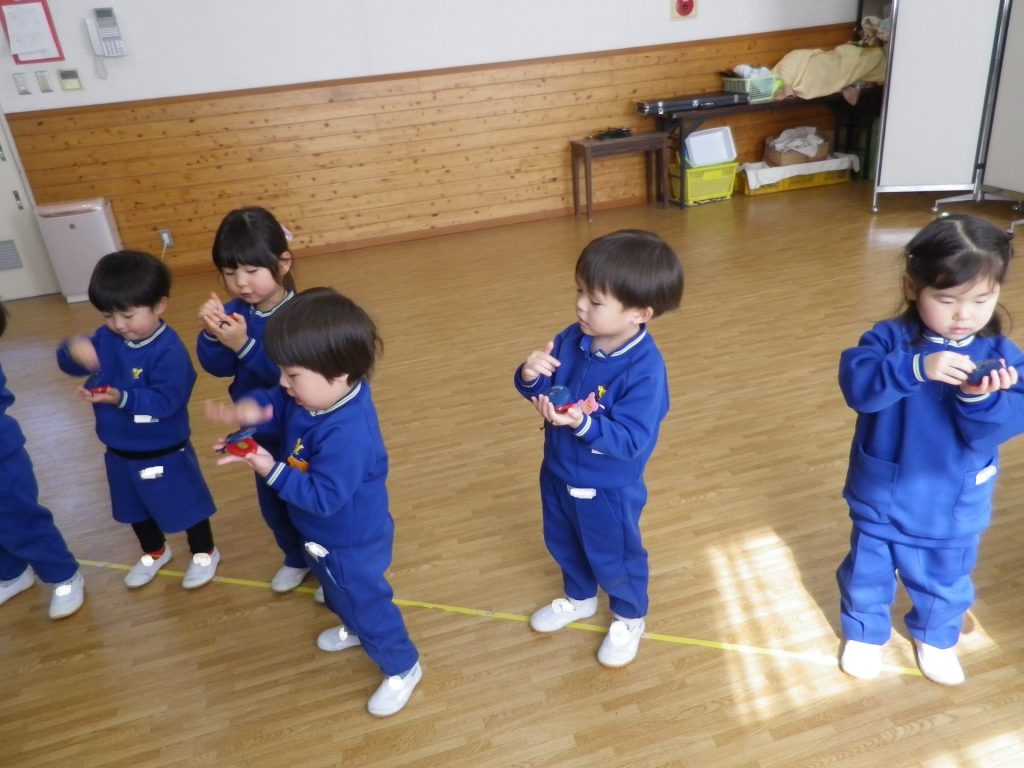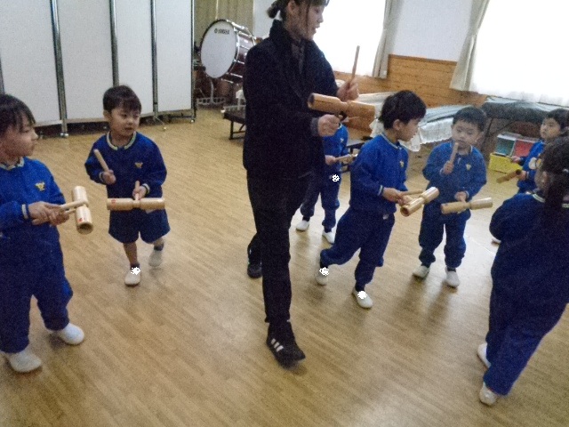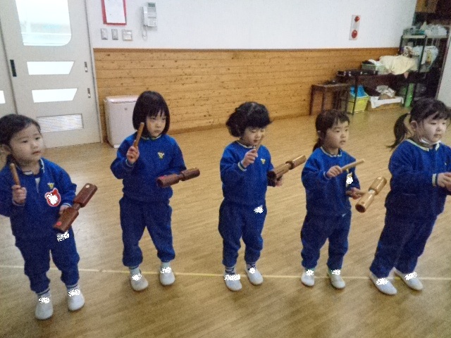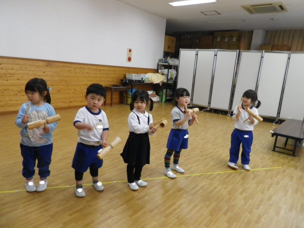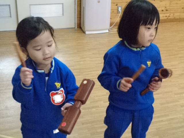 カスタネットも上手に鳴らせるようになってきました。名前もよく覚えています。