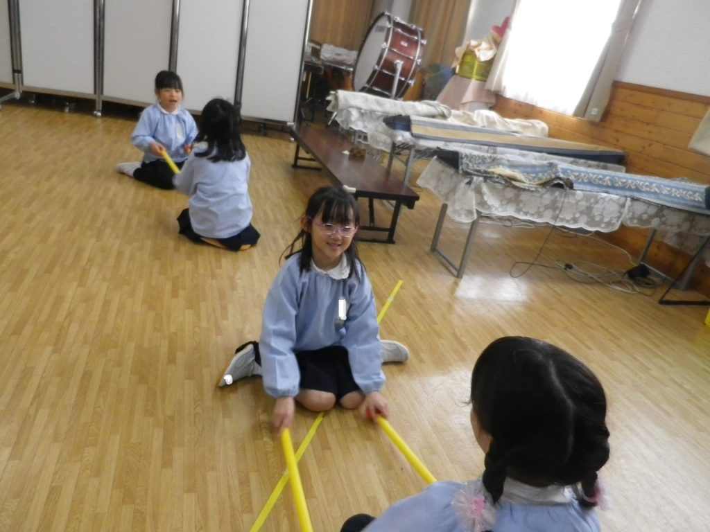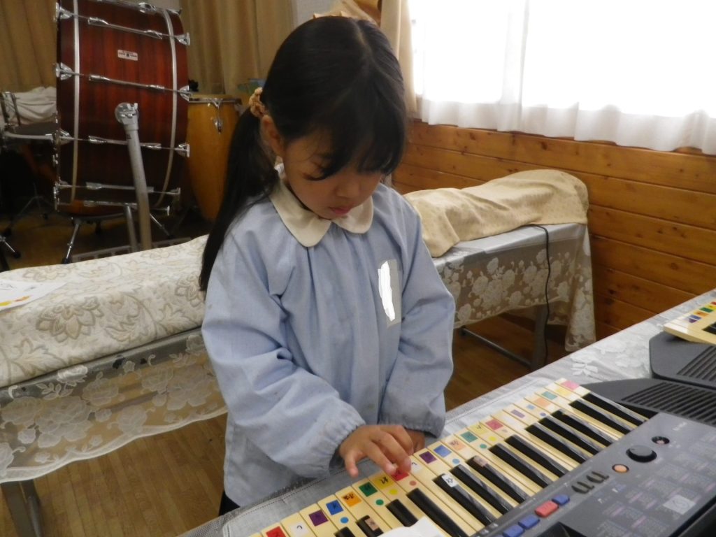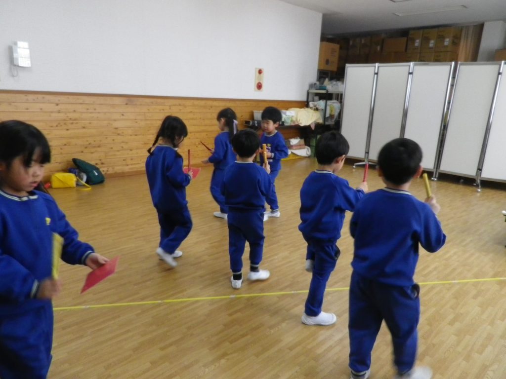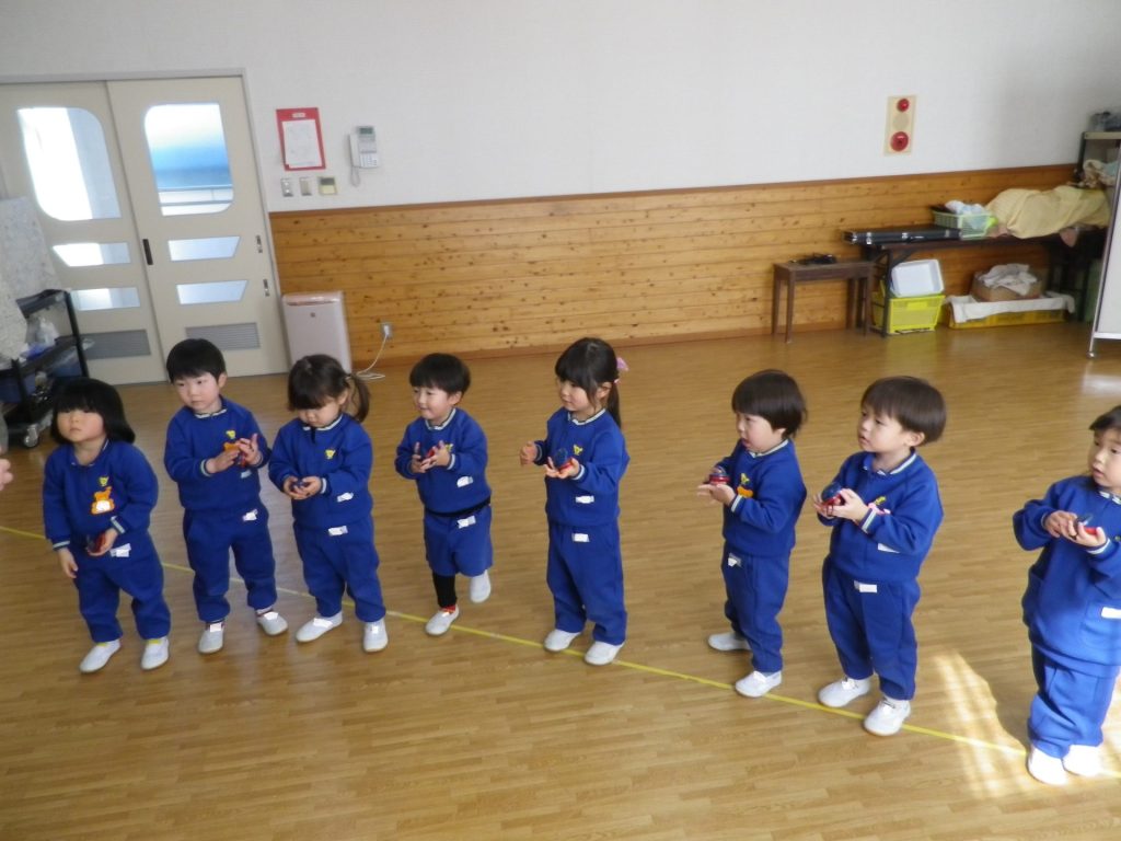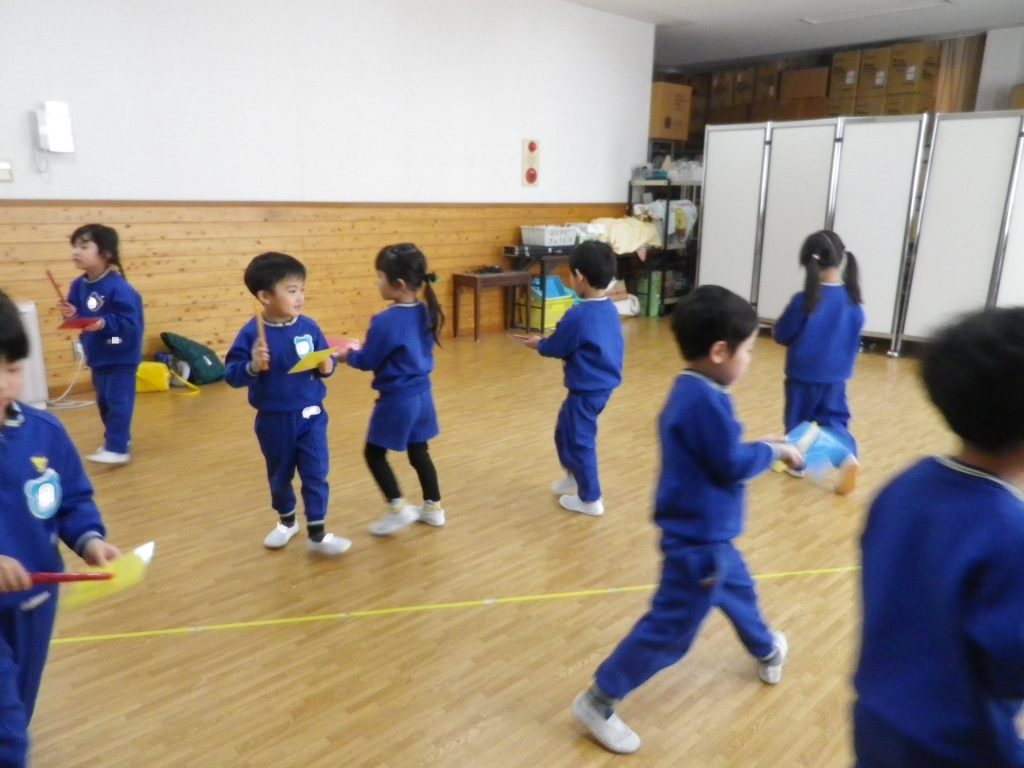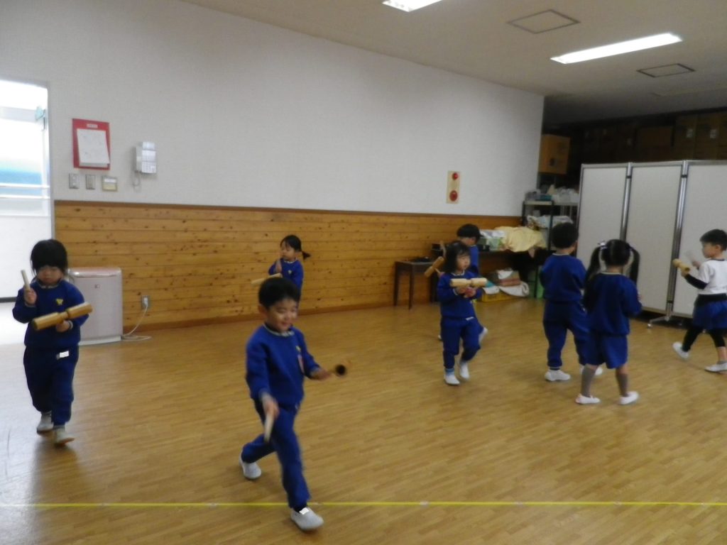 カスタネットも上手に鳴らせるようになってきました。名前もよく覚えています。