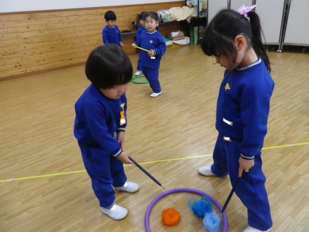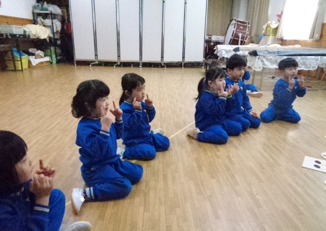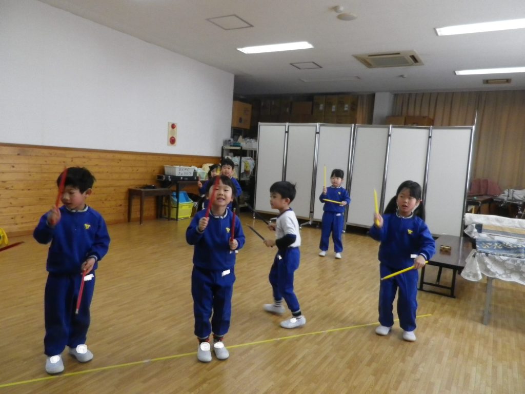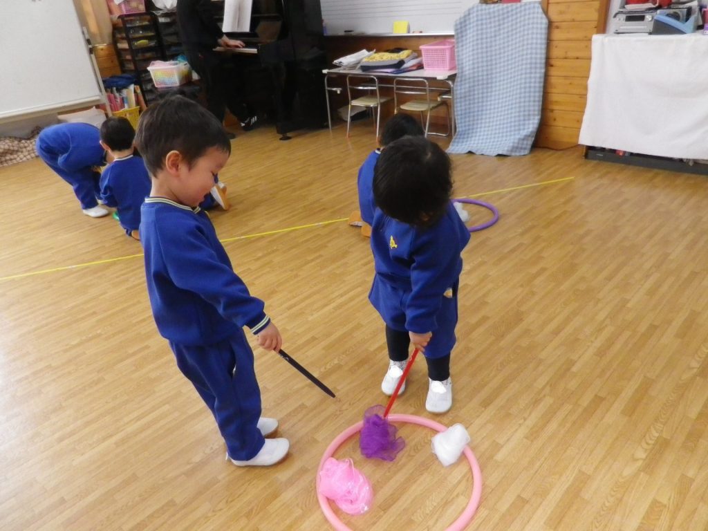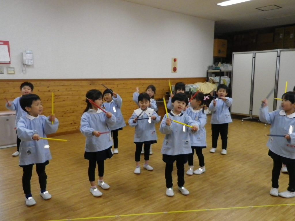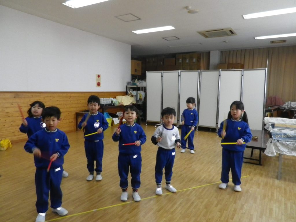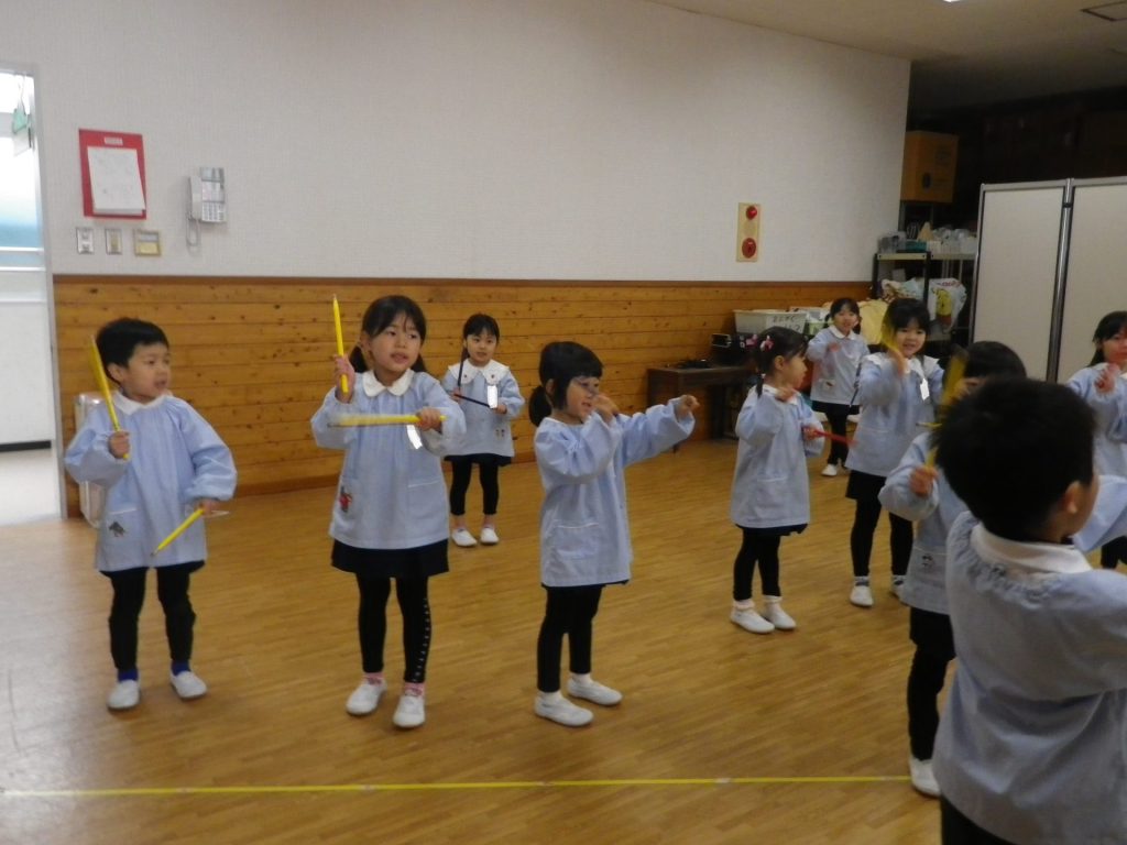 カスタネットも上手に鳴らせるようになってきました。名前もよく覚えています。